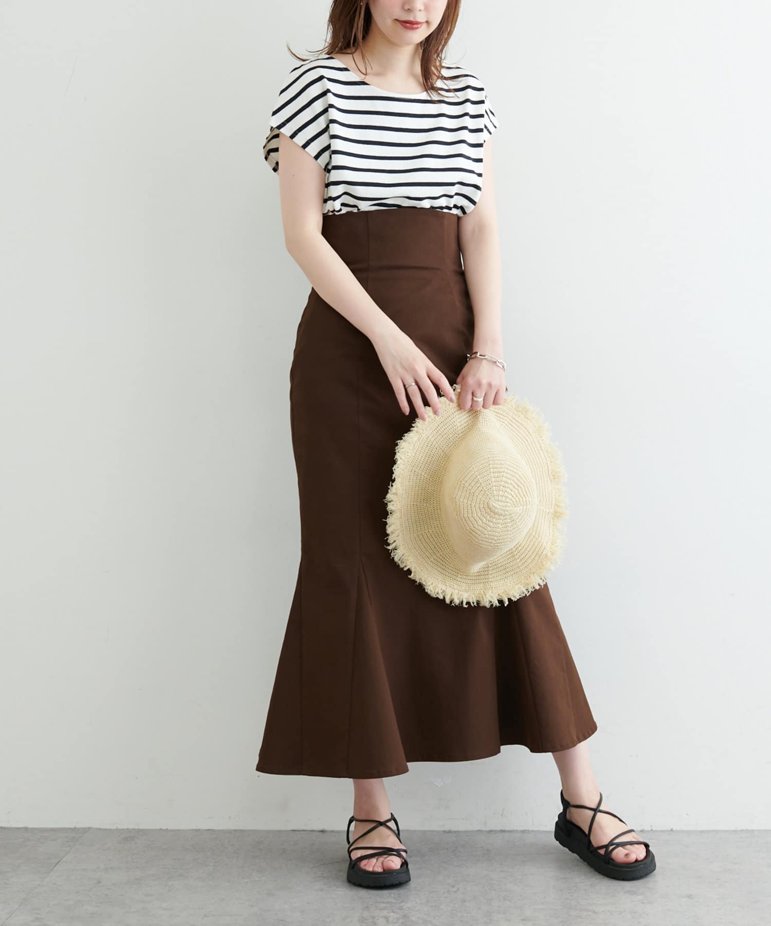 合わせた大人っぽい着こなしもおすすめです。