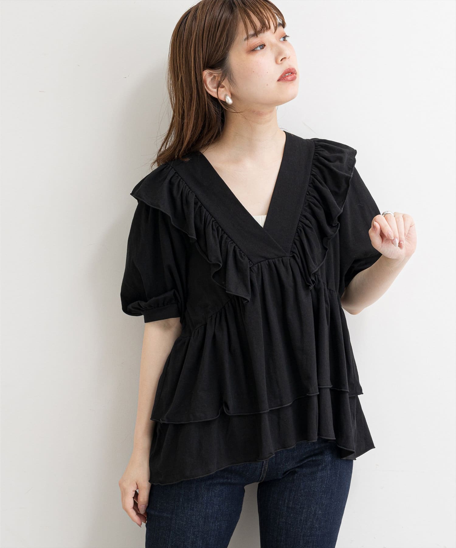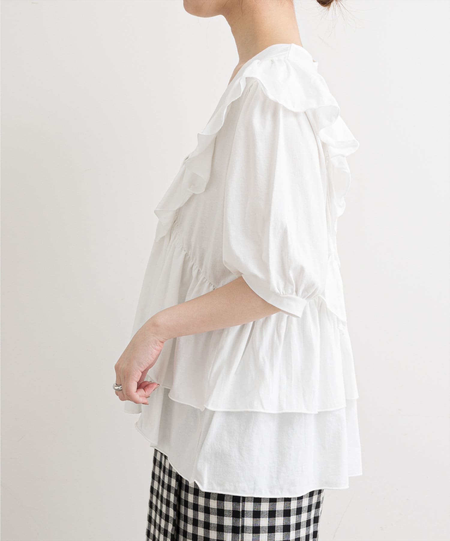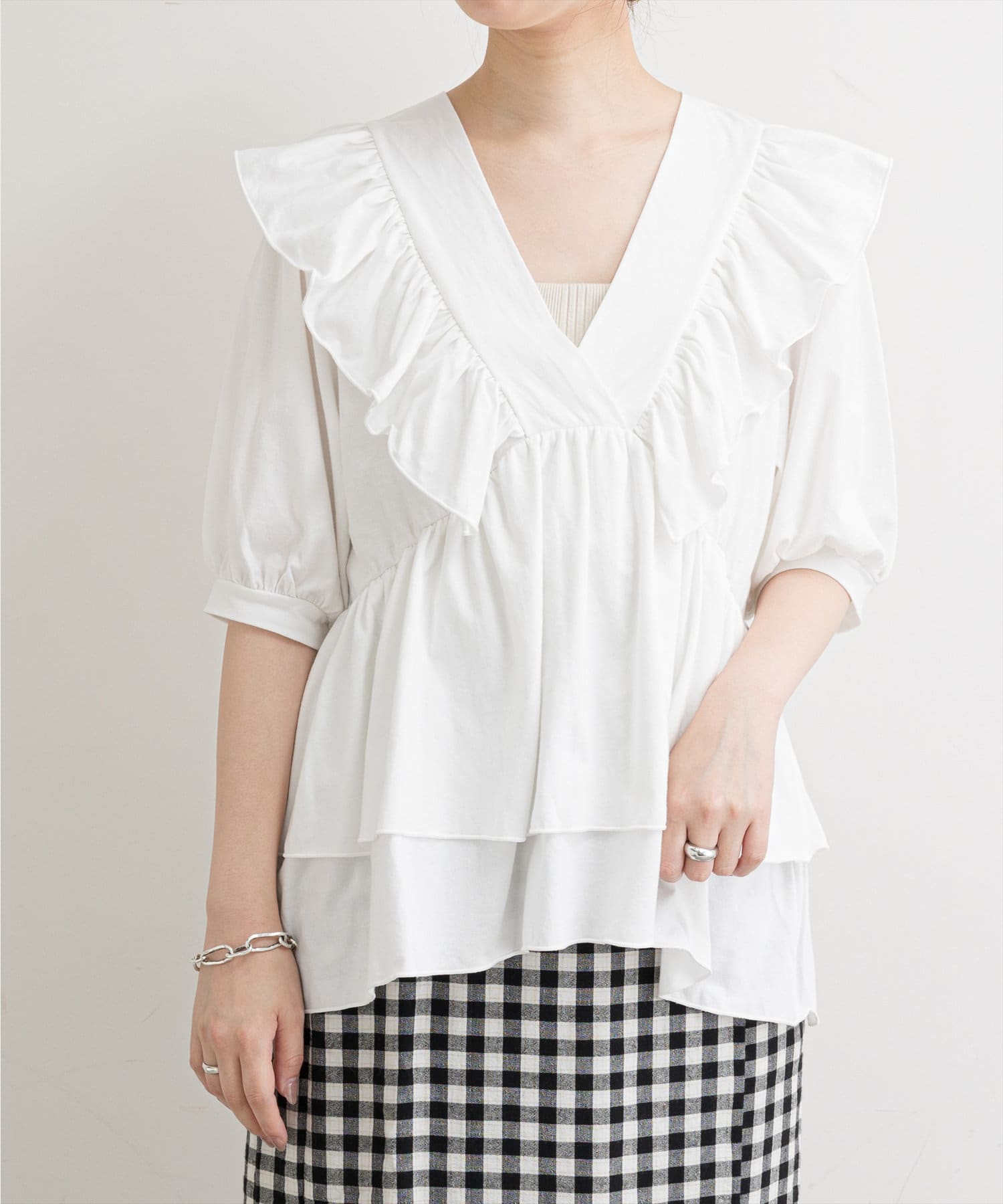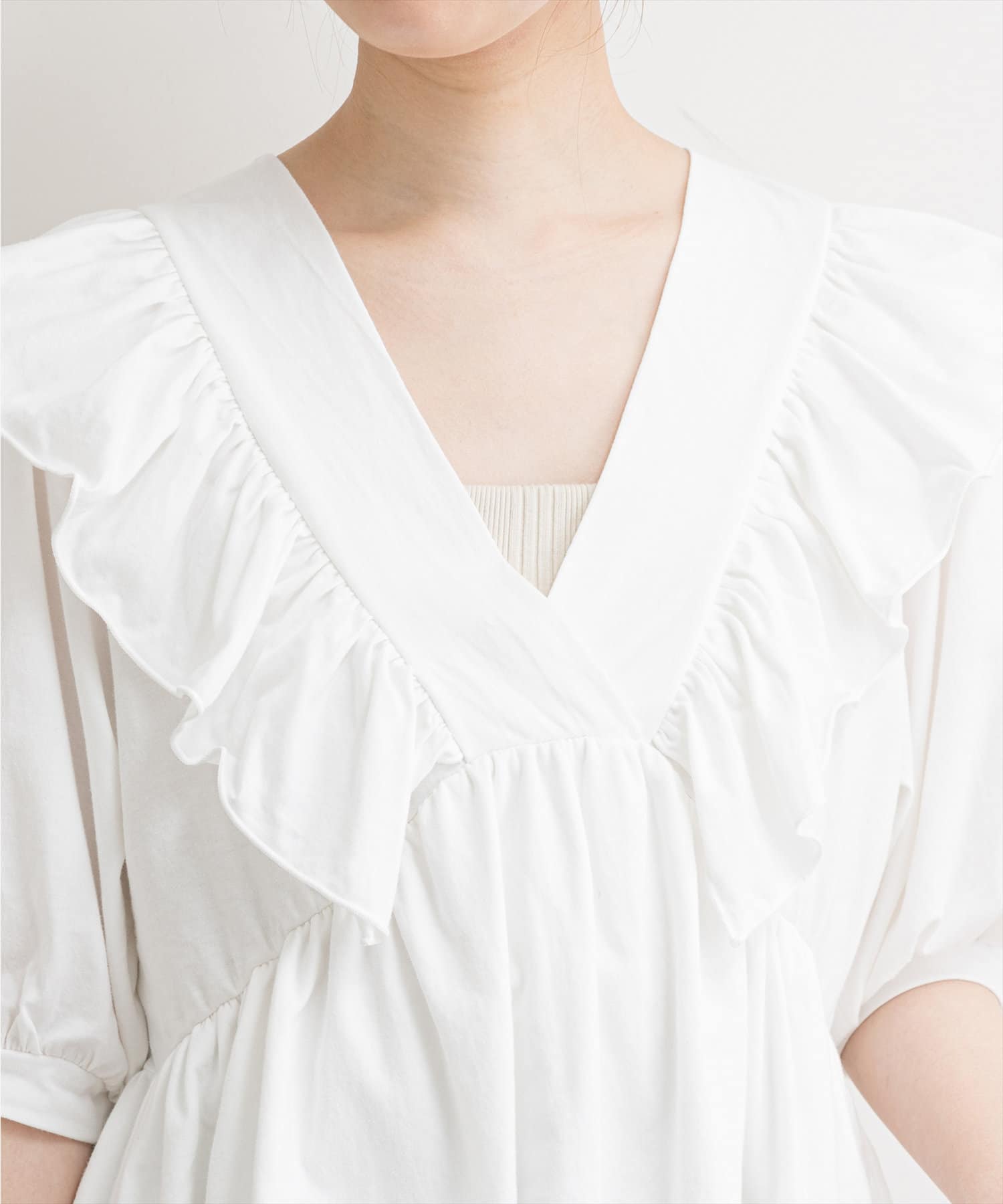 【WEB限定】まるでブラウス見えギャザーフリルカットソー
