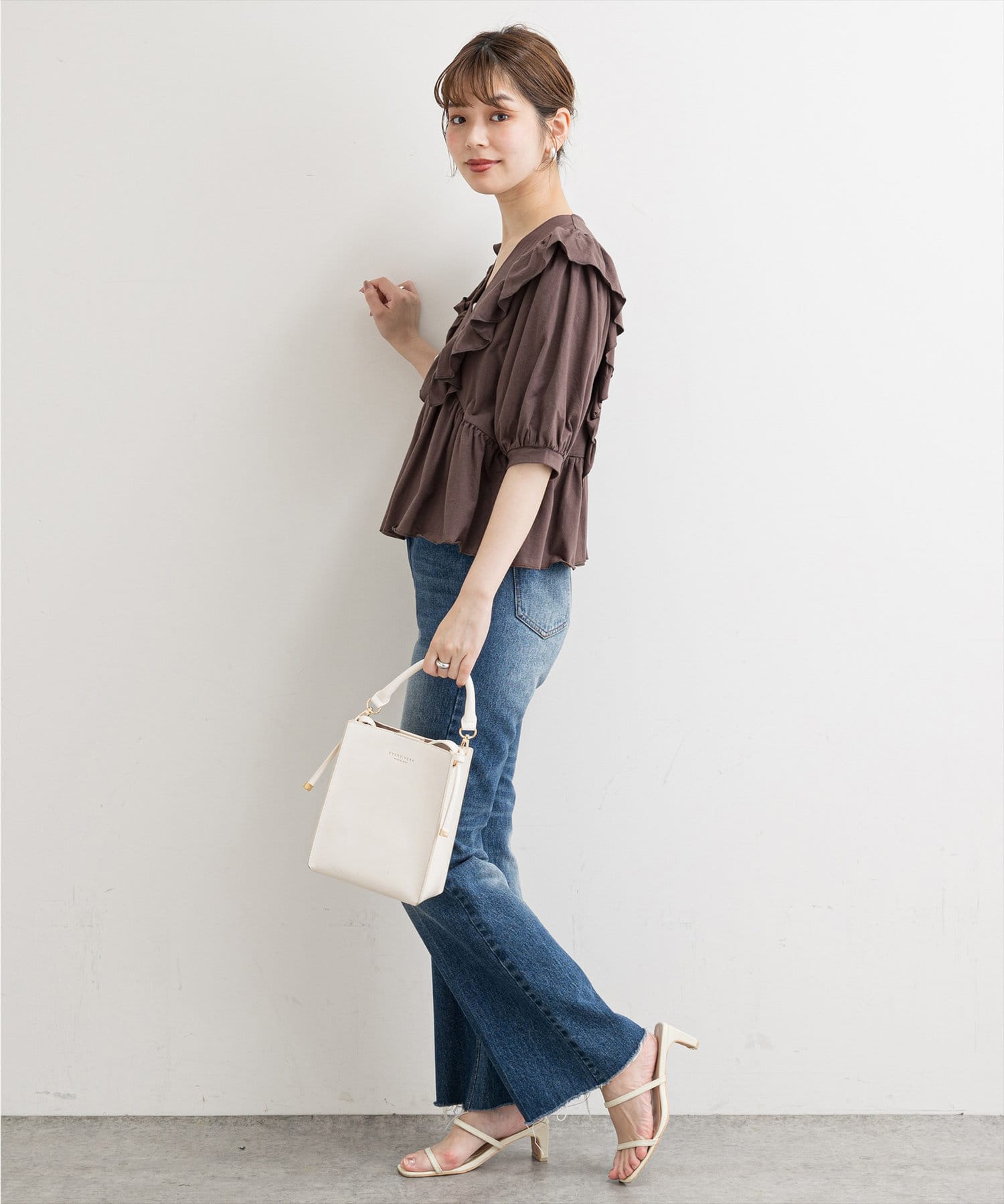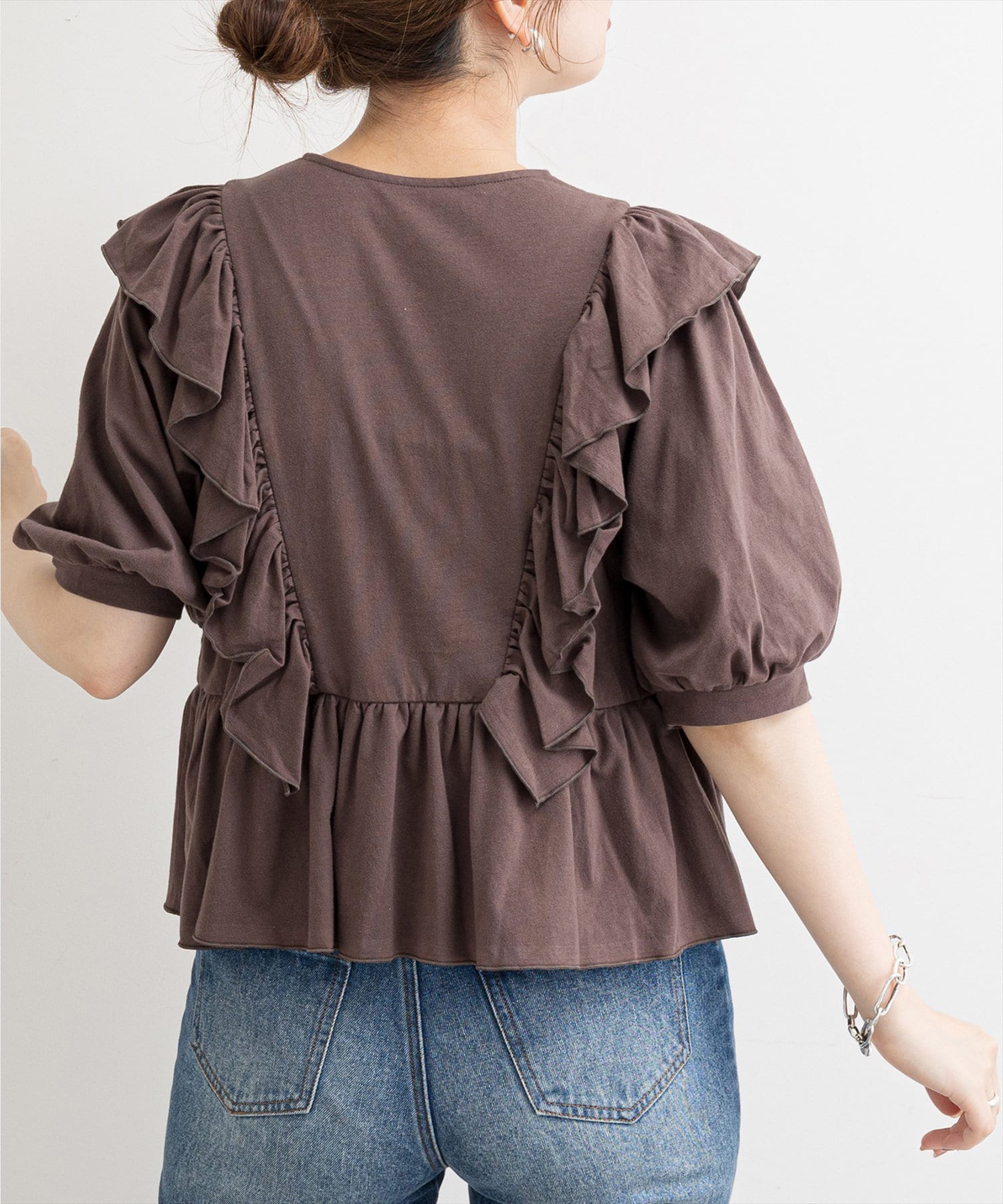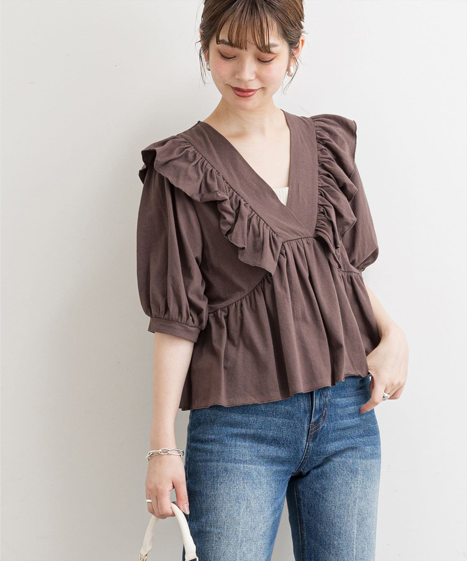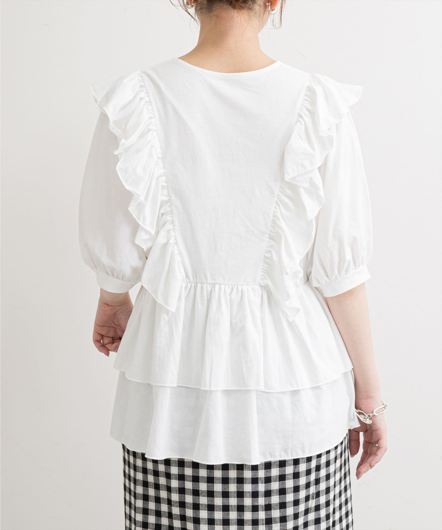 【WEB限定】まるでブラウス見えギャザーフリルカットソー