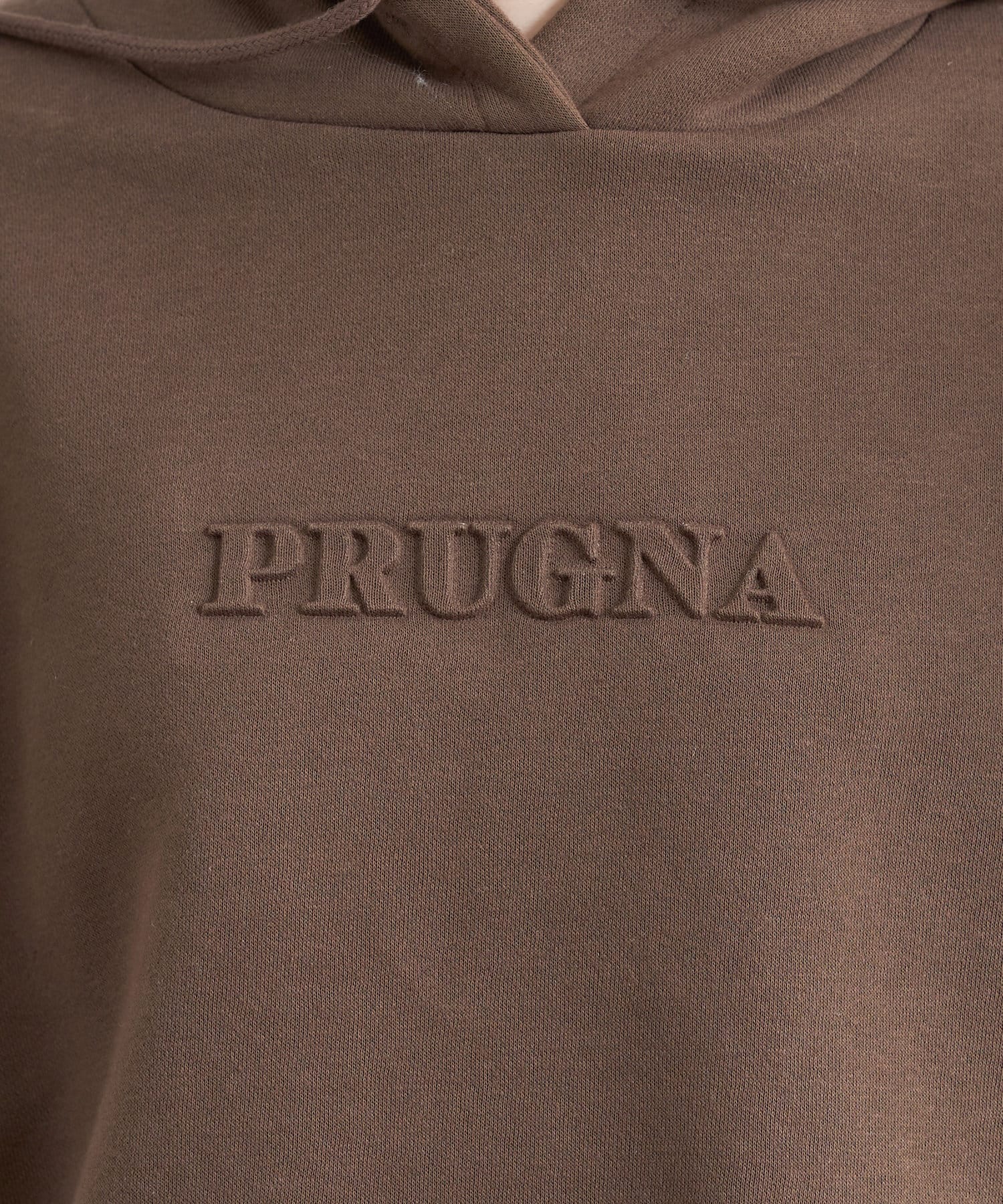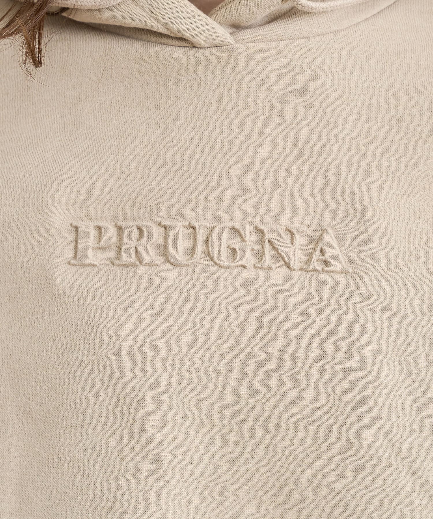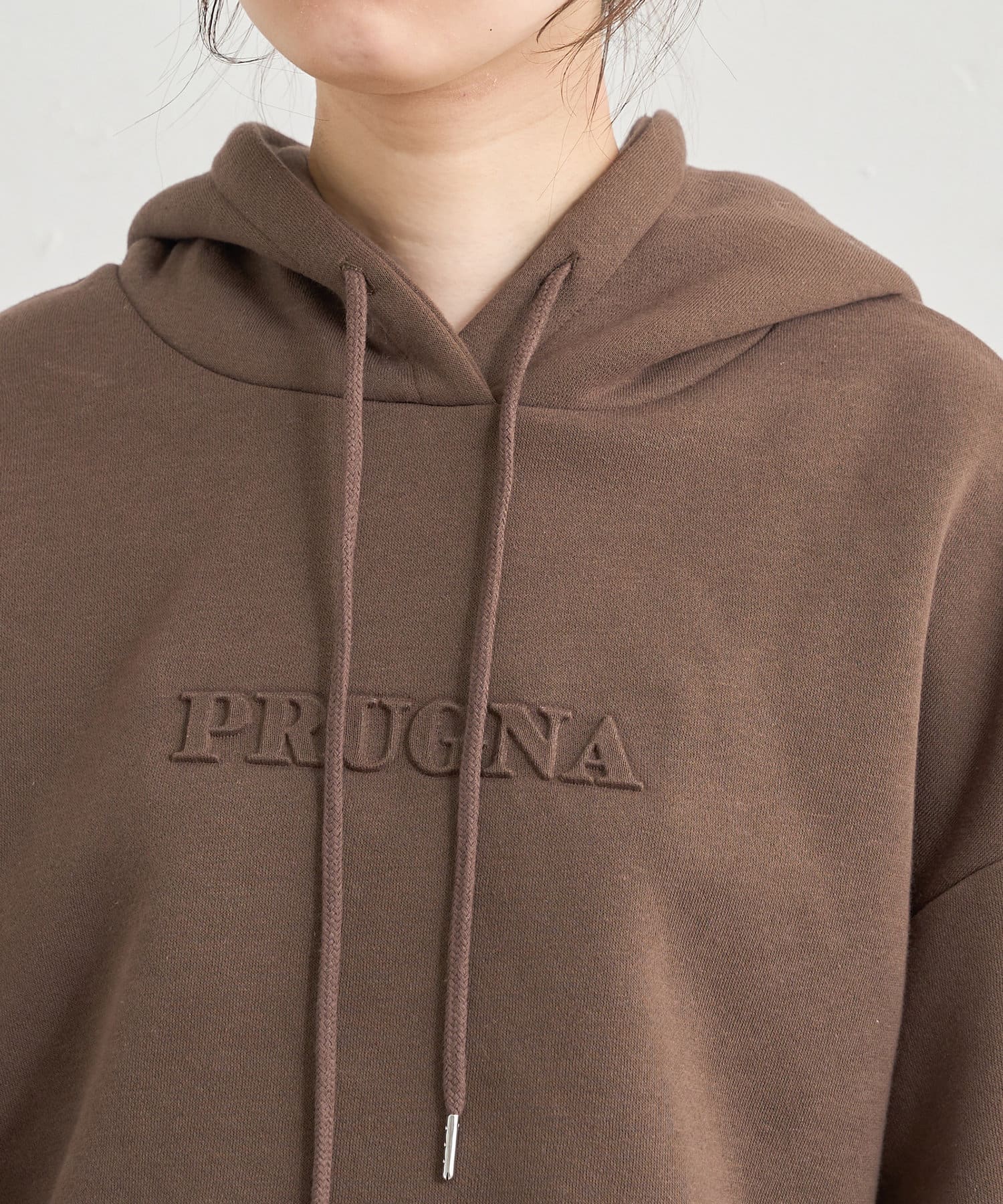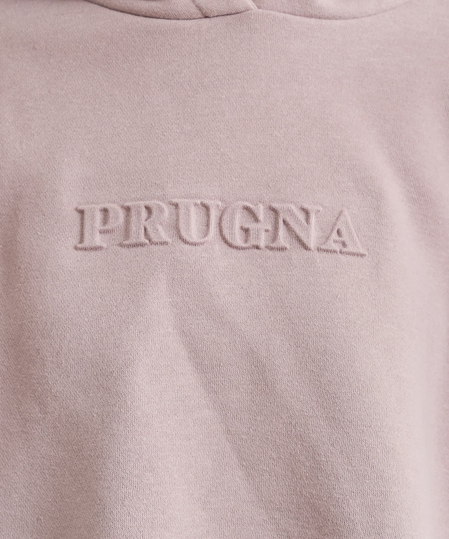 「PURUGNA」”すもも”の意味を持つ胸元のロゴは、エンボス加工のデザインに仕上げた
