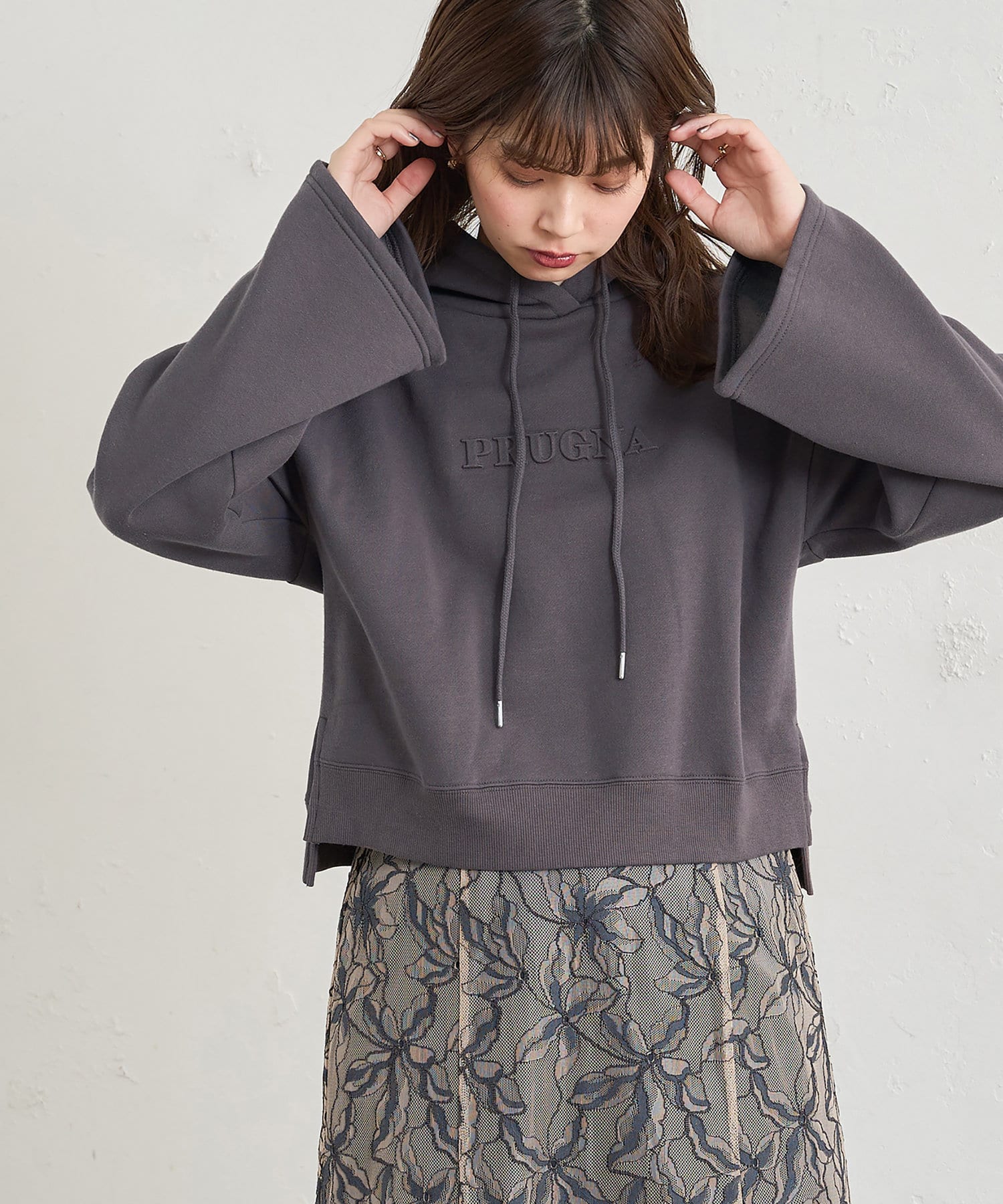 あおいさんコラボエンボスロゴフレア袖パーカー