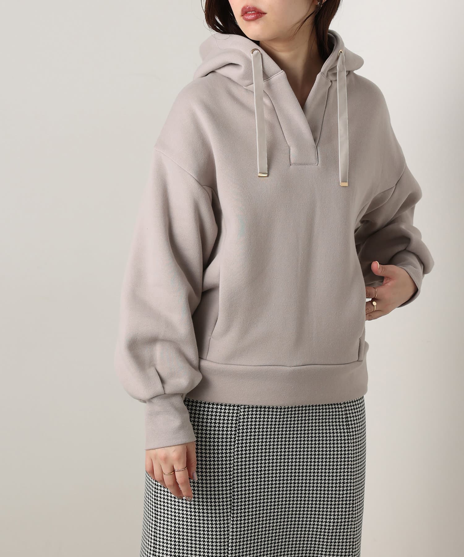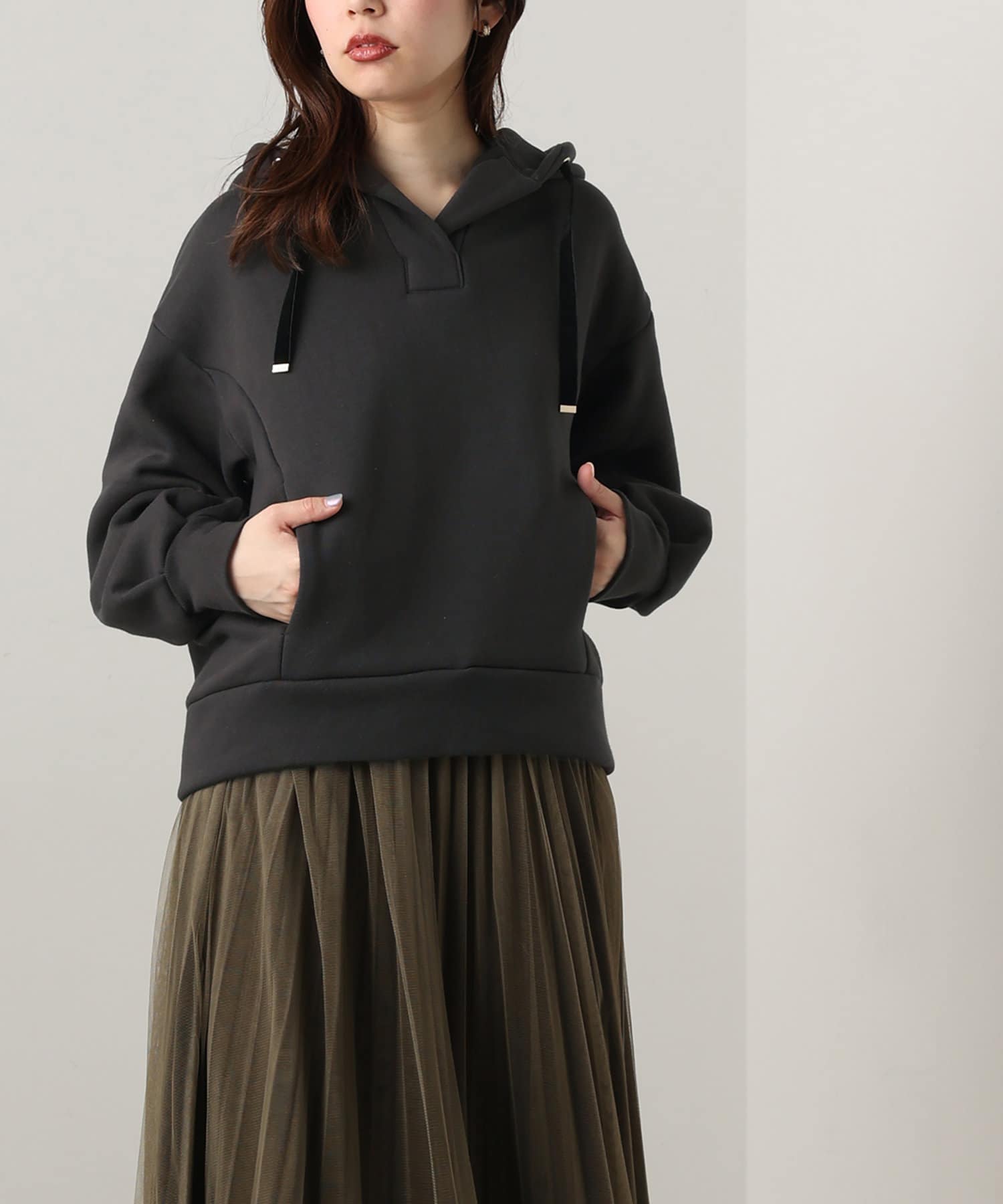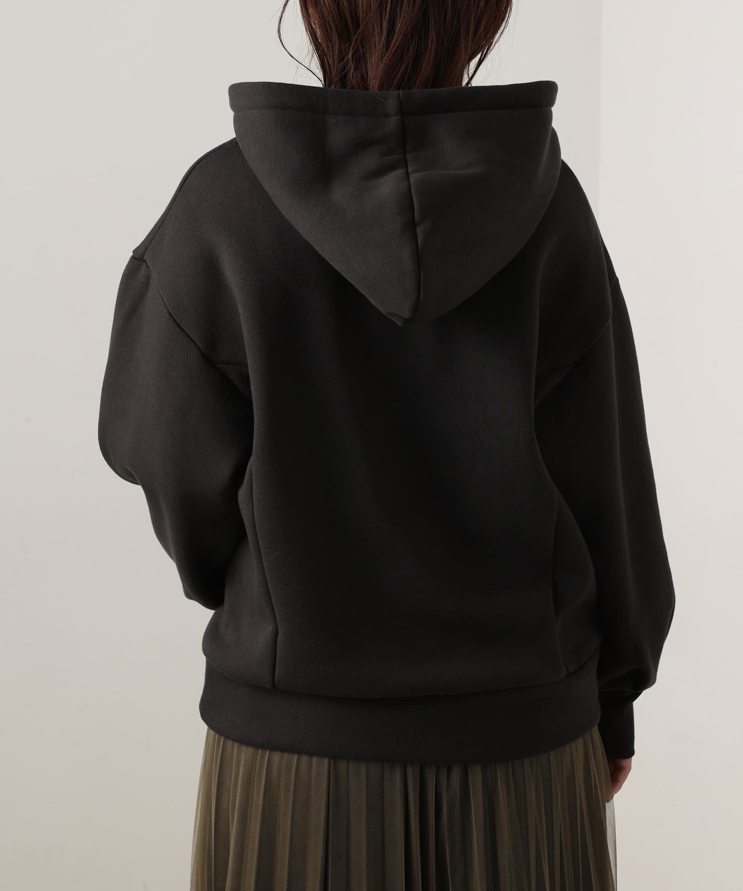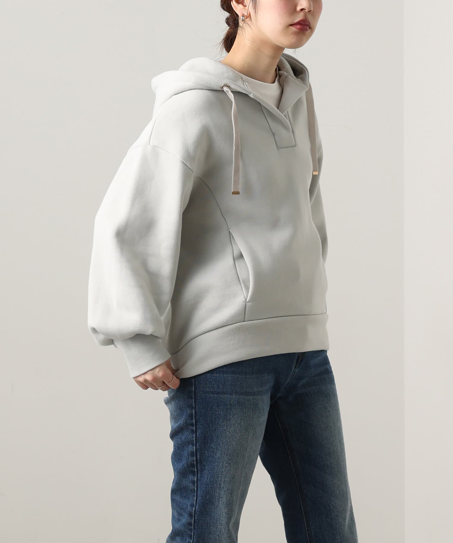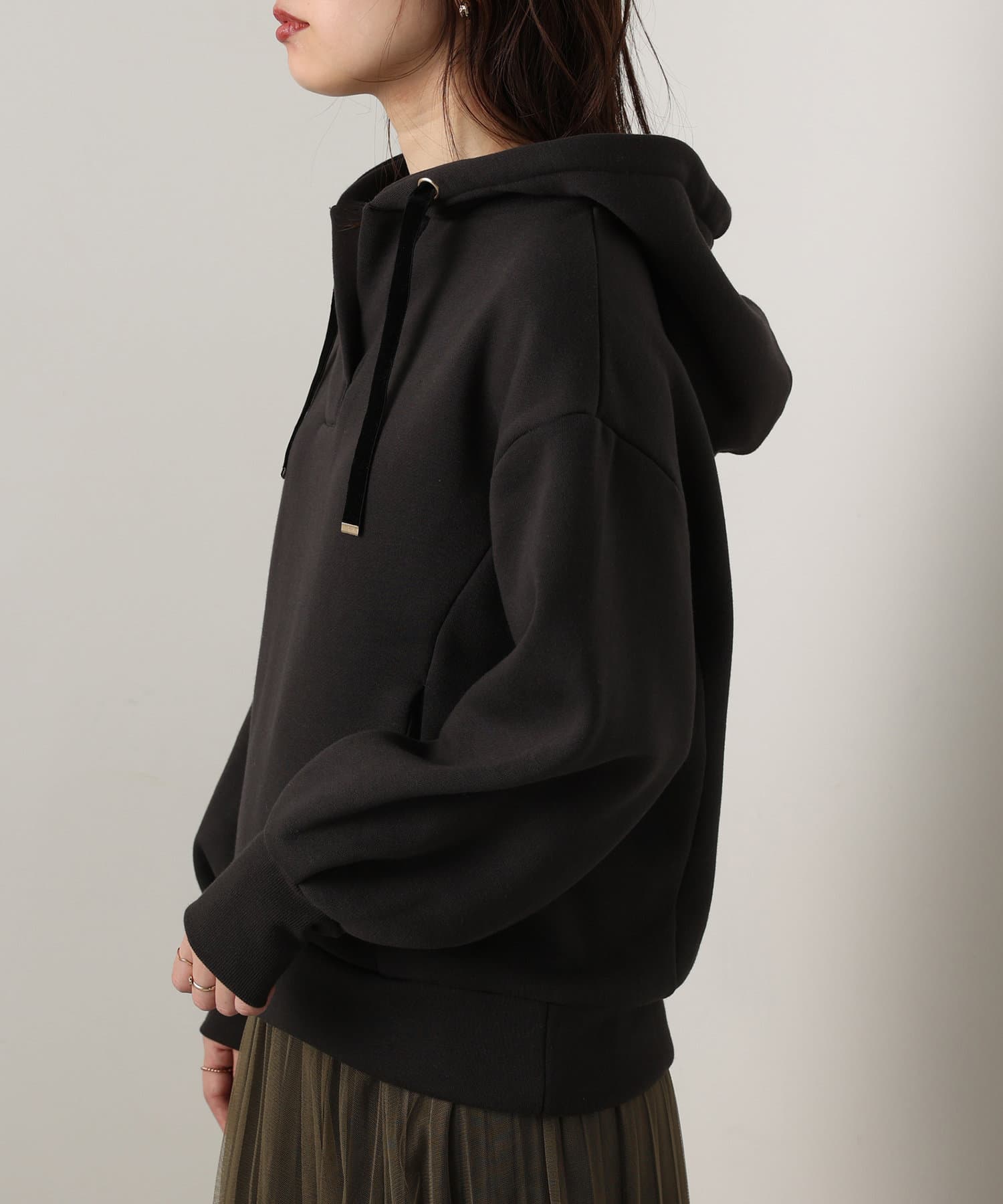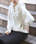カジュアルになりがちなパーカーに、女性らしい要素をプラスした、デザイナーこだわりの1品。