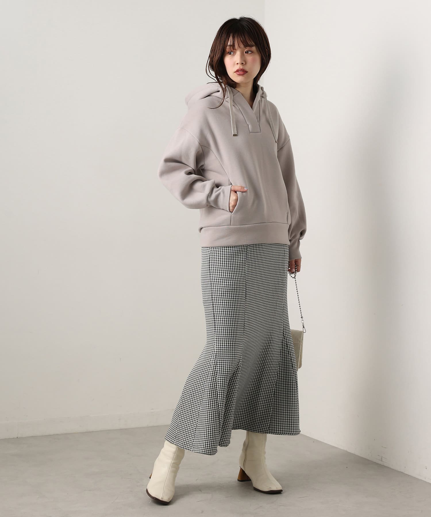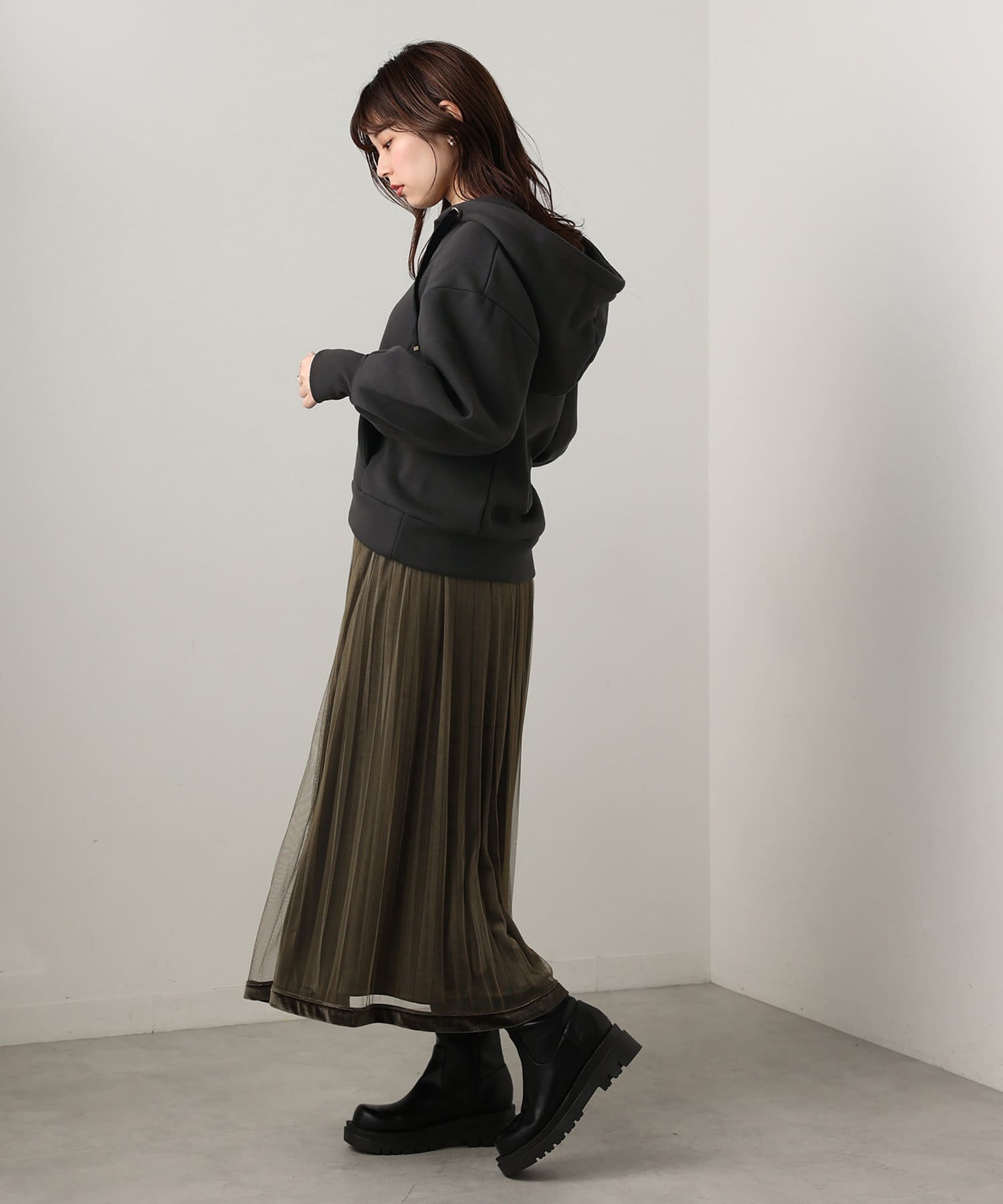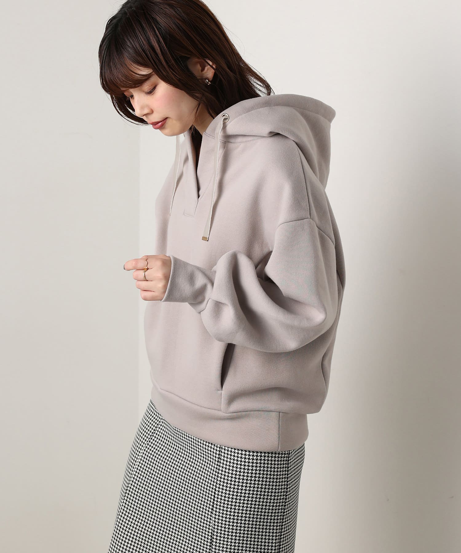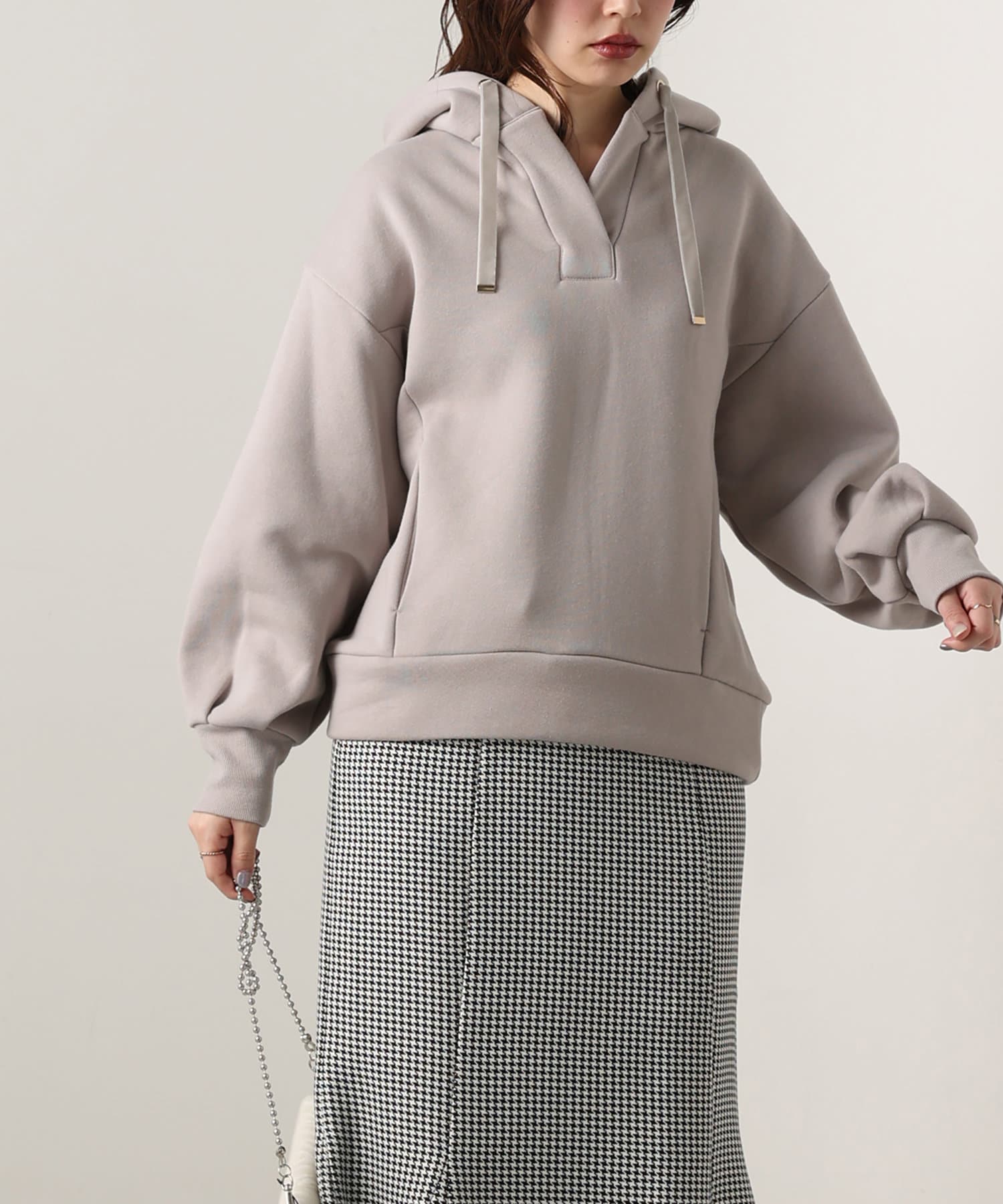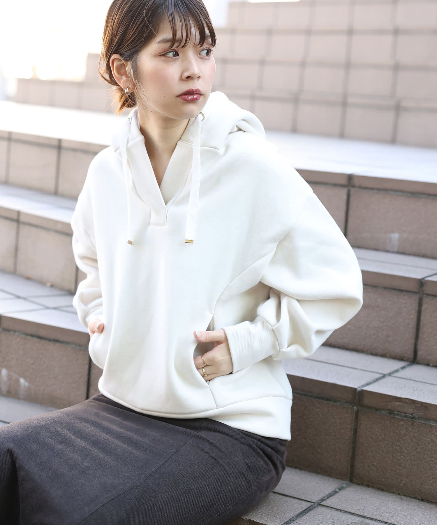 カジュアルになりがちなパーカーに、女性らしい要素をプラスした、デザイナーこだわりの1品。