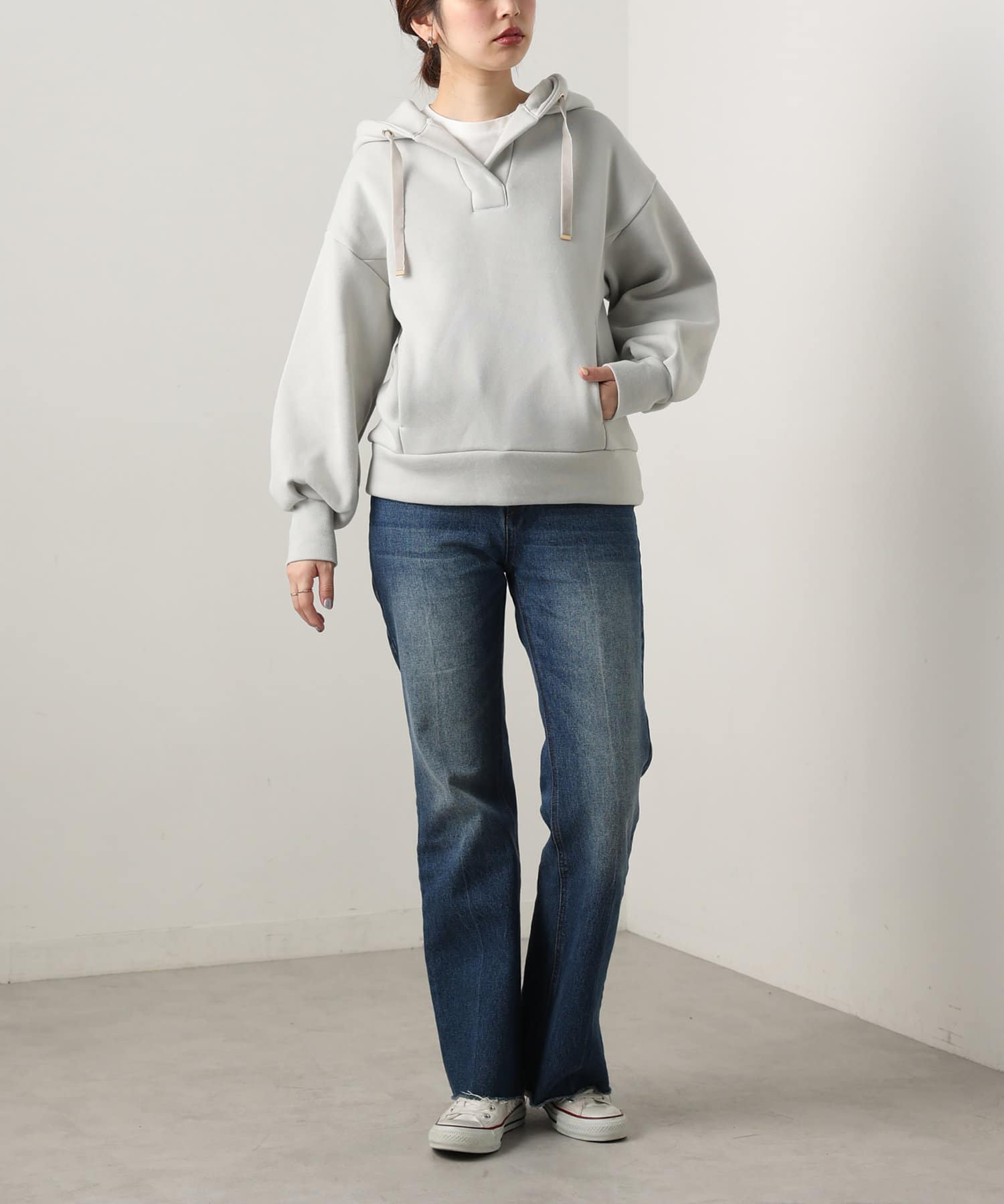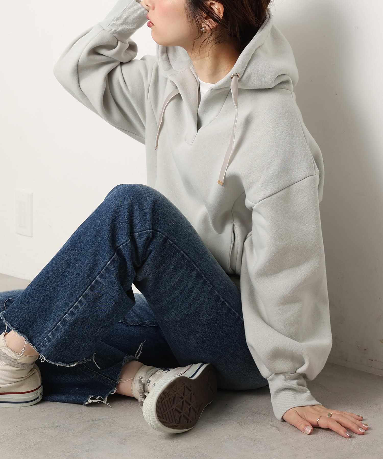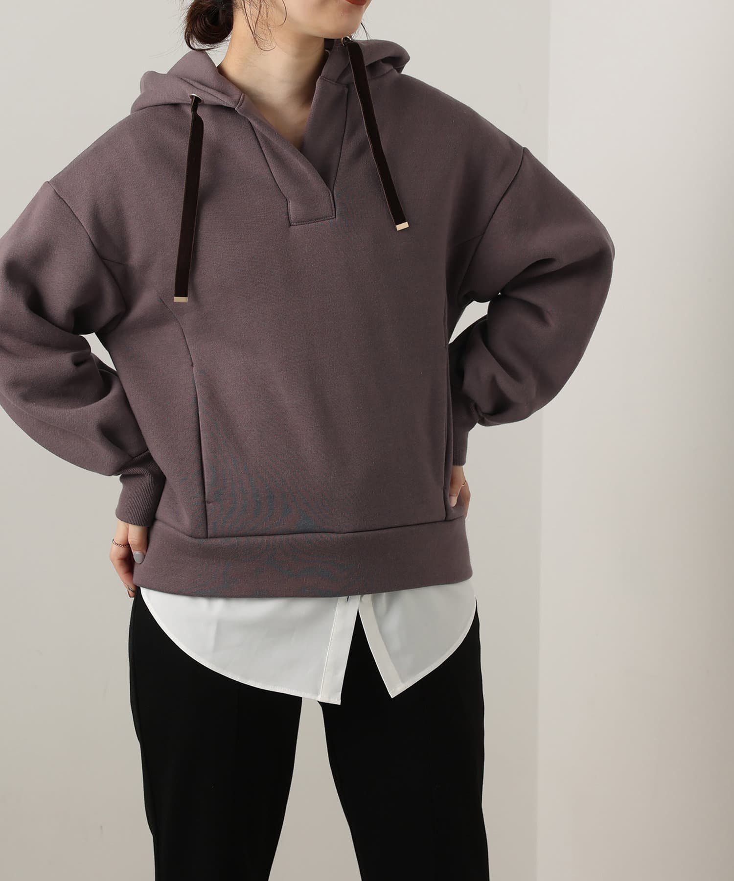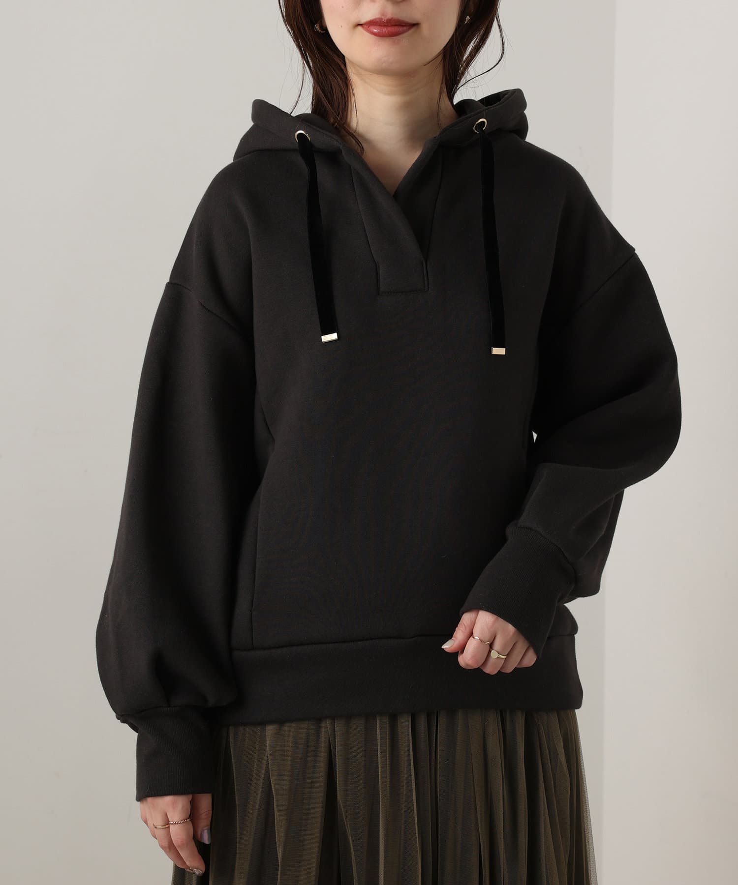 オープンネック裏起毛パーカー