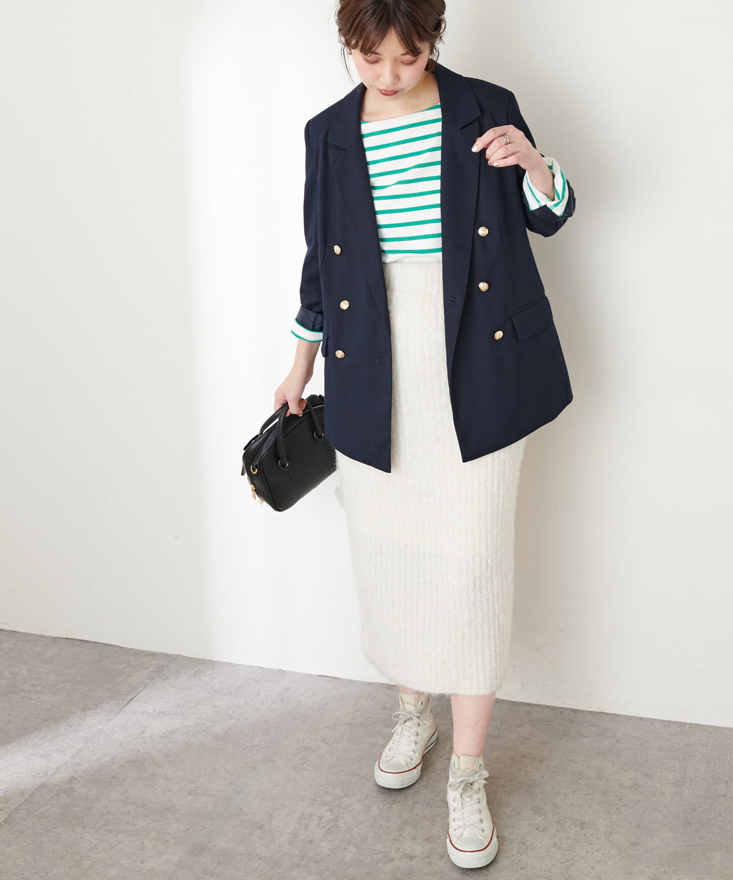 お手持ちのアイテム合わせはもちろん、348830330:ふんわりMIXニットショートカーデとセットアップでの着用もおすすめです。