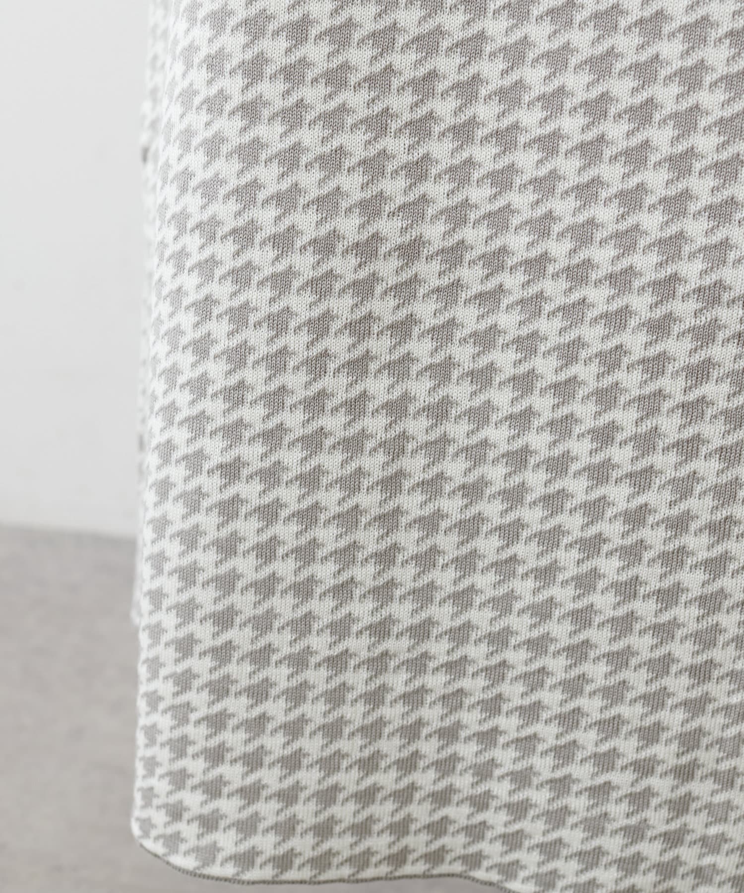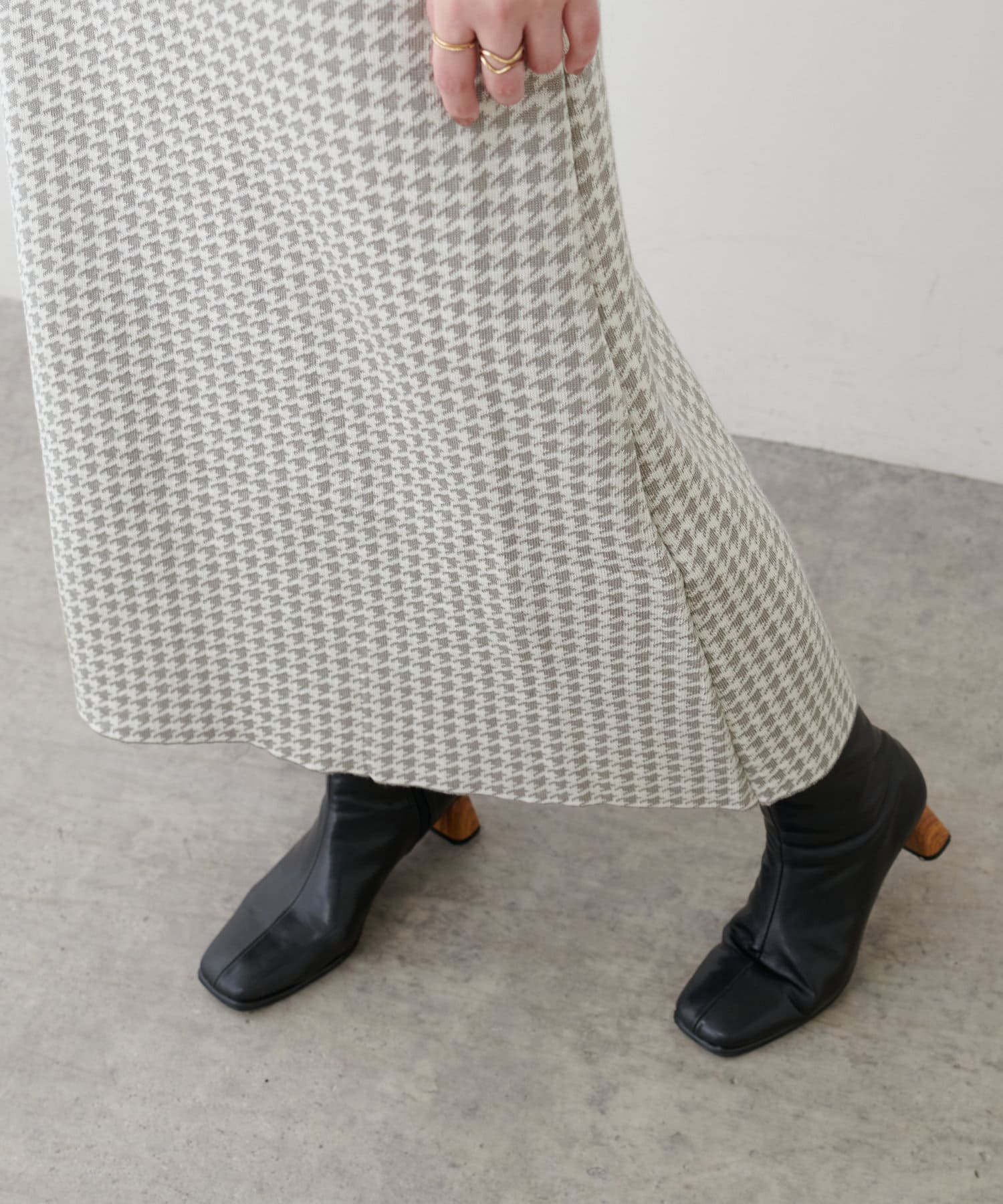 上品なジャガード織り千鳥格子柄が目を引くニットスカート。