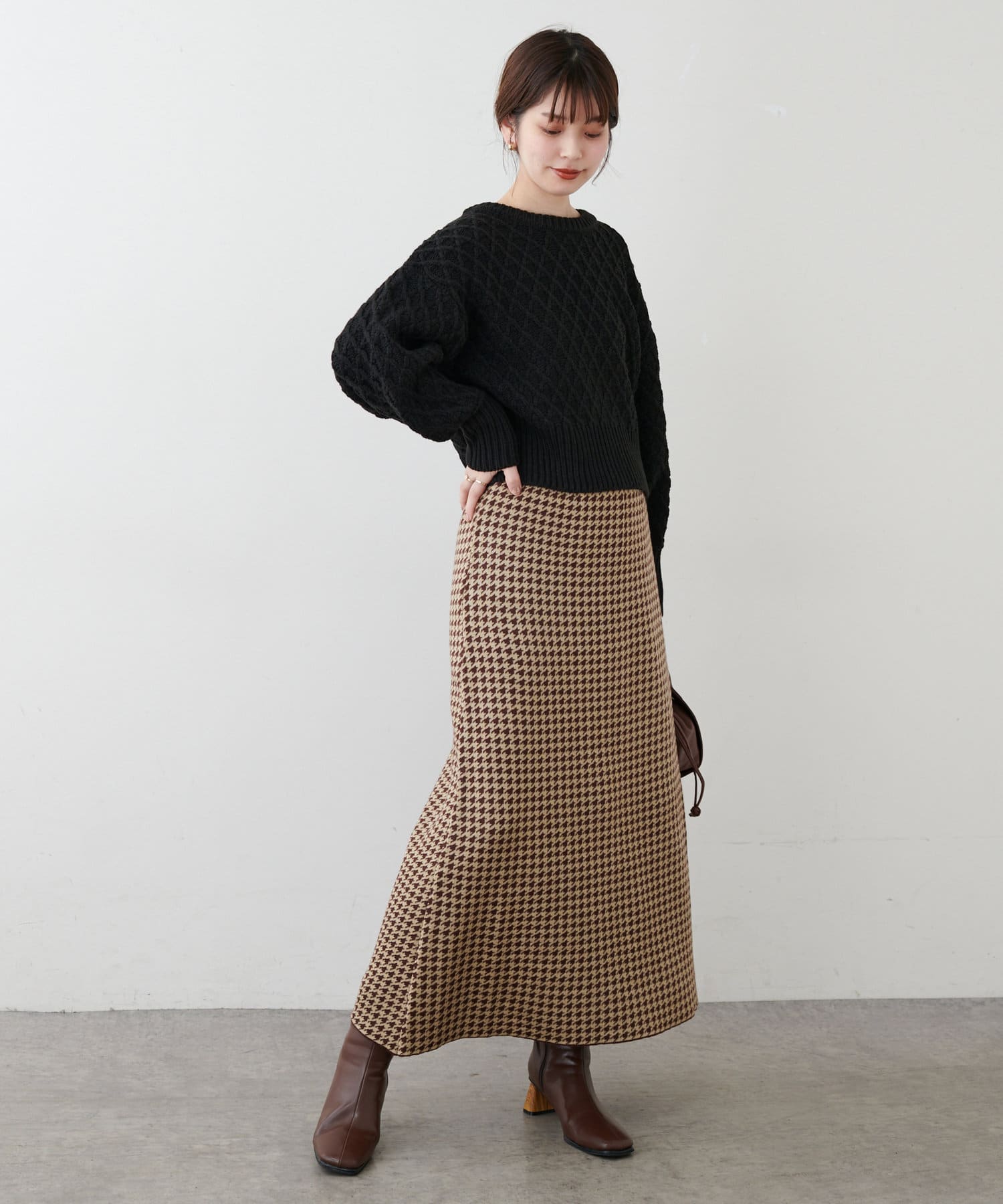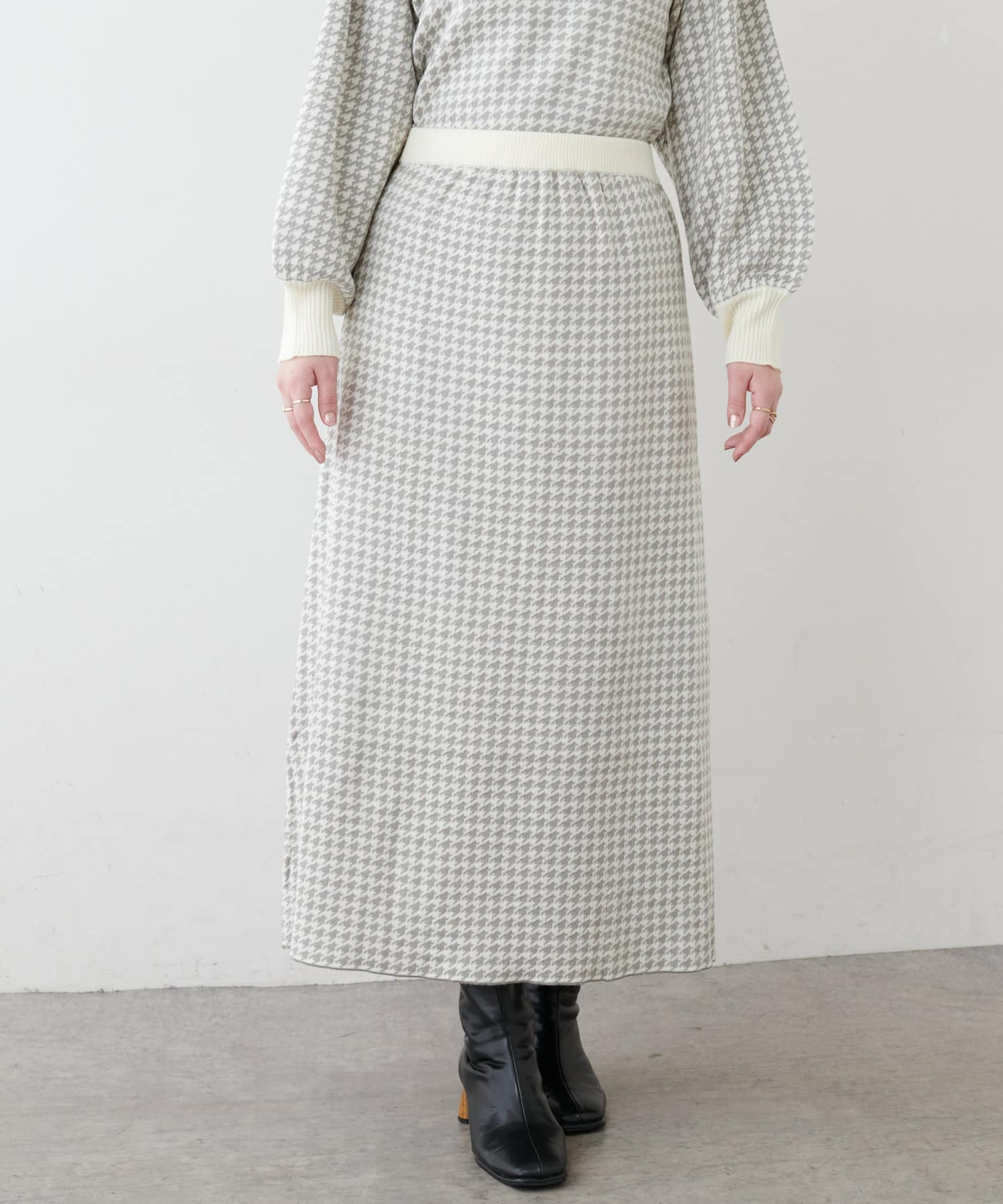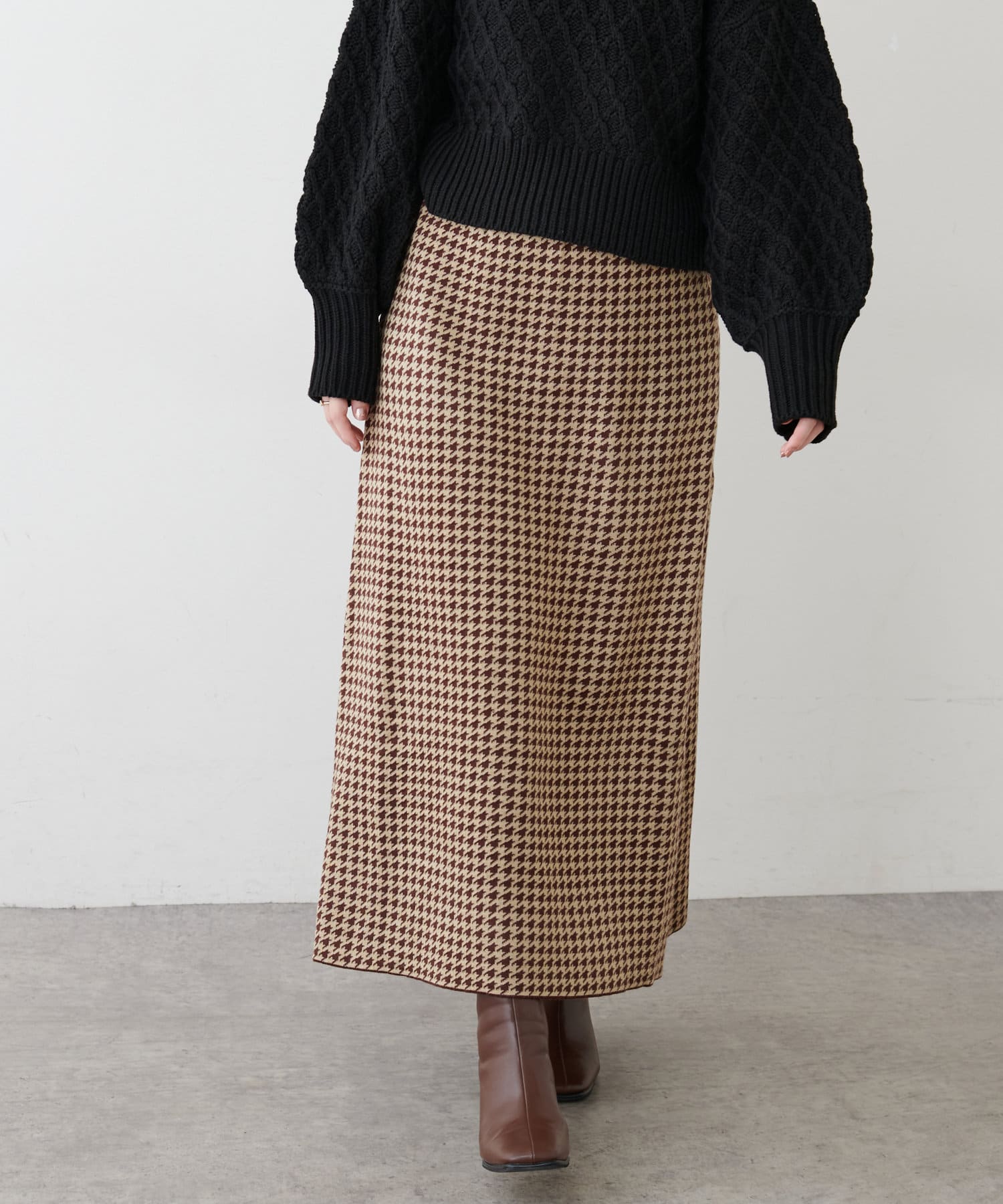 • natural couture(ナチュラルクチュール) 千鳥格子ダブルジャガードニットスカート