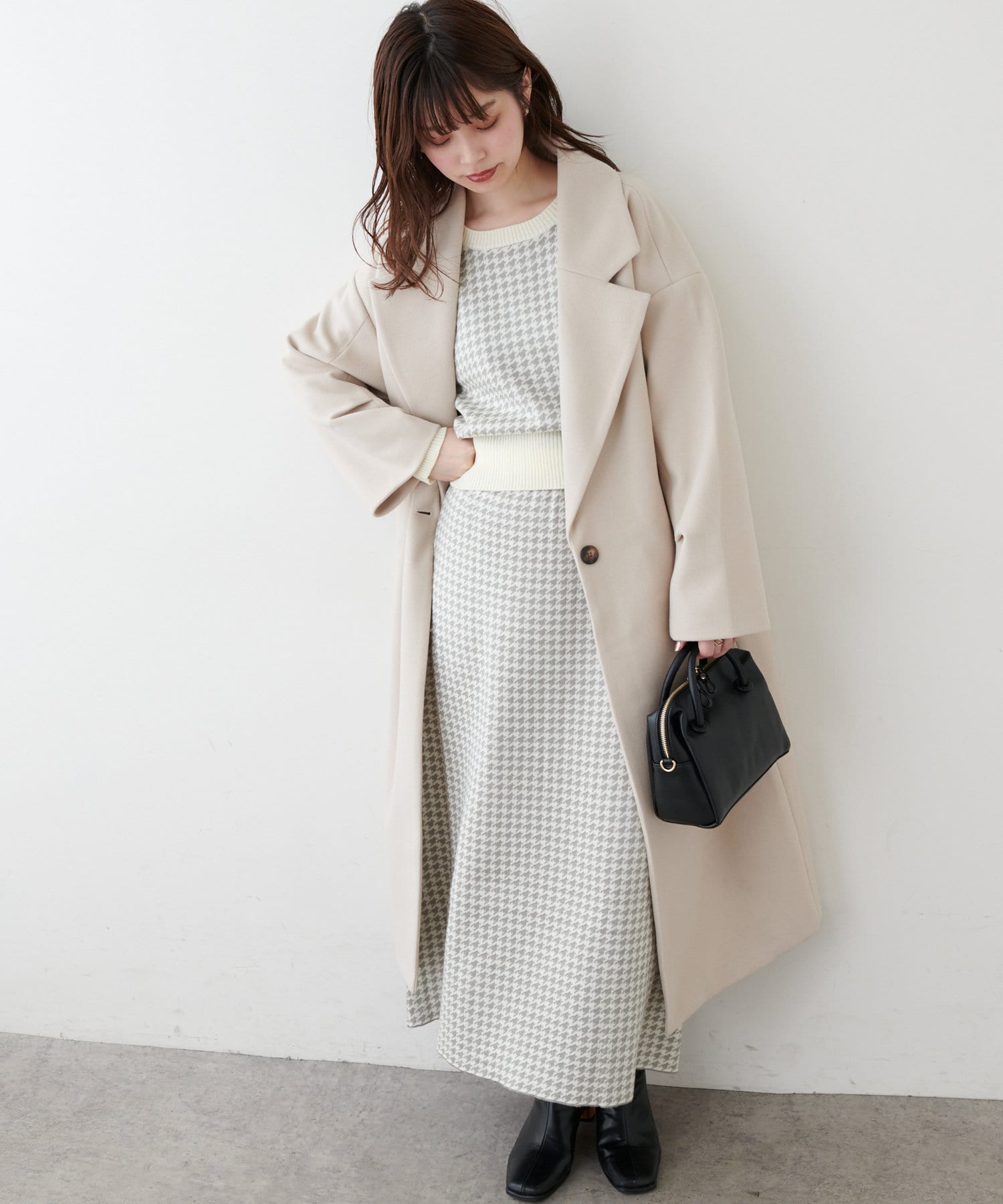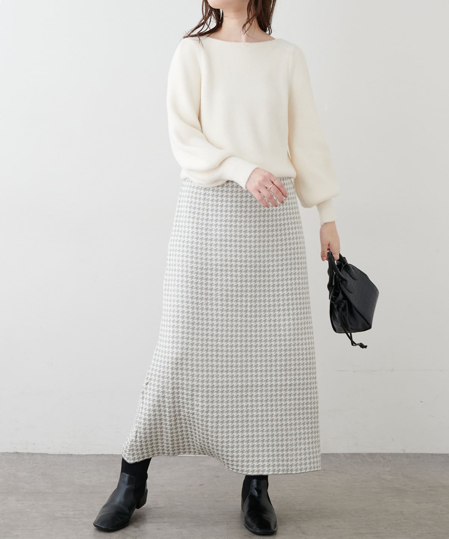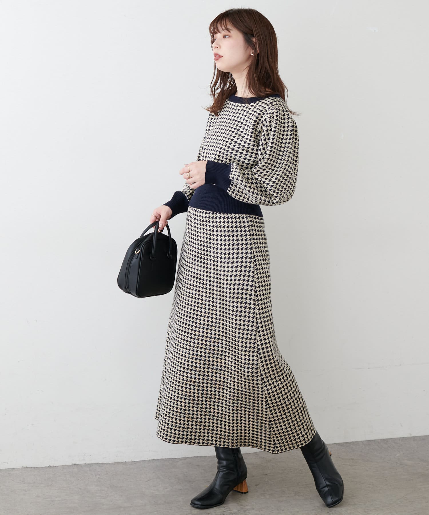• natural couture(ナチュラルクチュール) 千鳥格子ダブルジャガードニットスカート