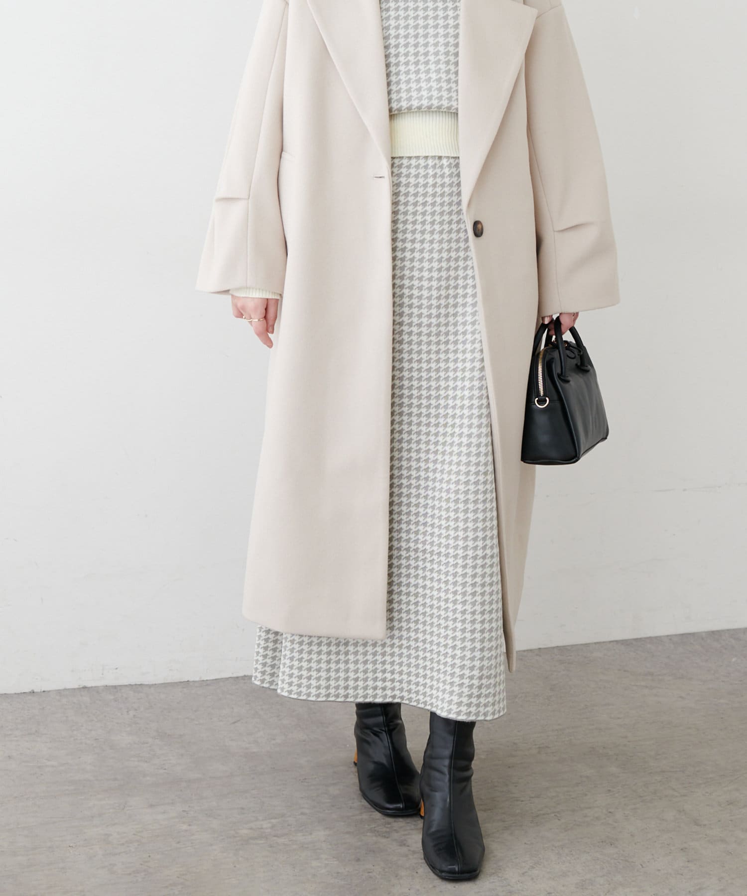 裾にかけてほんのりAラインの要素を入れ、スッキリとしたシルエットの中にも