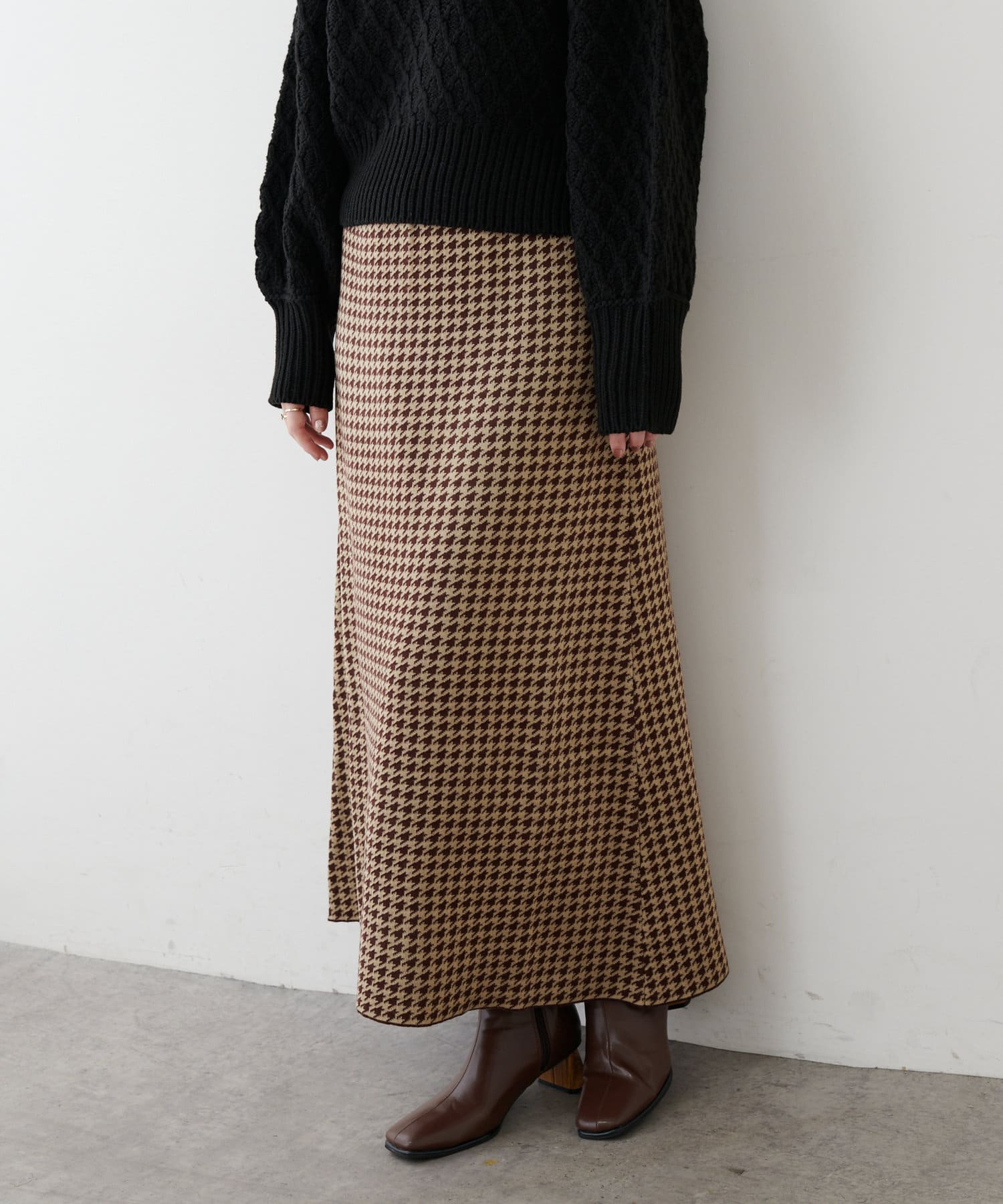 natural couture(ナチュラルクチュール) 千鳥格子ダブルジャガードニットスカート