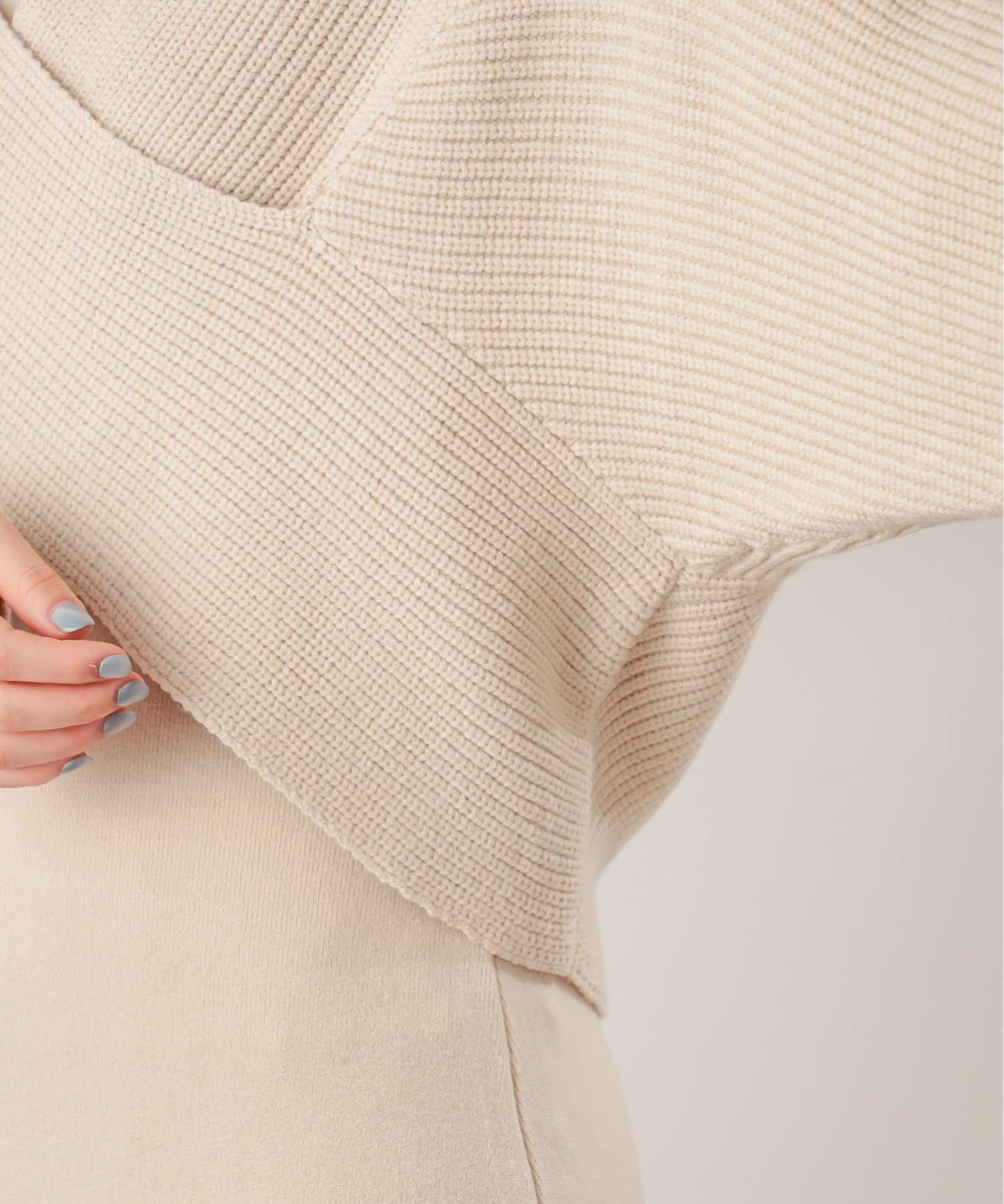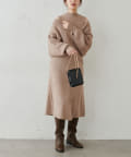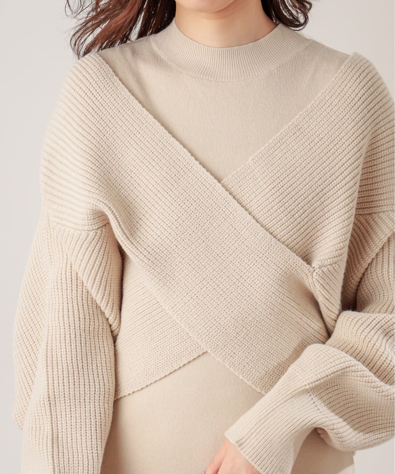 クロスニットのトップスにタートルネックやシャツをレイヤードしたスタイリングもオススメ◎
