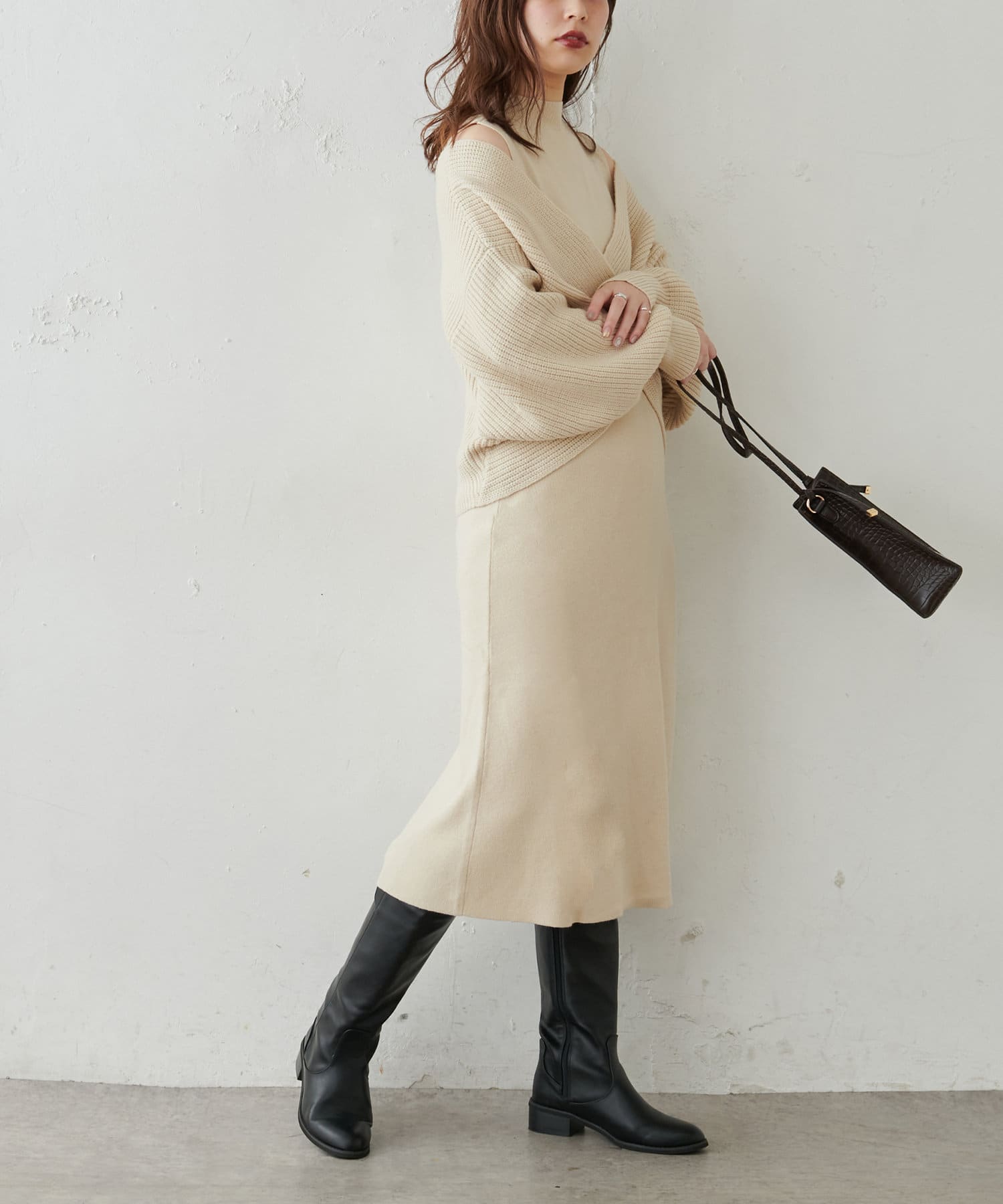 【WEB限定・大好評リバイバルアイテム】クロスニット+ノースリワンピースセット