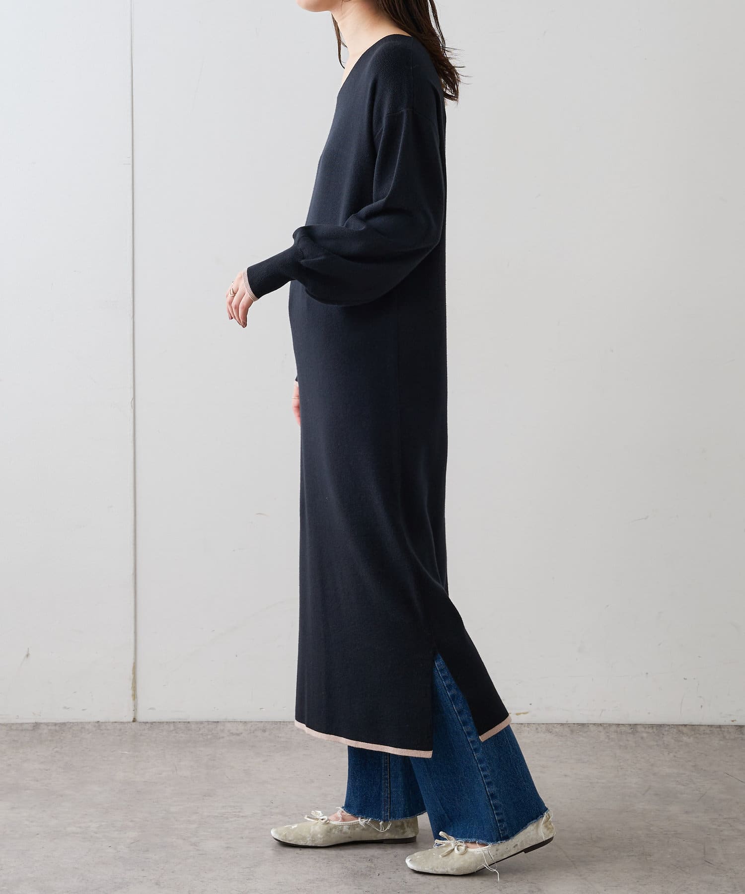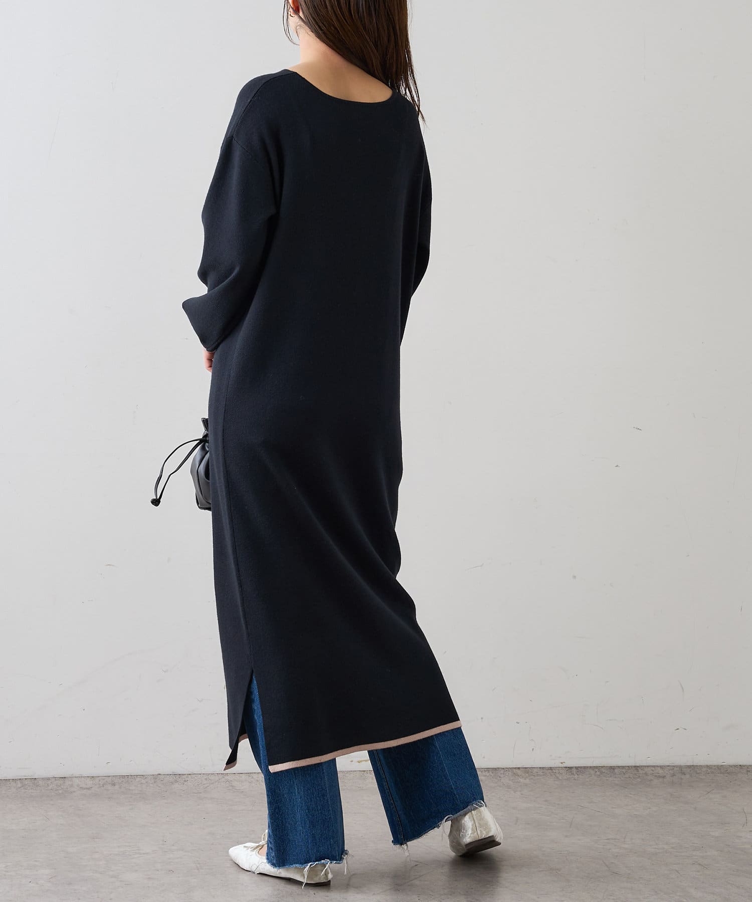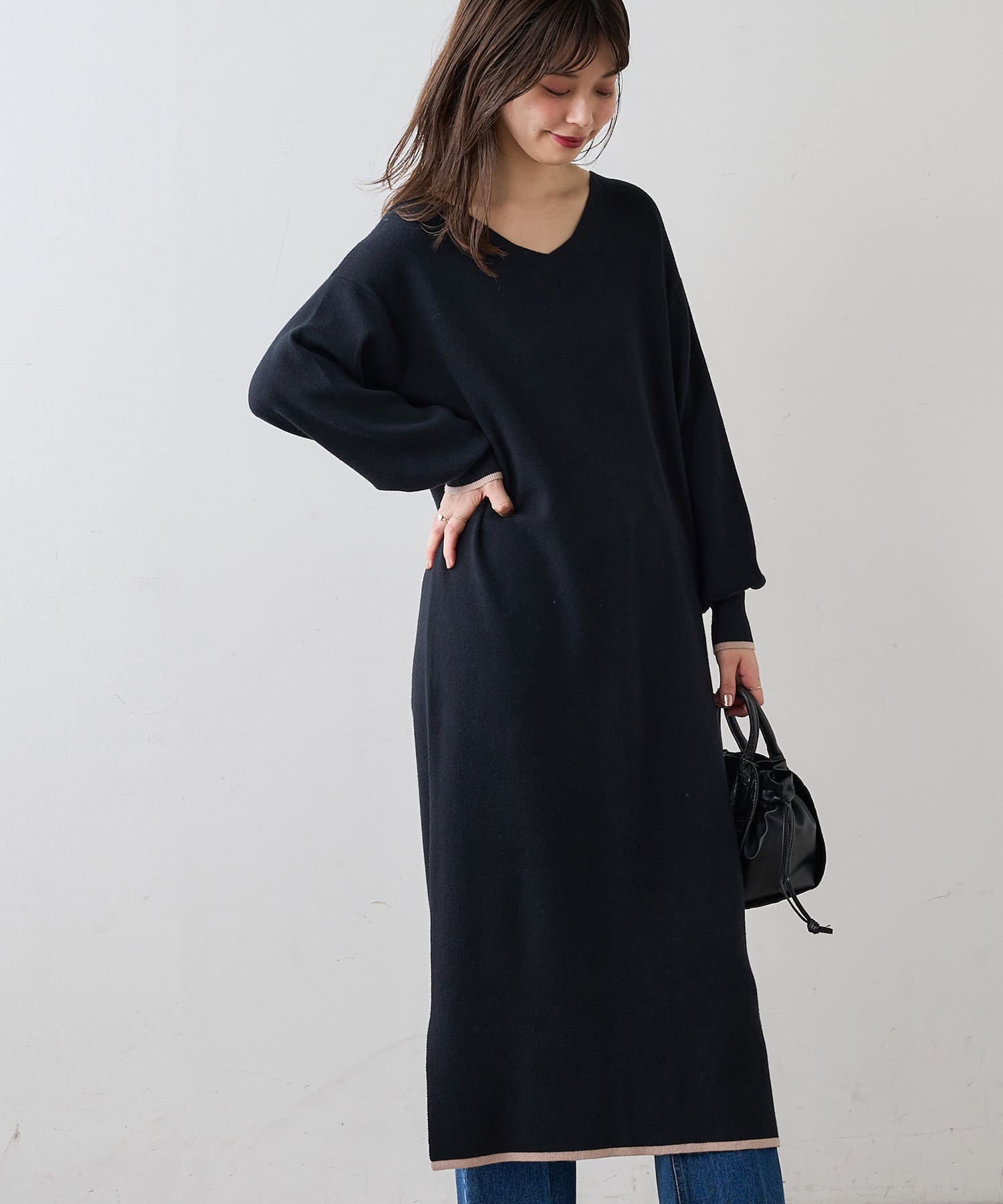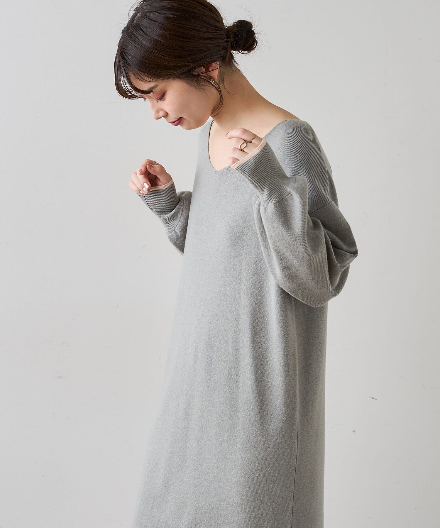 ニットワンピはピタッとするイメージがありますが、これは体のラインをあまり拾わないところが好きです。