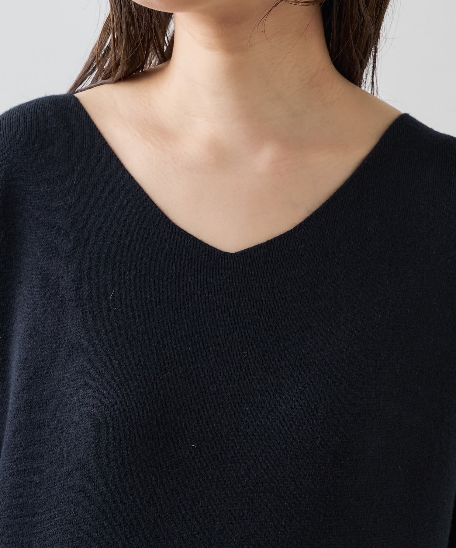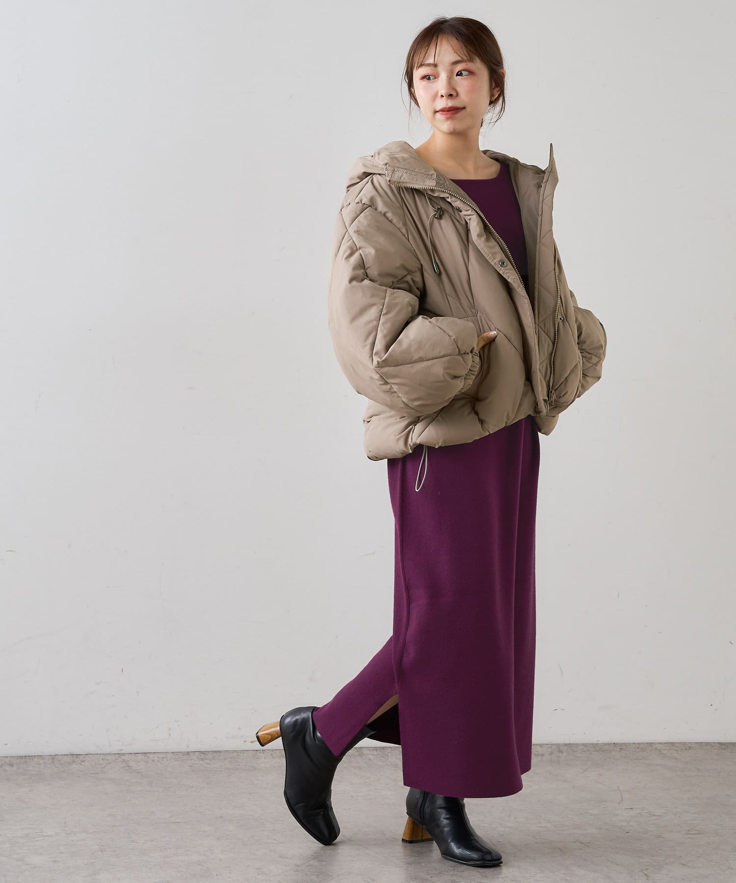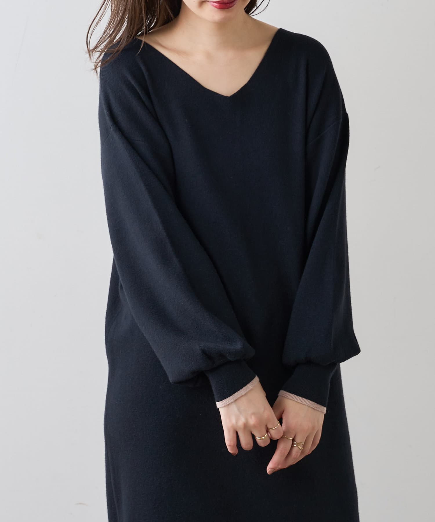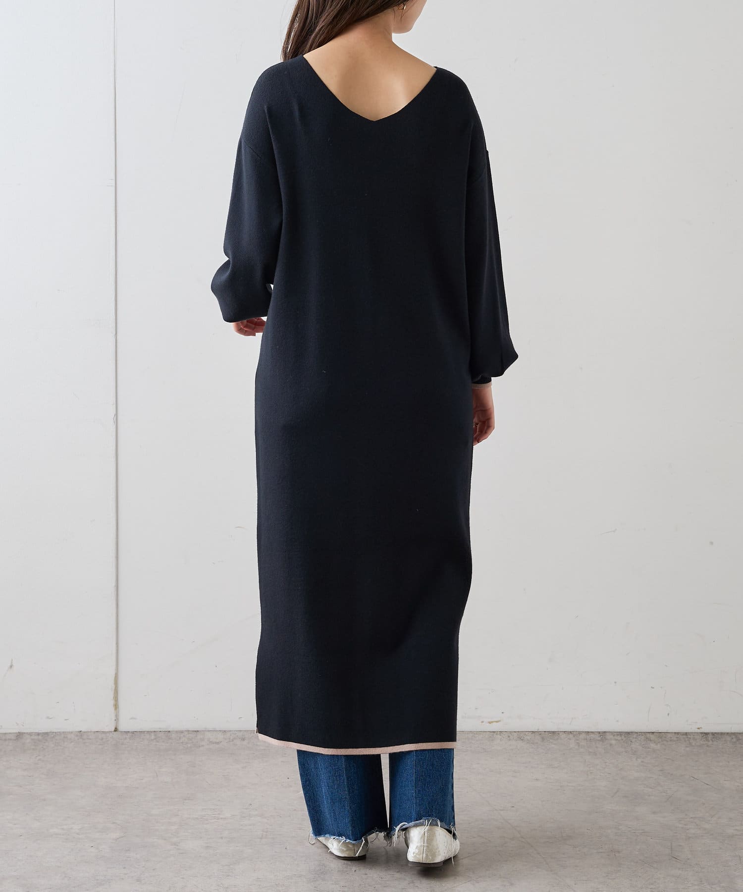 ニットワンピはピタッとするイメージがありますが、これは体のラインをあまり拾わないところが好きです。