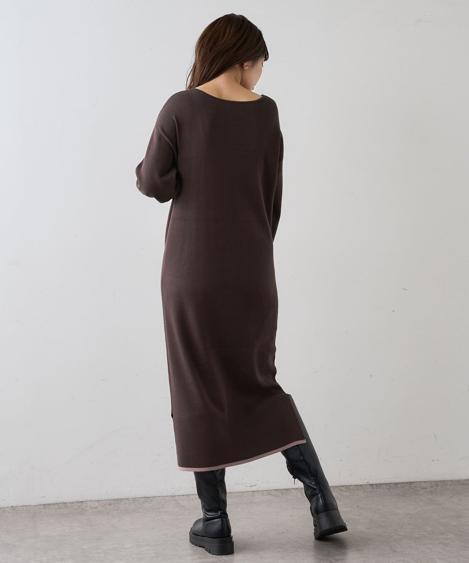 natural couture(ナチュラルクチュール) 前後2WAYプチプラ配色ニットワンピース