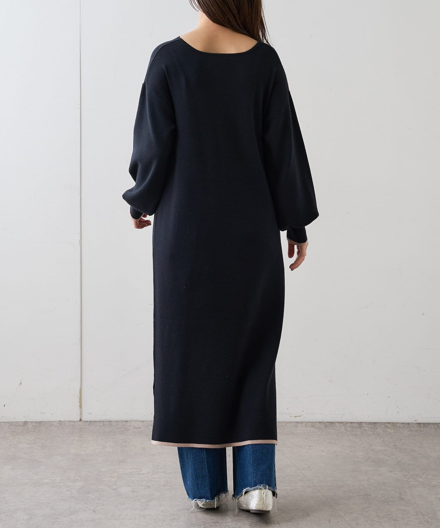 • natural couture(ナチュラルクチュール) 前後2WAYプチプラ配色ニットワンピース