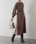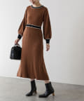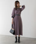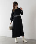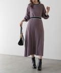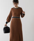 【WEB限定カラー有り】配色ライン使いニットワンピース