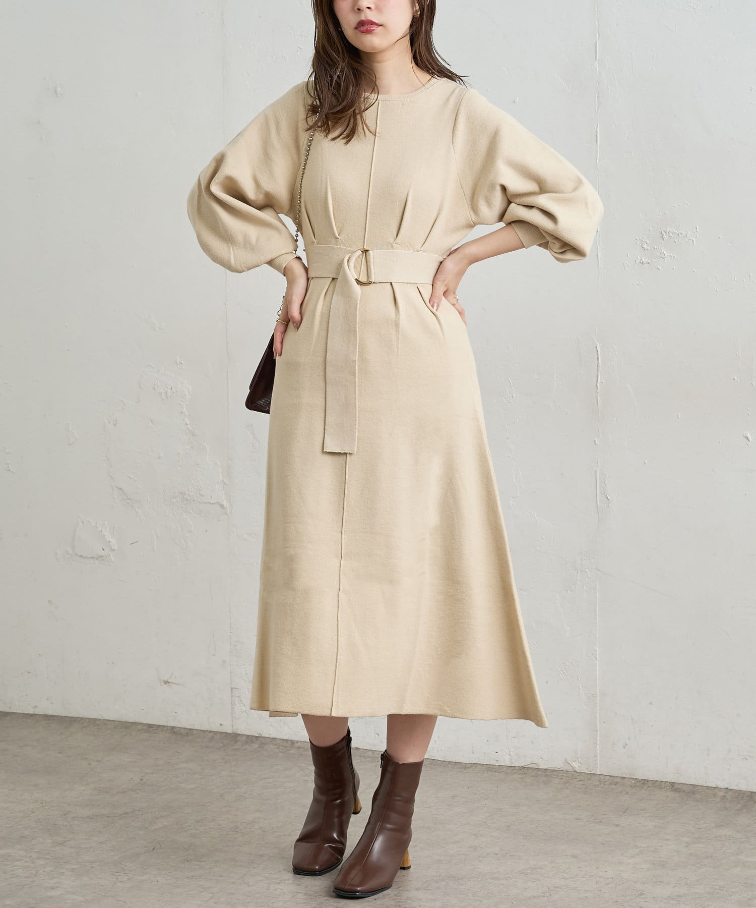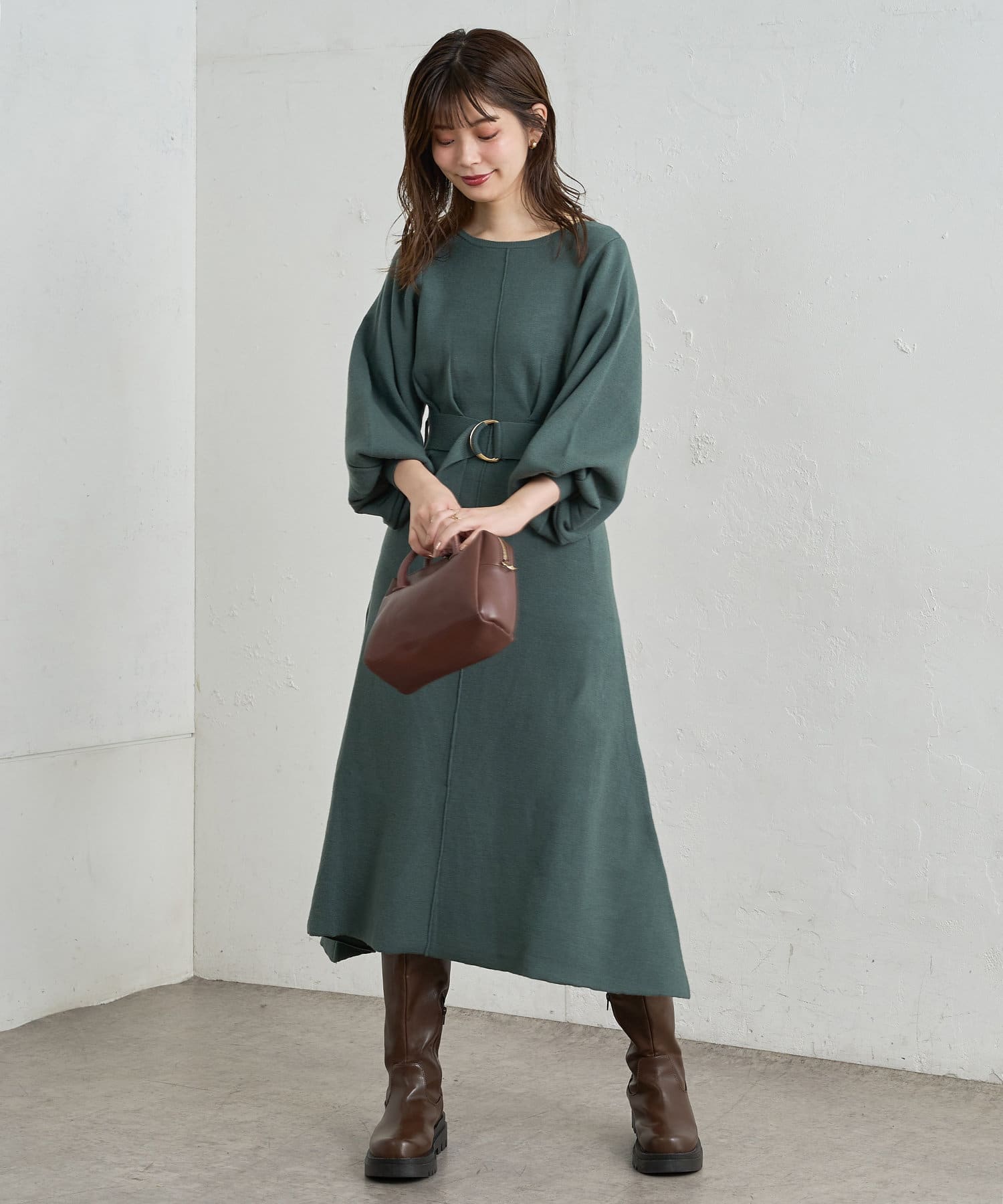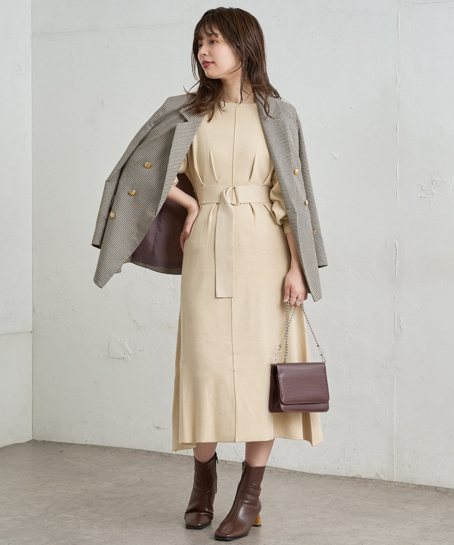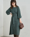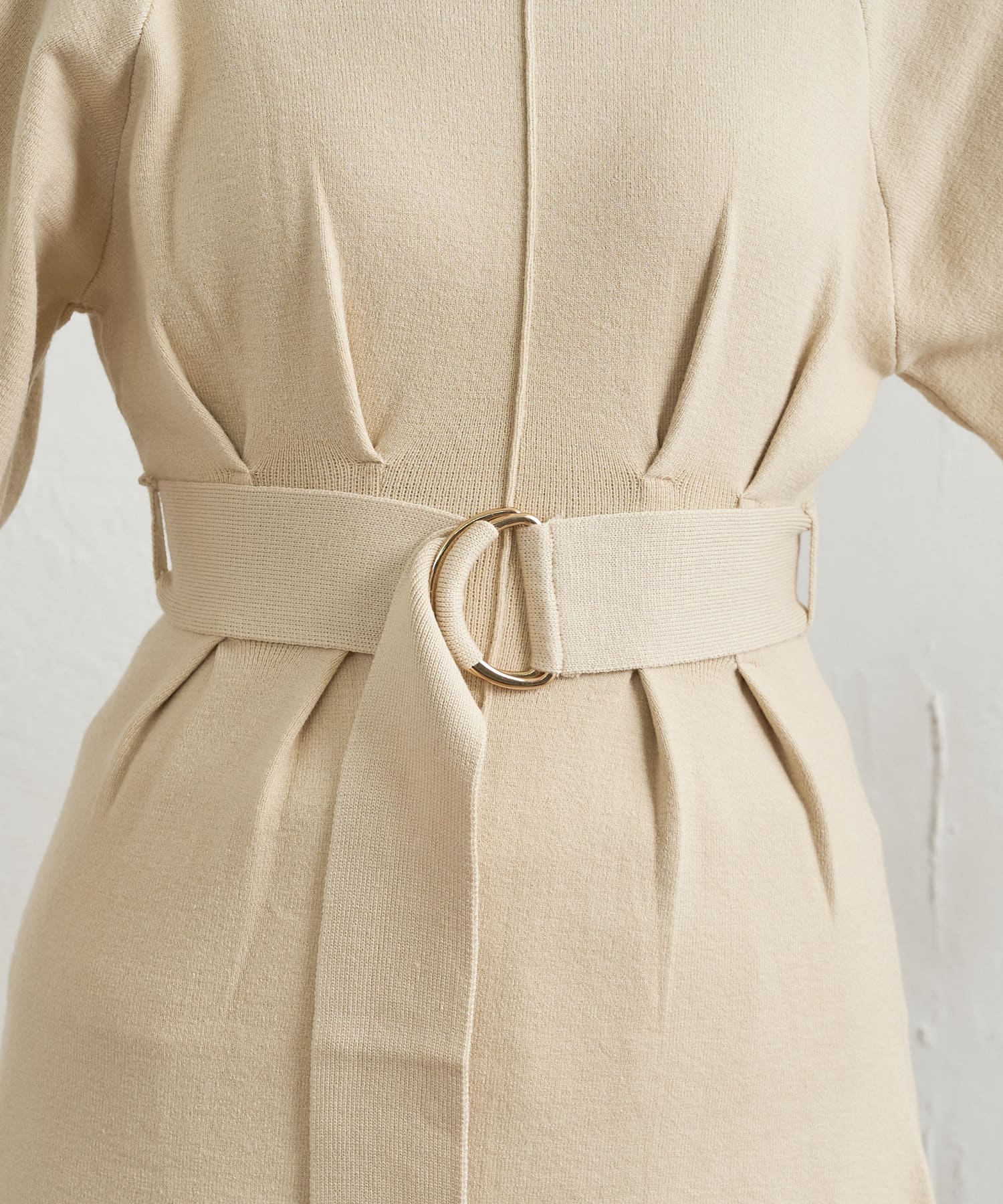 付属品のベルトでウエストマークするとメリハリが加わり、よりスタイルアップ効果が期待できます。