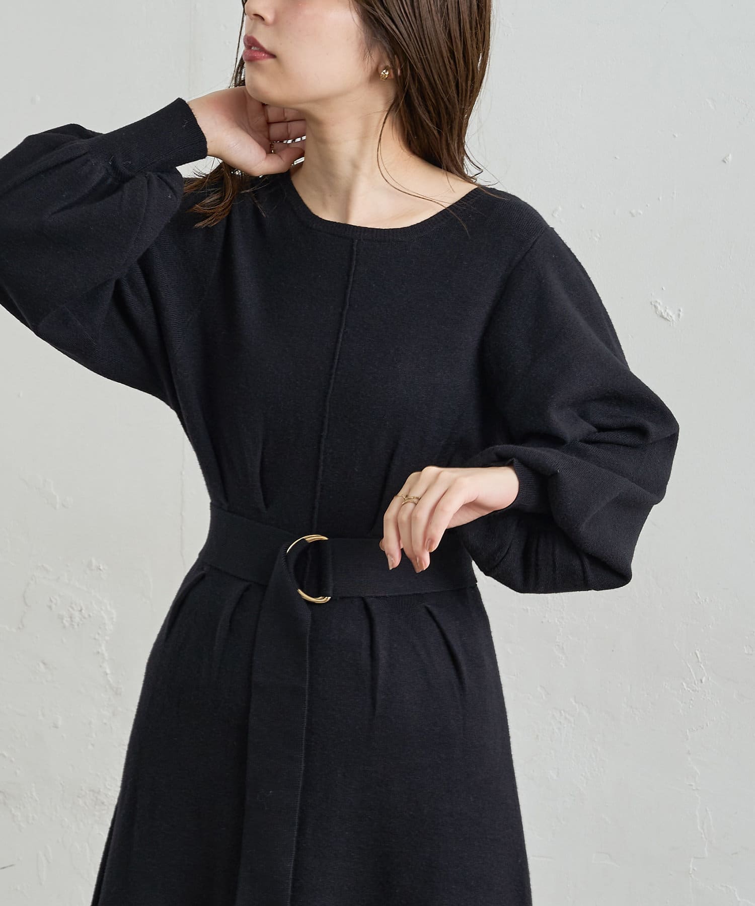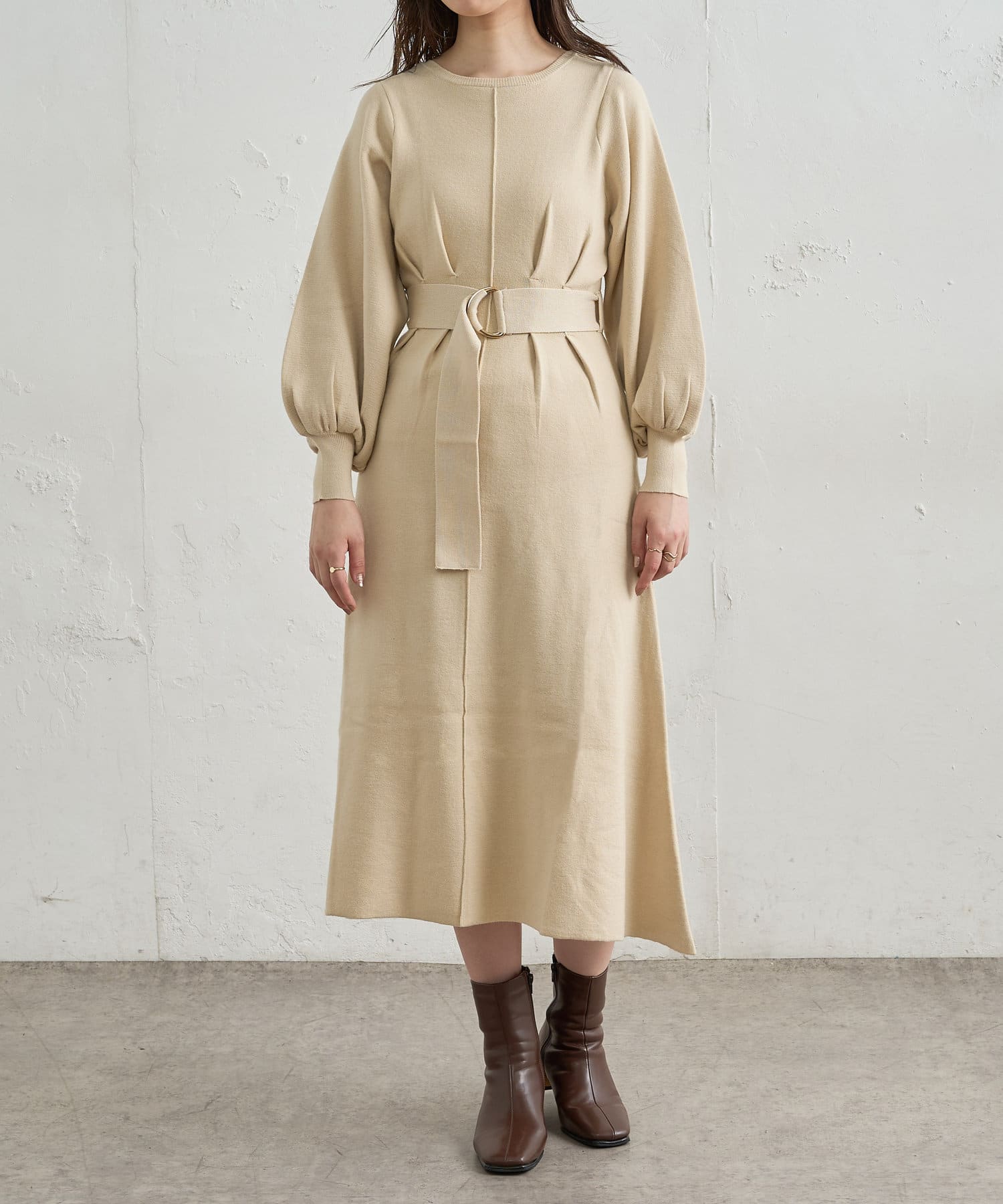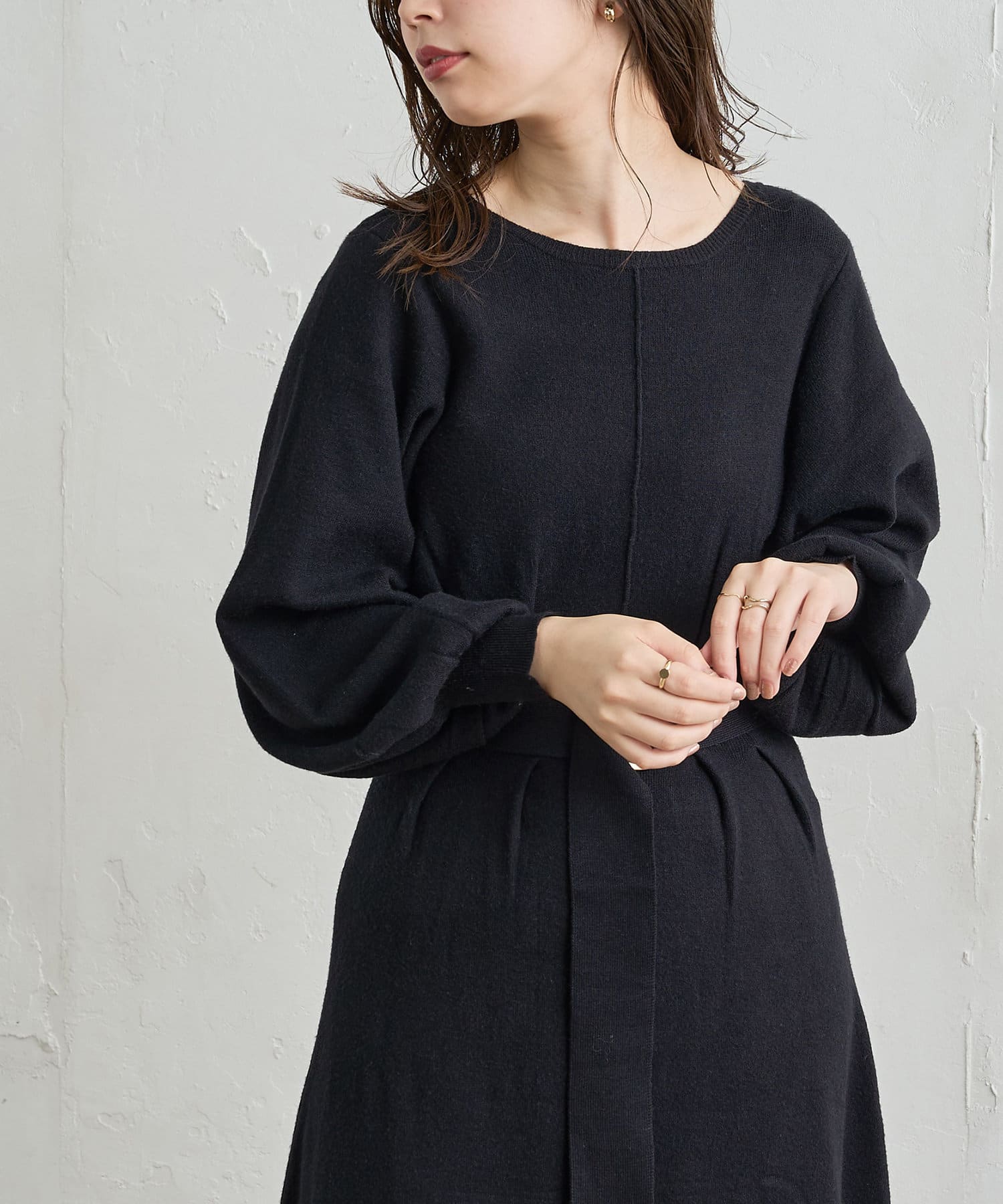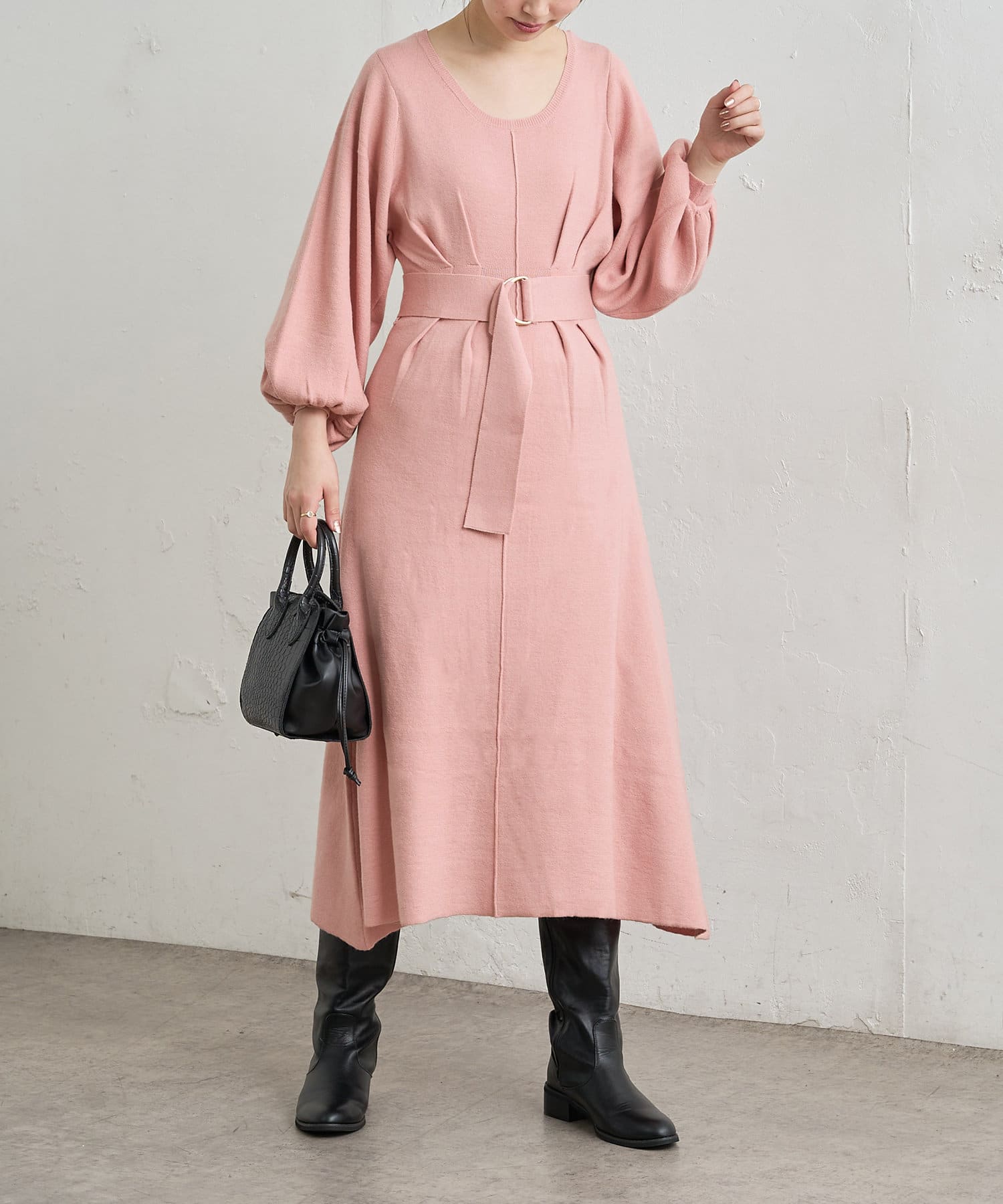 付属品のベルトでウエストマークするとメリハリが加わり、よりスタイルアップ効果が期待できます。