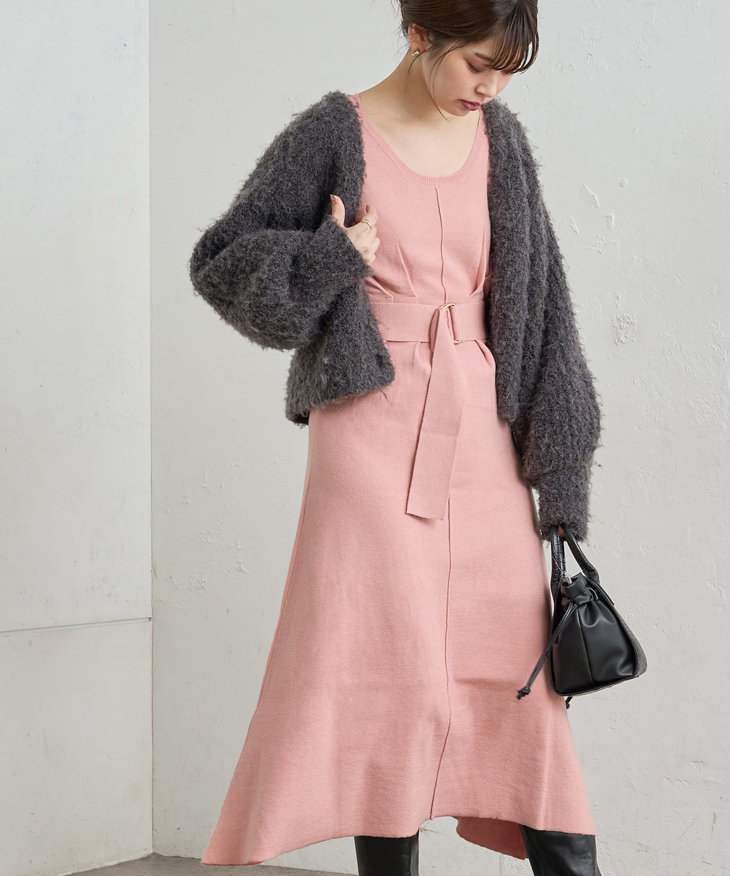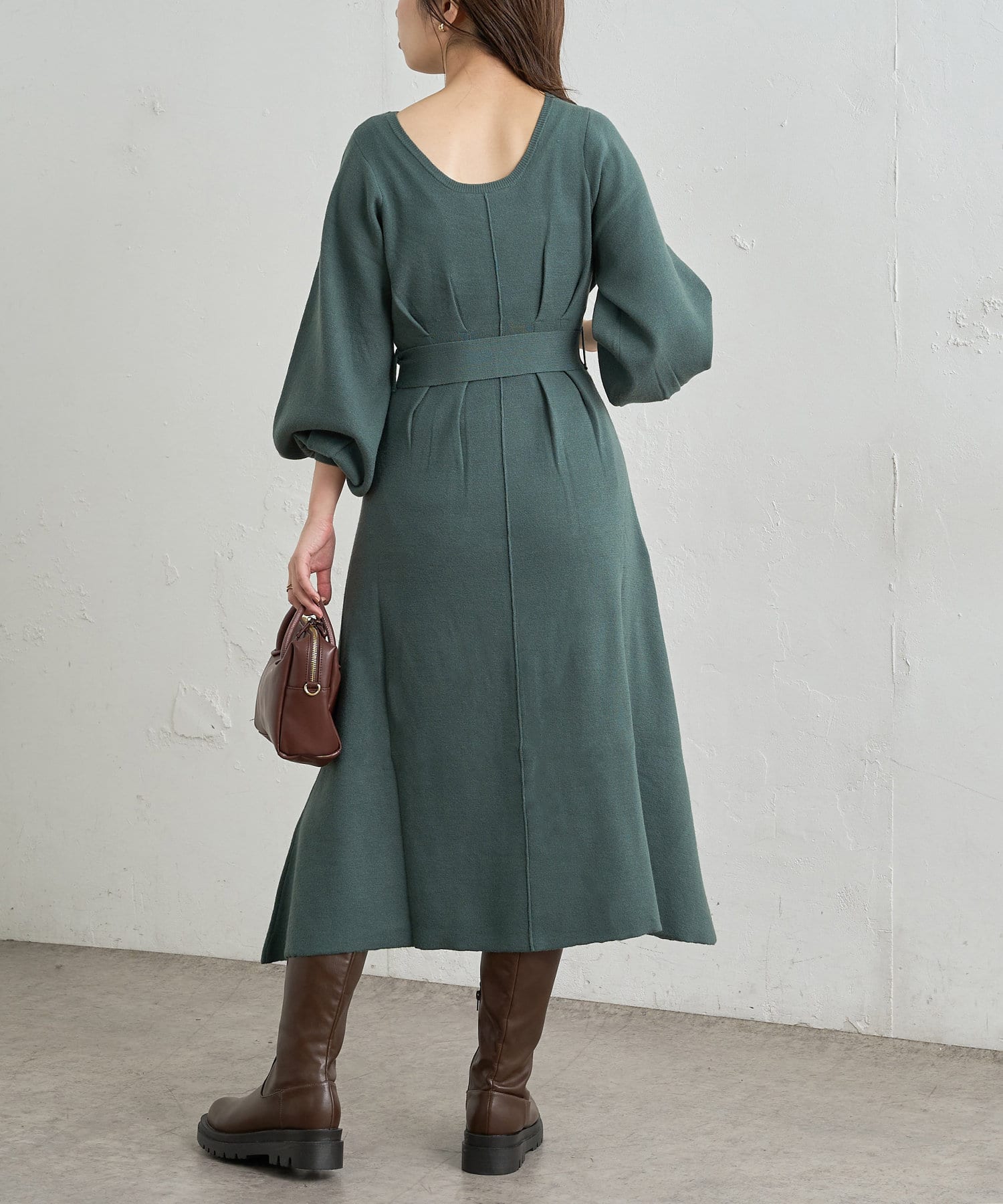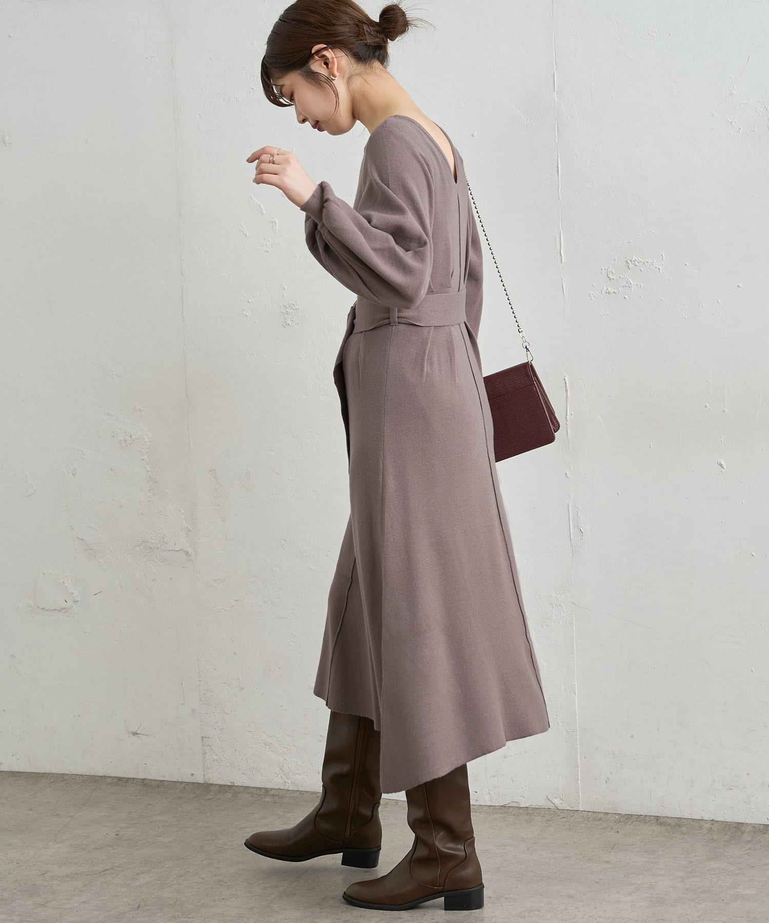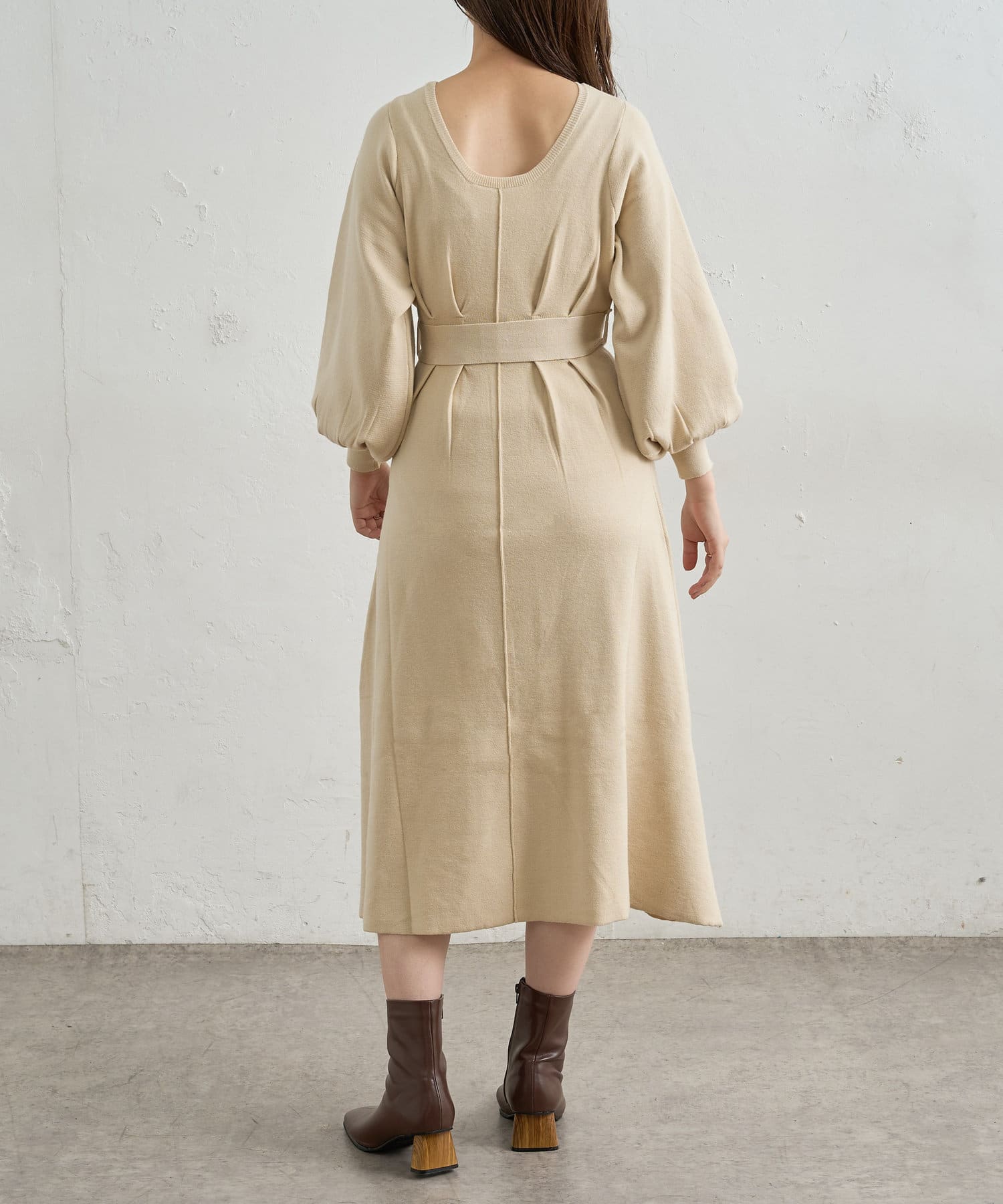 付属品のベルトでウエストマークするとメリハリが加わり、よりスタイルアップ効果が期待できます。