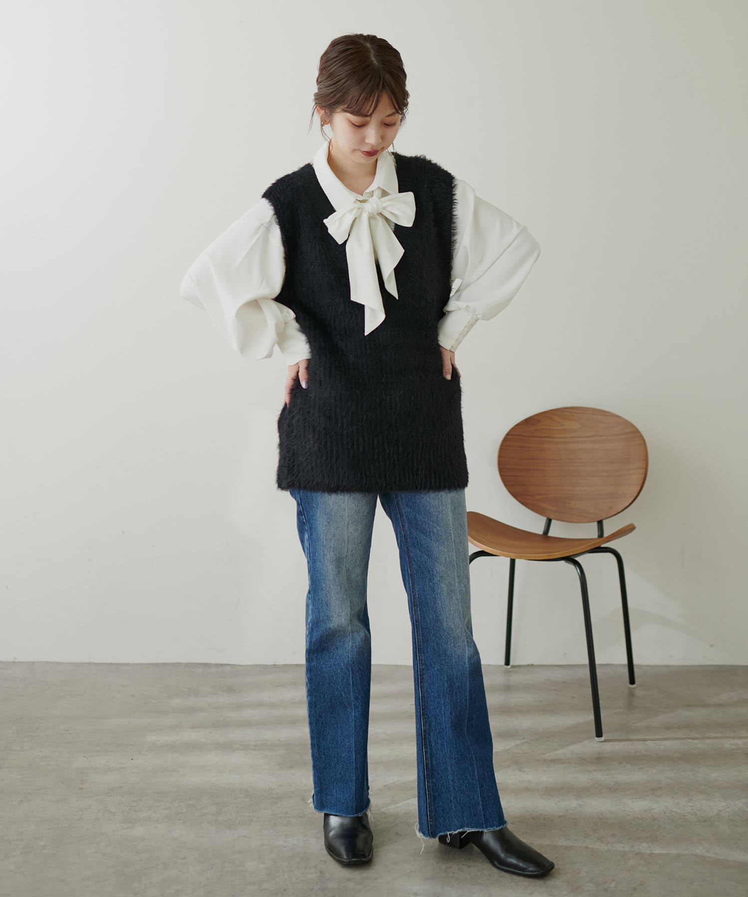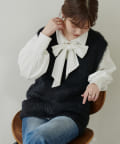 マルチWayリボンブラウス(351300120)とフェザーベストを重ねたり、