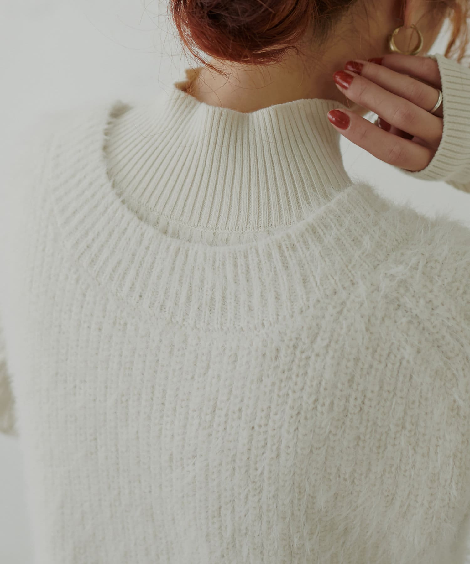 ハイネック過ぎない首元は苦しさがなく、快適にお召頂けます。