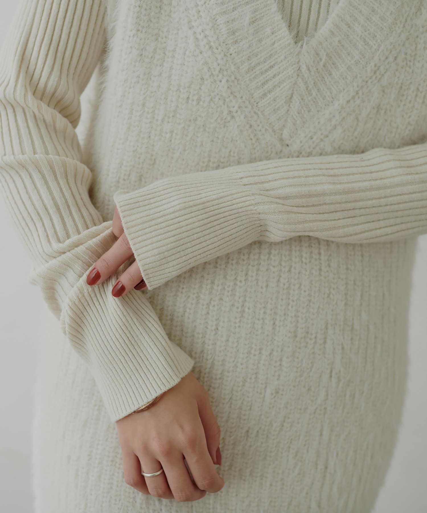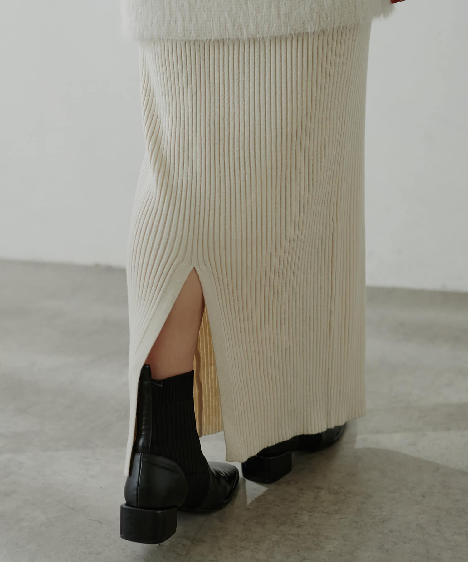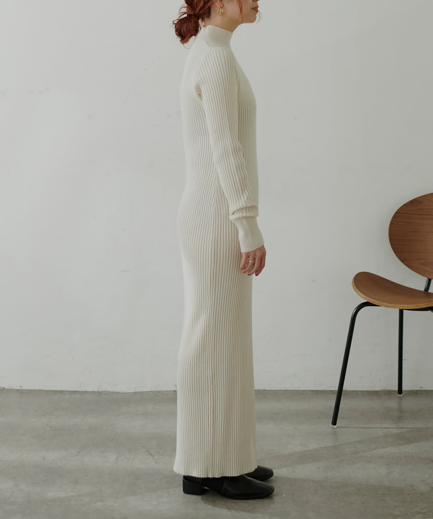 リブニットワンピは程良いサイズ感と丈感で幅広いお客様にマッチします。