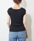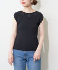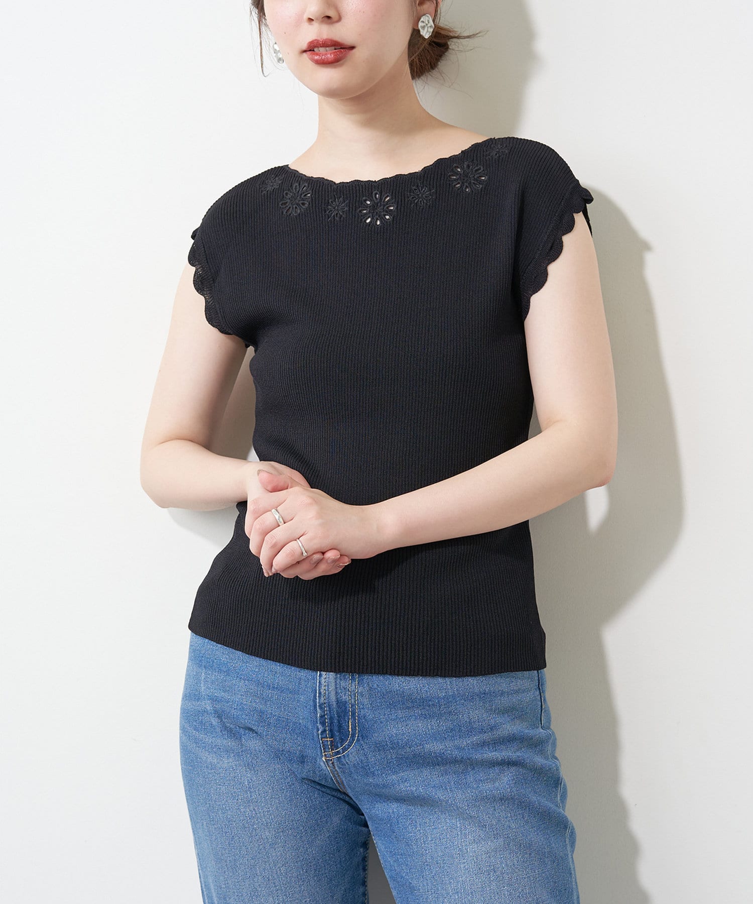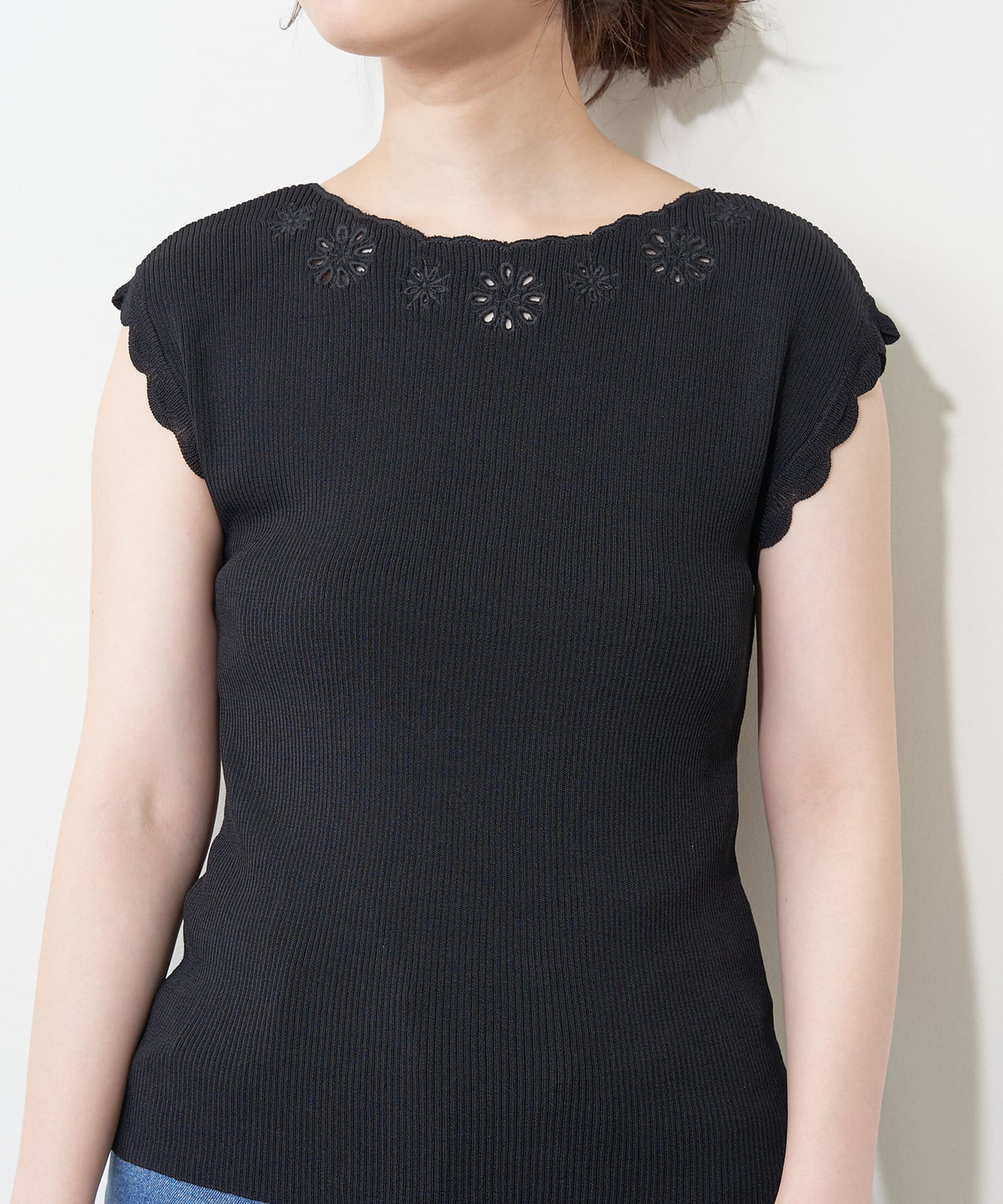 衿ぐりお花刺繍強撚リブニット