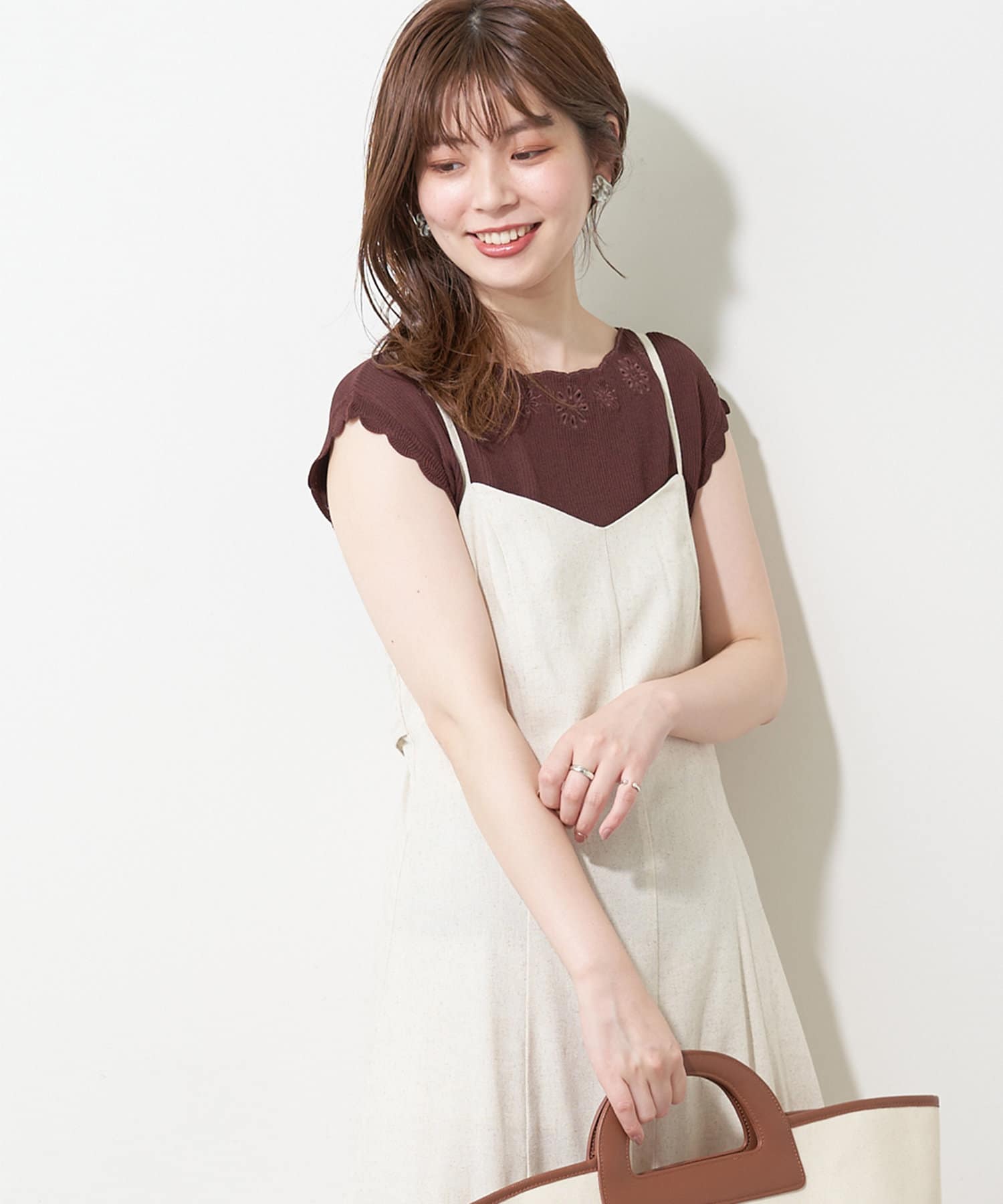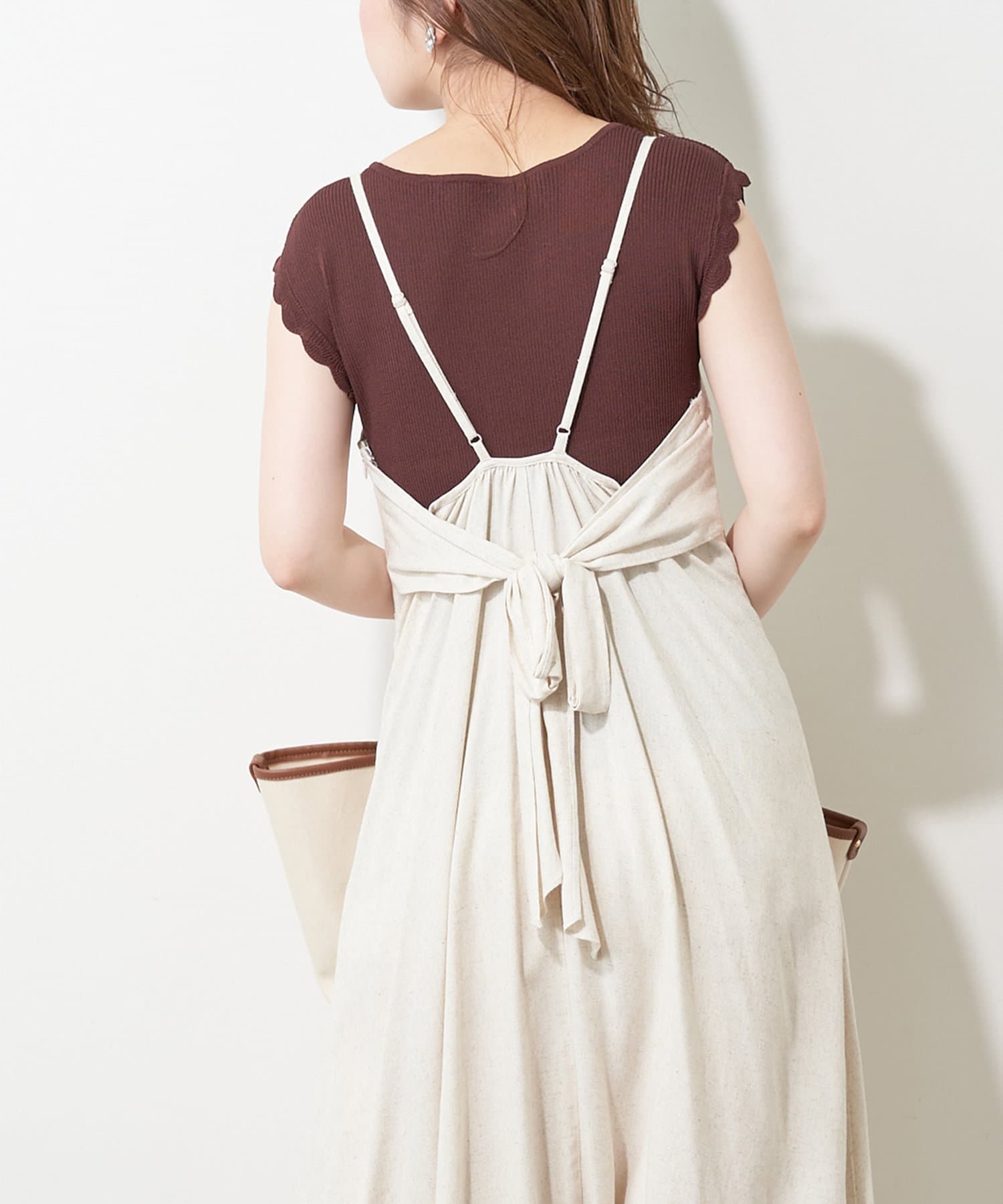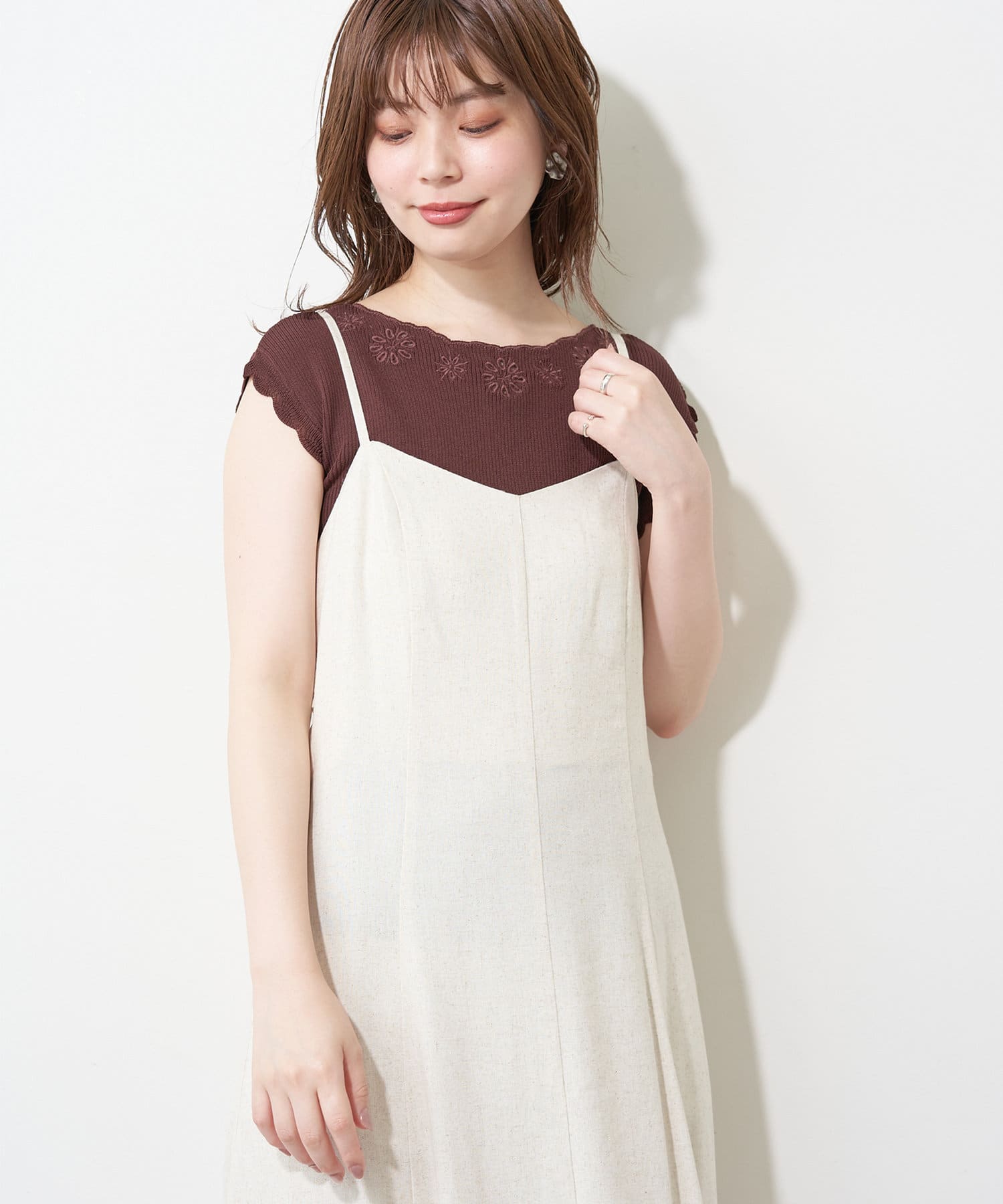 スッキリとしたシルエットなので、キャミワンピースのインナーとしても◎