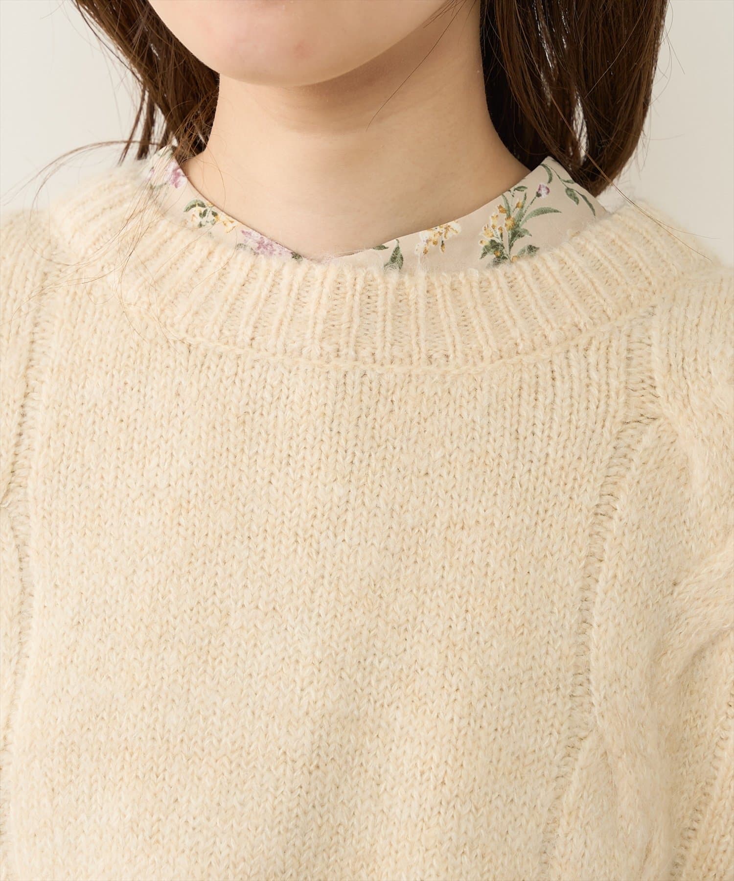 フロントにざっくりと編み込みを施した生地は、やや毛足の長めなふんわりとした素材を使用し、