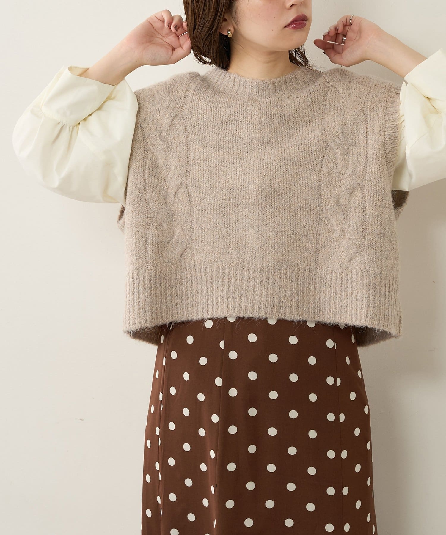 袖にディテールのあるブラウスやワンピースにレイヤードして頂いたり、
