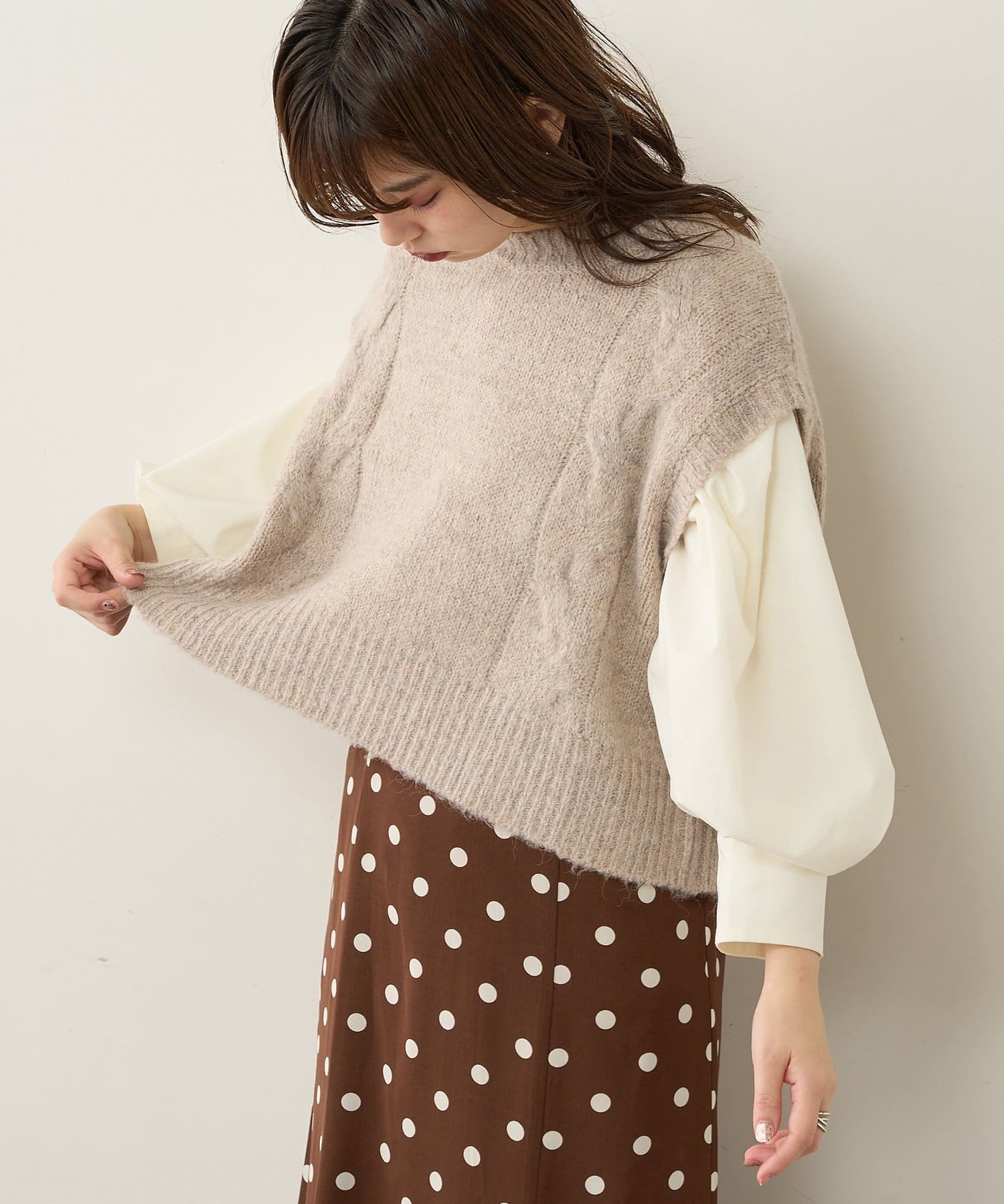 TOP > natural couture > レディース > トップス > ニット/セーター > 【WEB限定】バックボタンデザインほんわりベスト