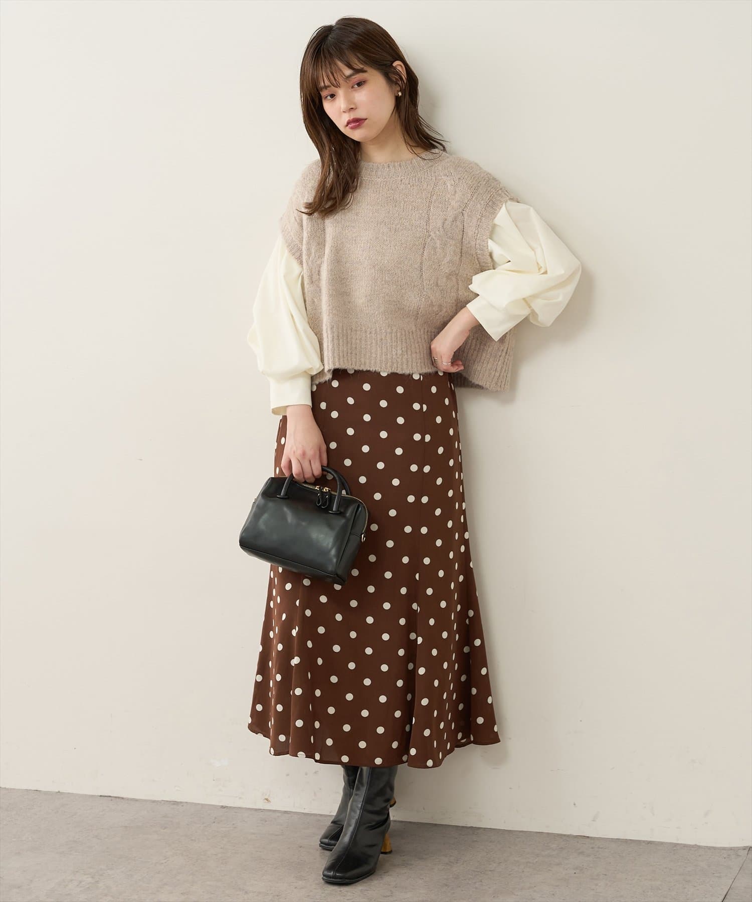 ブラウスにレイヤードしやすいよう工夫しました。