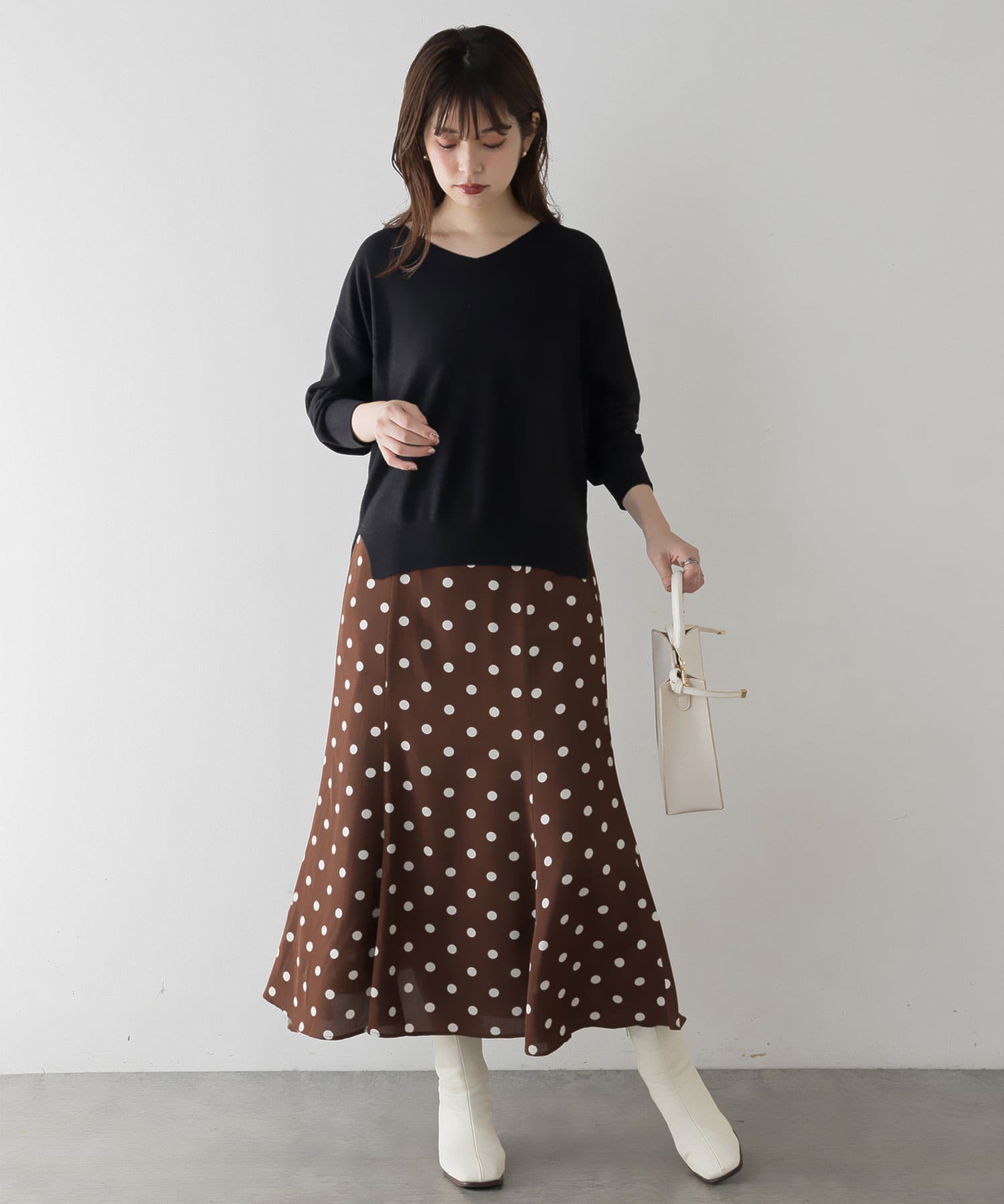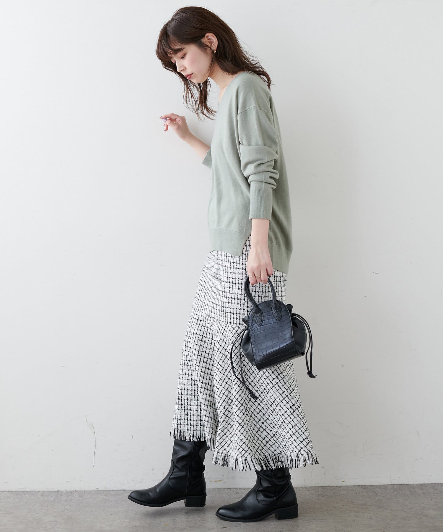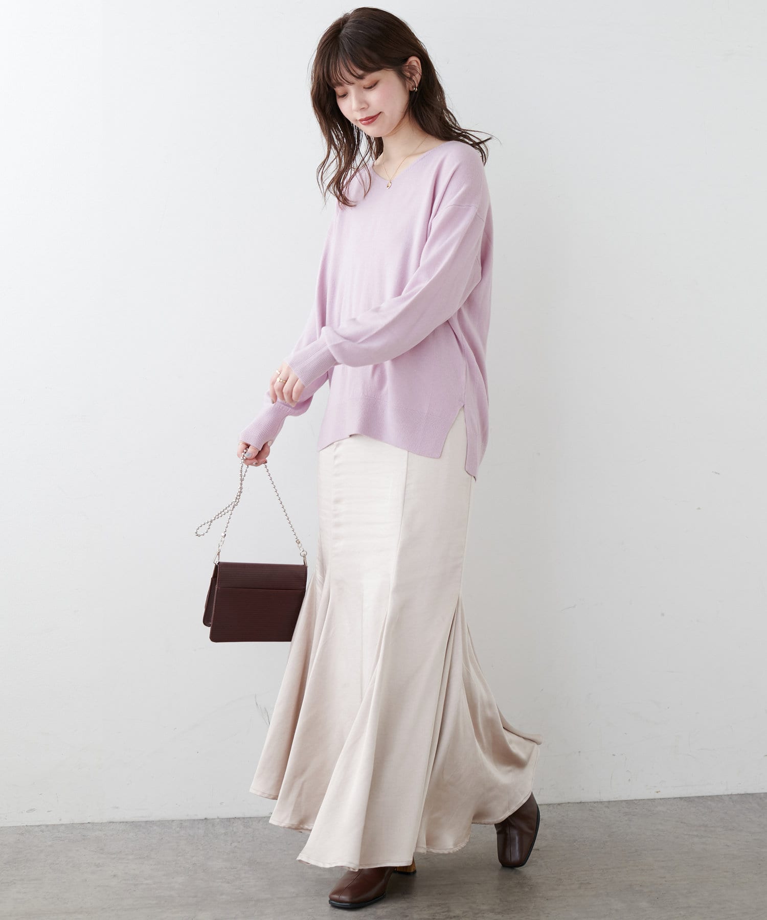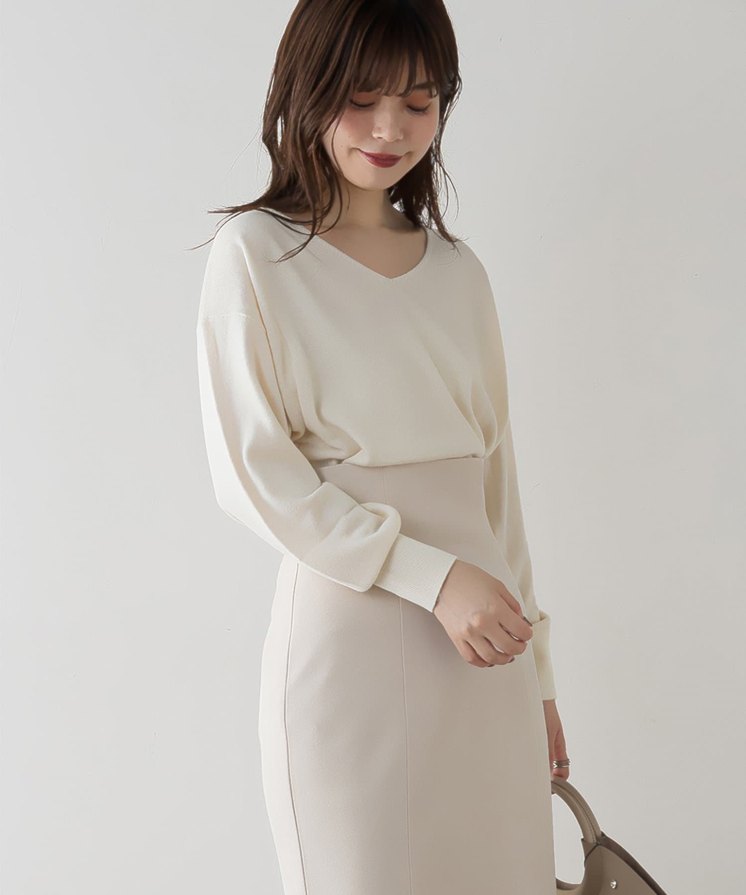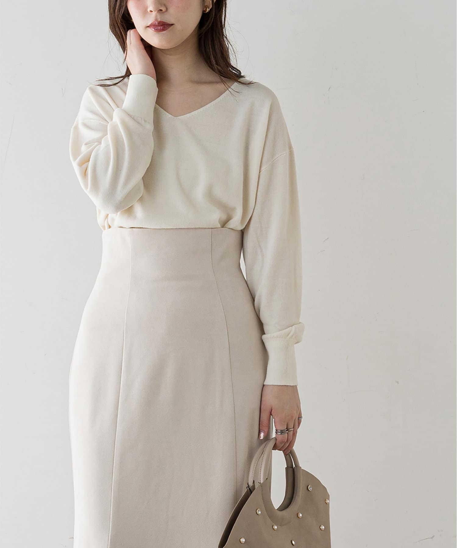 厚過ぎない生地感は今季トレンドのハイウエストマーメイドスカートにINもしやすくオススメです。