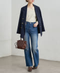 衿の印象が女性らしいので、メンズライクなデニムとのMIXコーデもおすすめ。