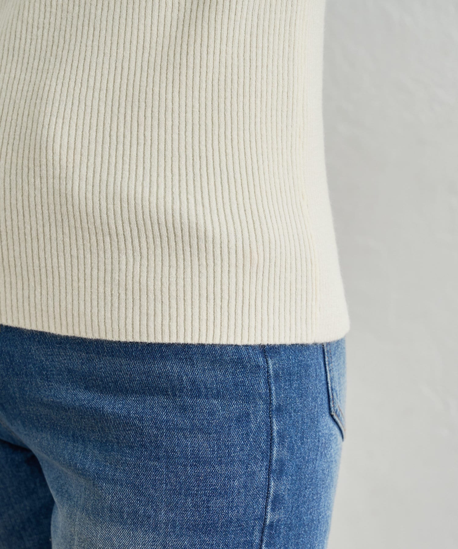程よくフィットする肌当たりのソフトなニットし、細かめのリブピッチを使用。