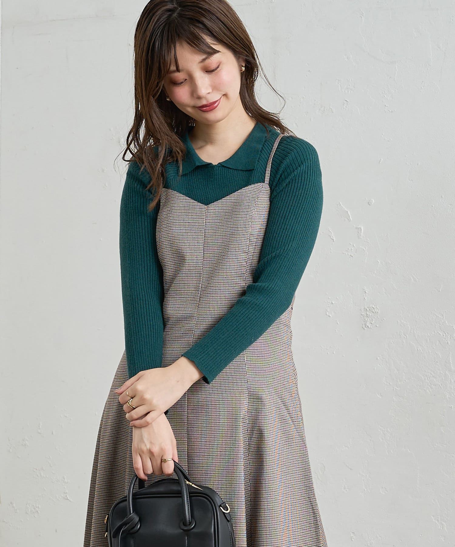 ニット素材ですがすっきりシルエットなので、通勤スタイル・休日スタイルとデイリーに使える万能アイテムです。