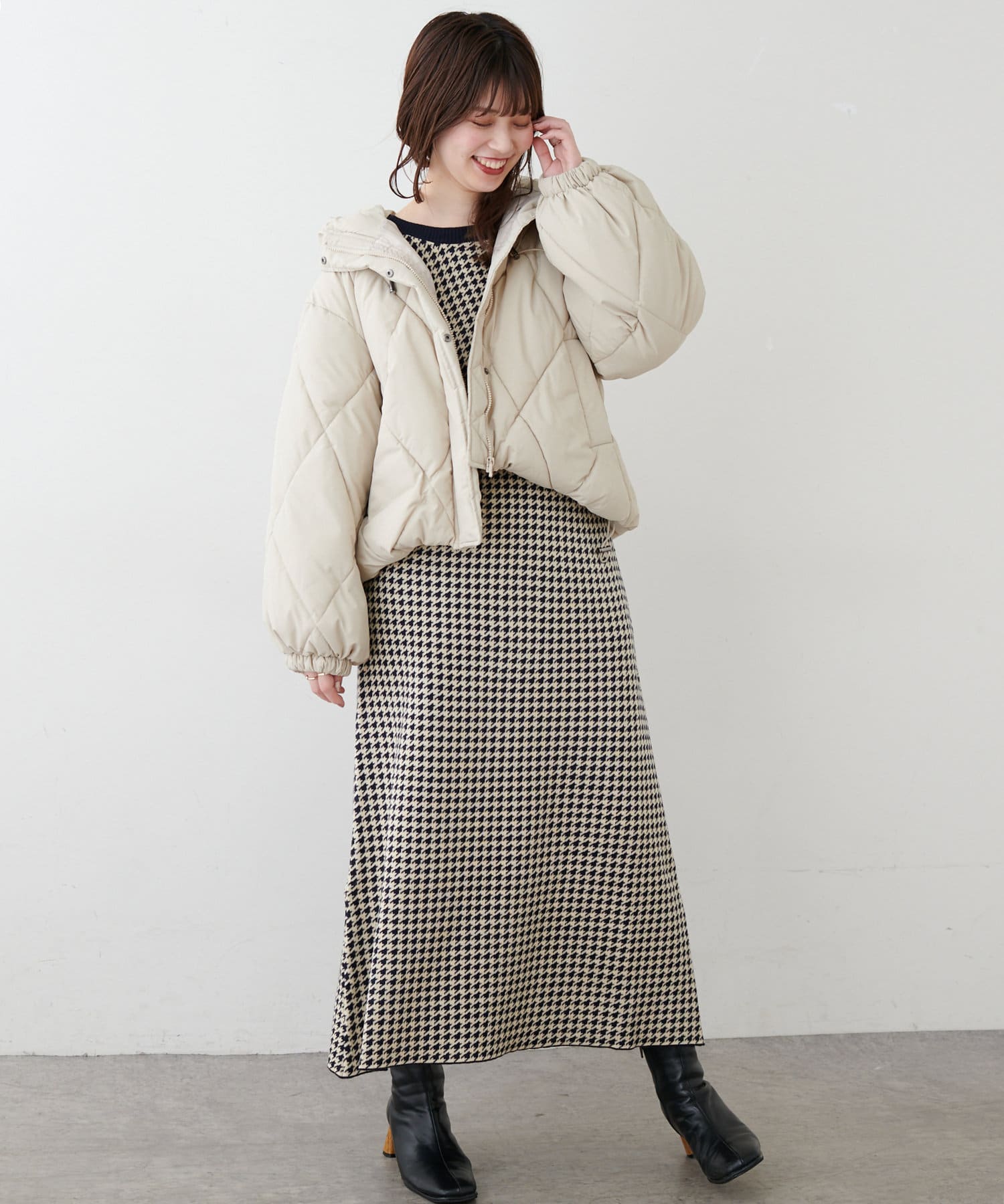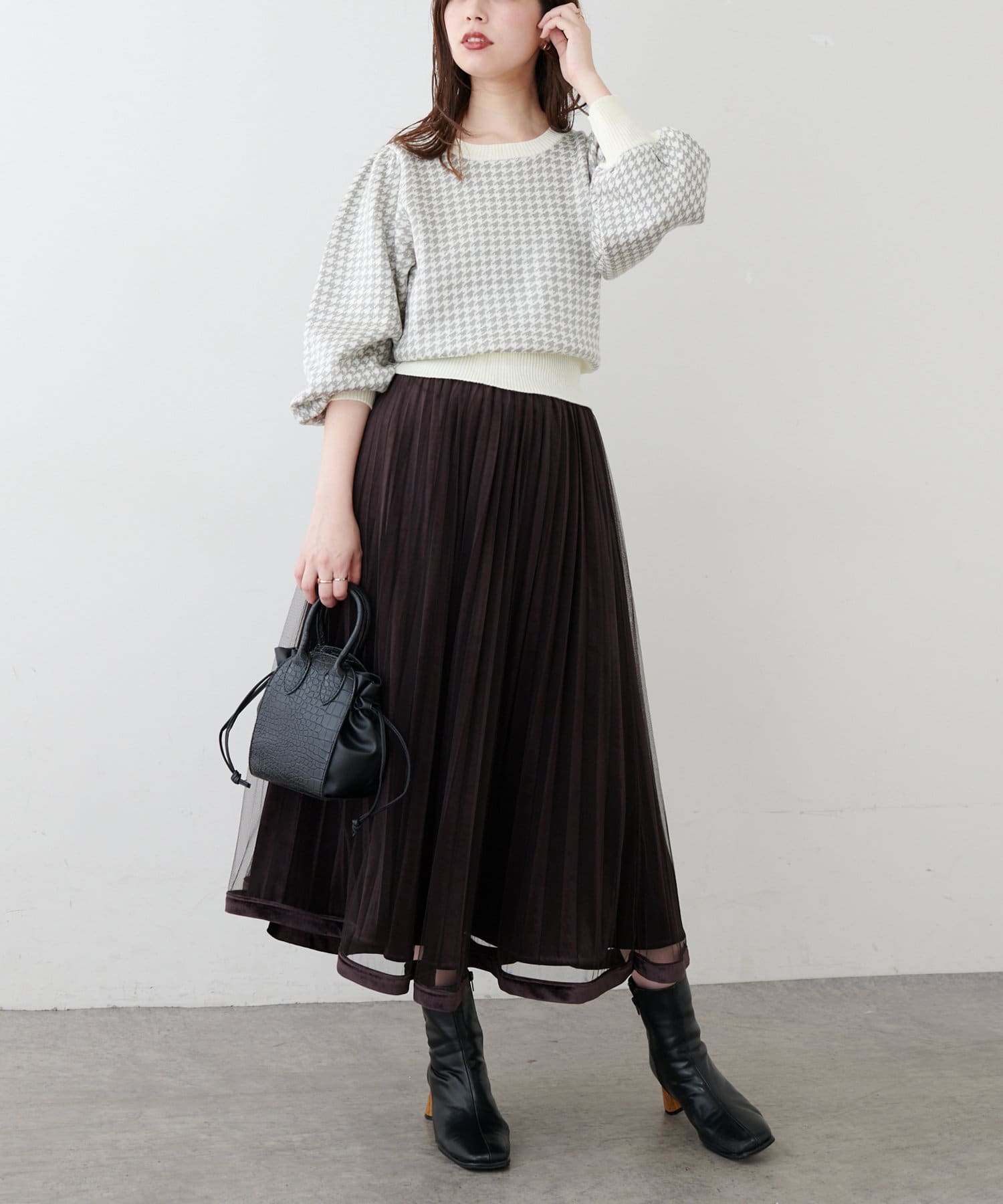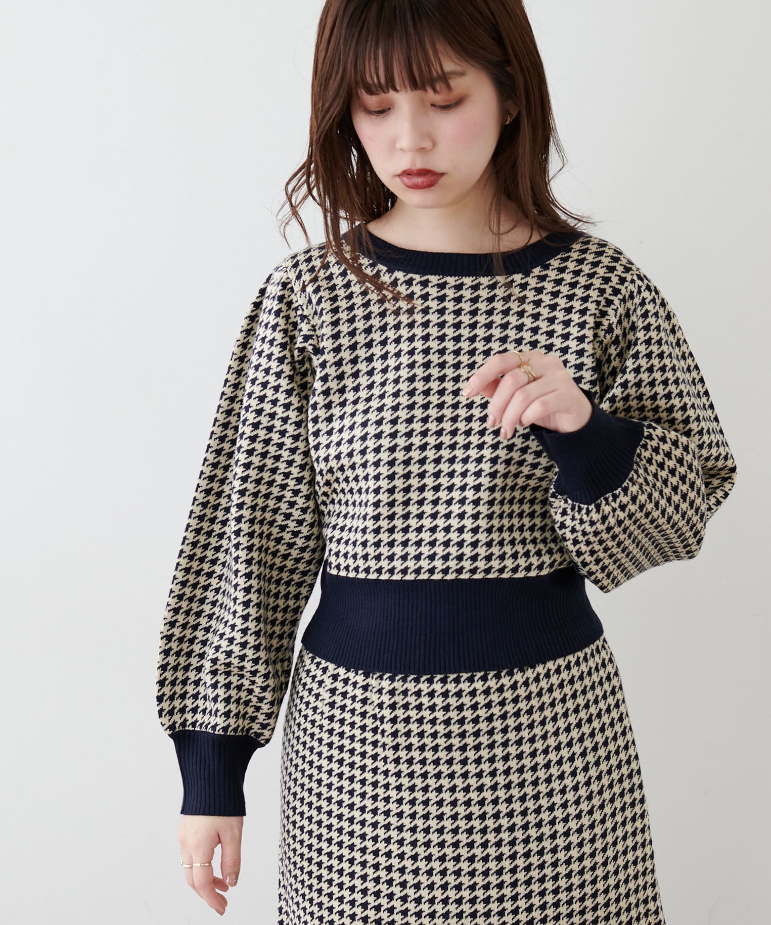 348400580 千鳥格子ダブルジャガードニットスカートとセットアップでもお召し頂けます。