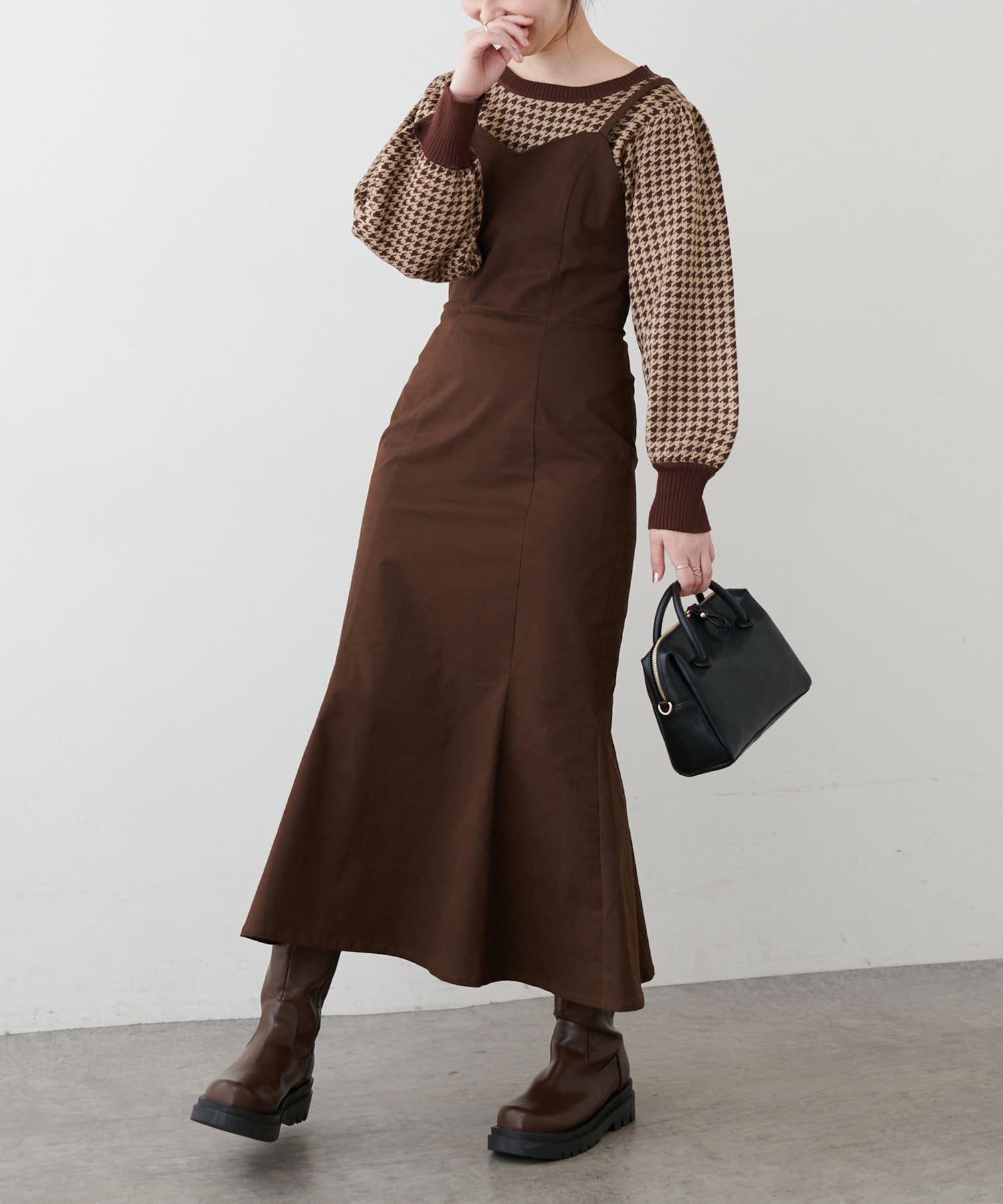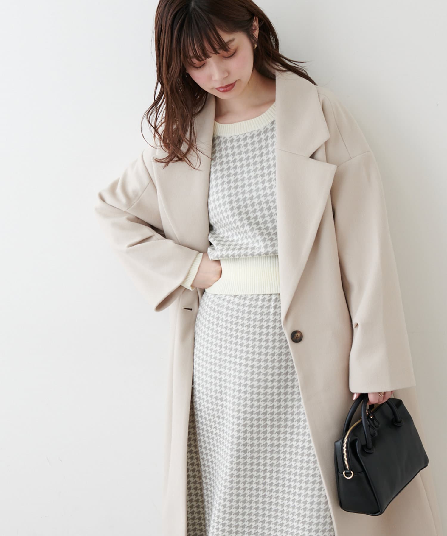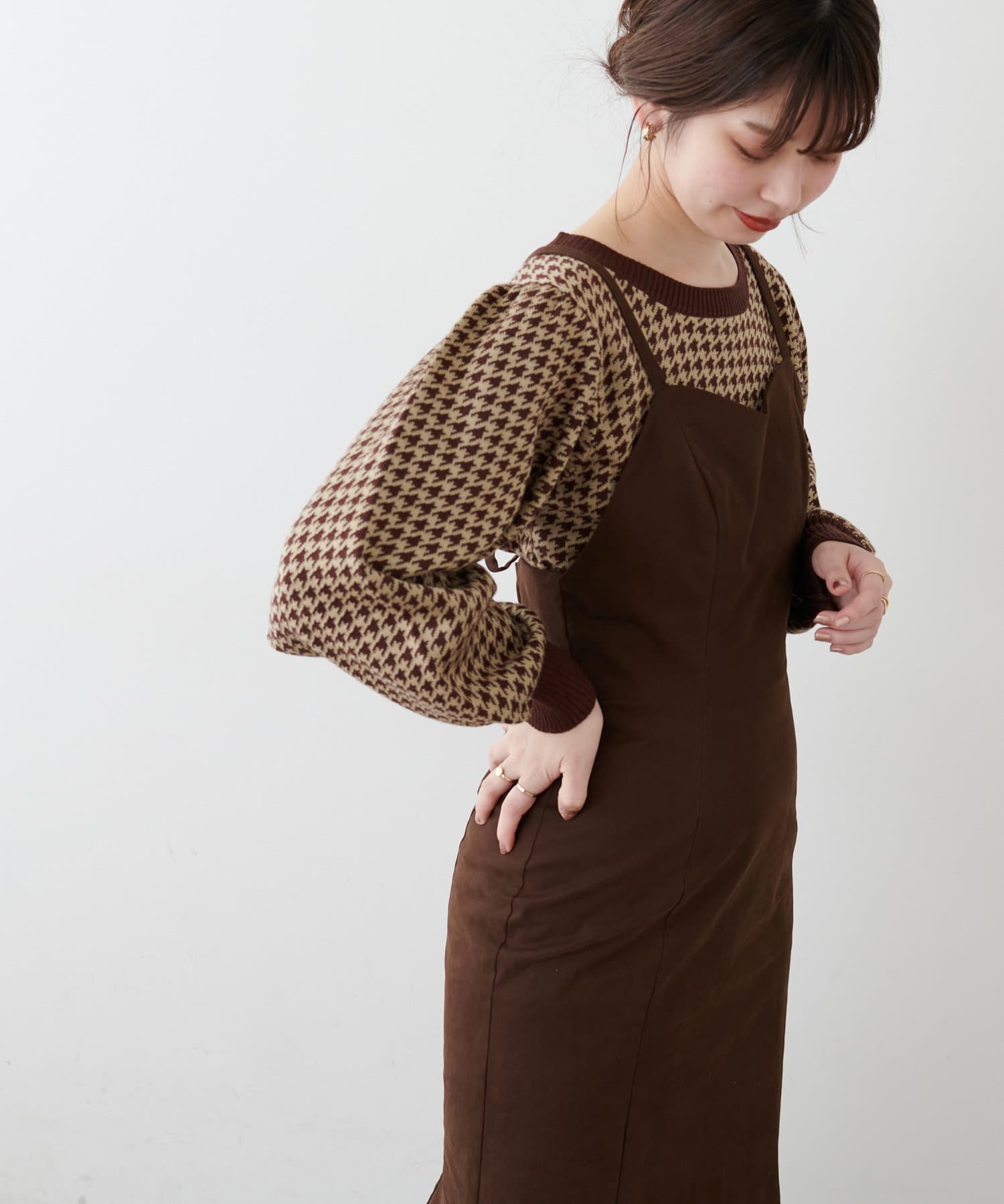 348400580 千鳥格子ダブルジャガードニットスカートとセットアップでもお召し頂けます。
