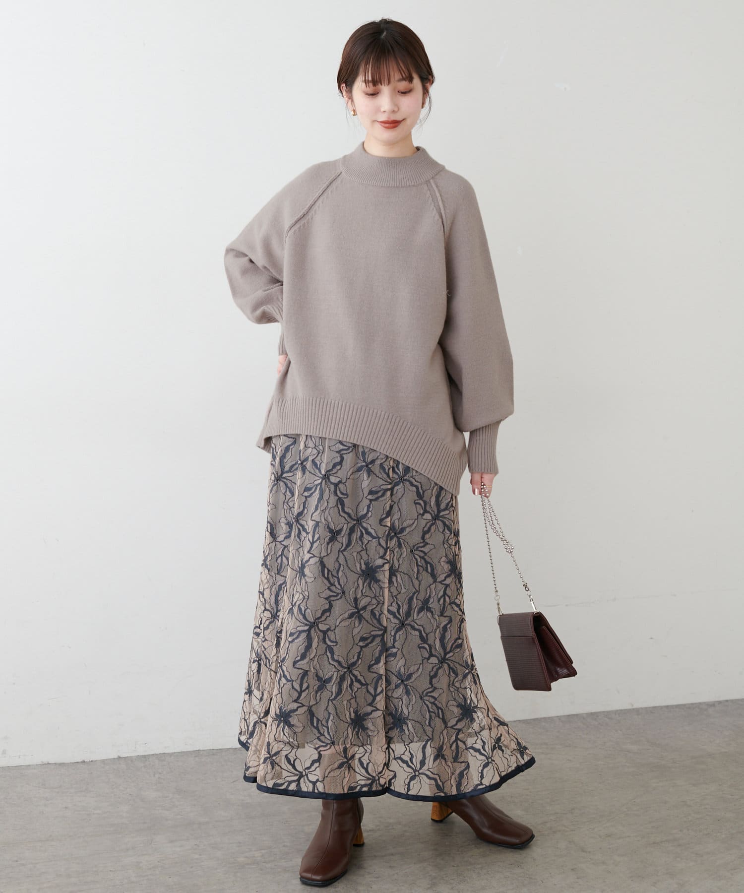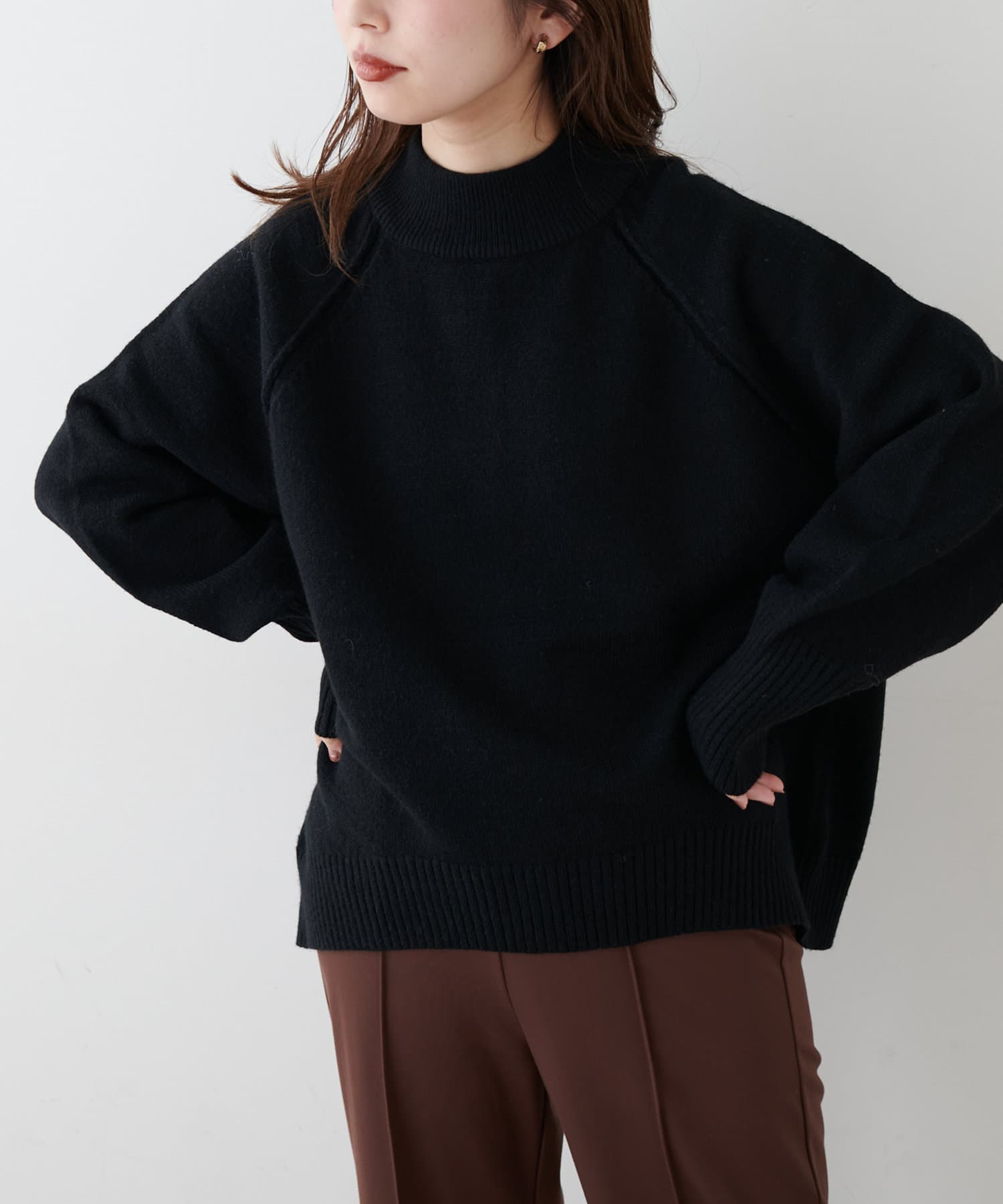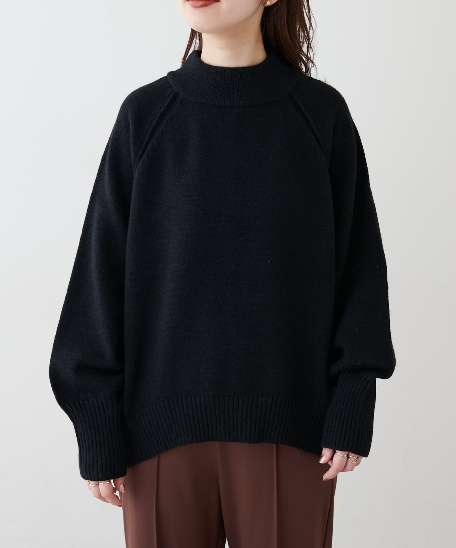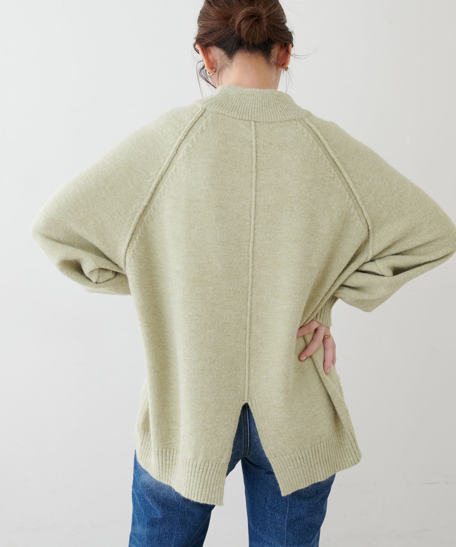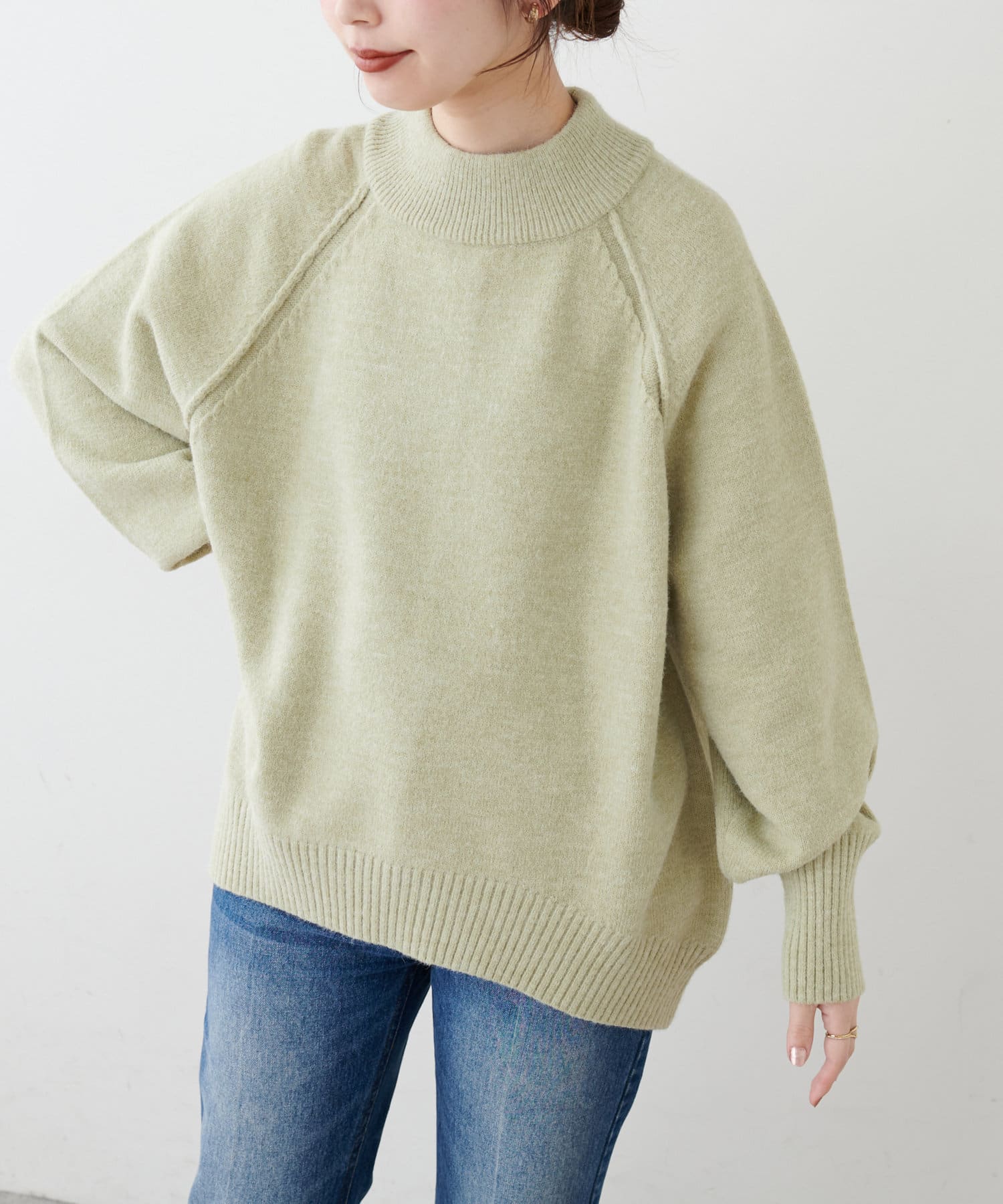 ラグランスリーブにワイドな身幅のデザインで、ゆるっとしたシルエットがポイント。