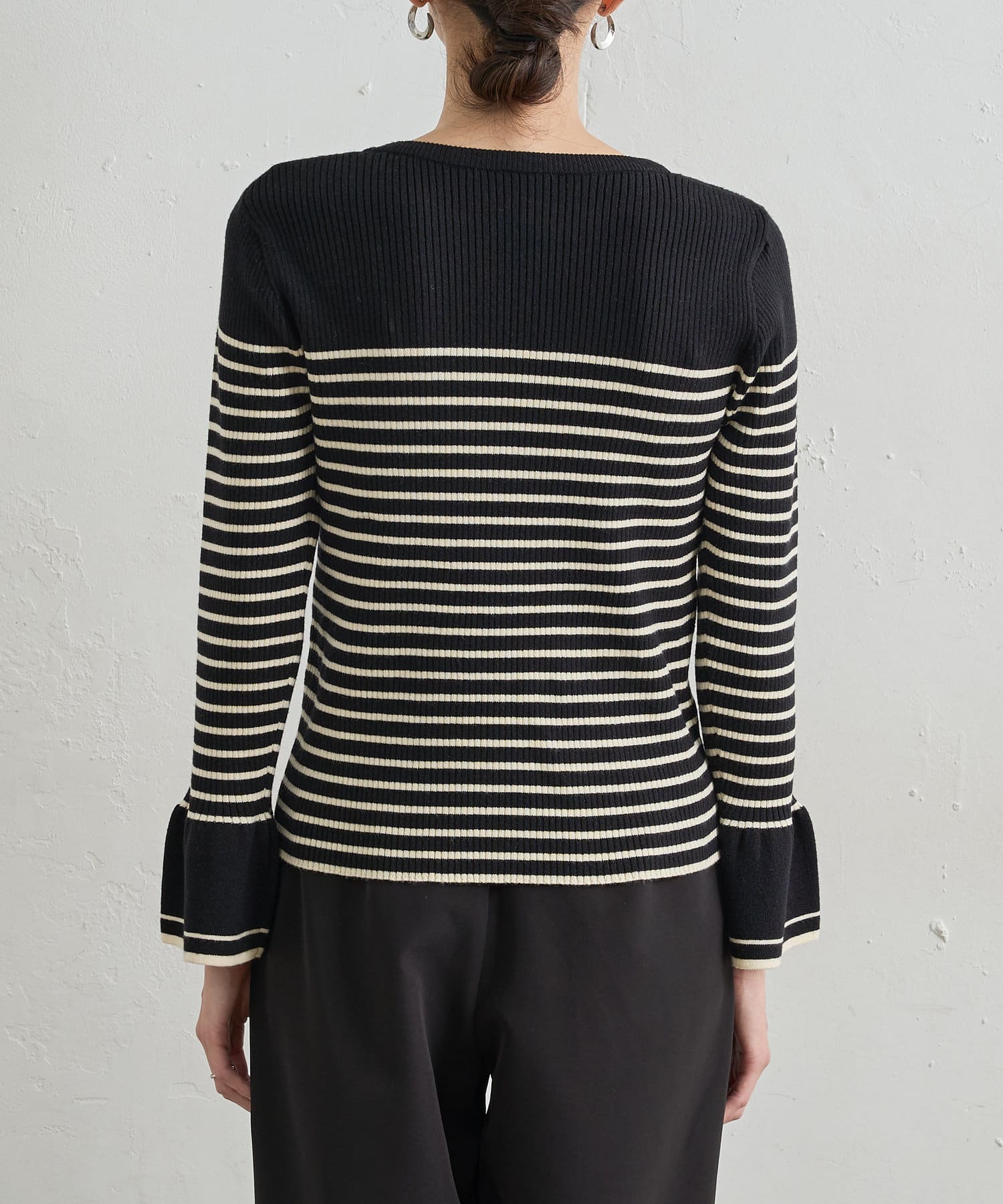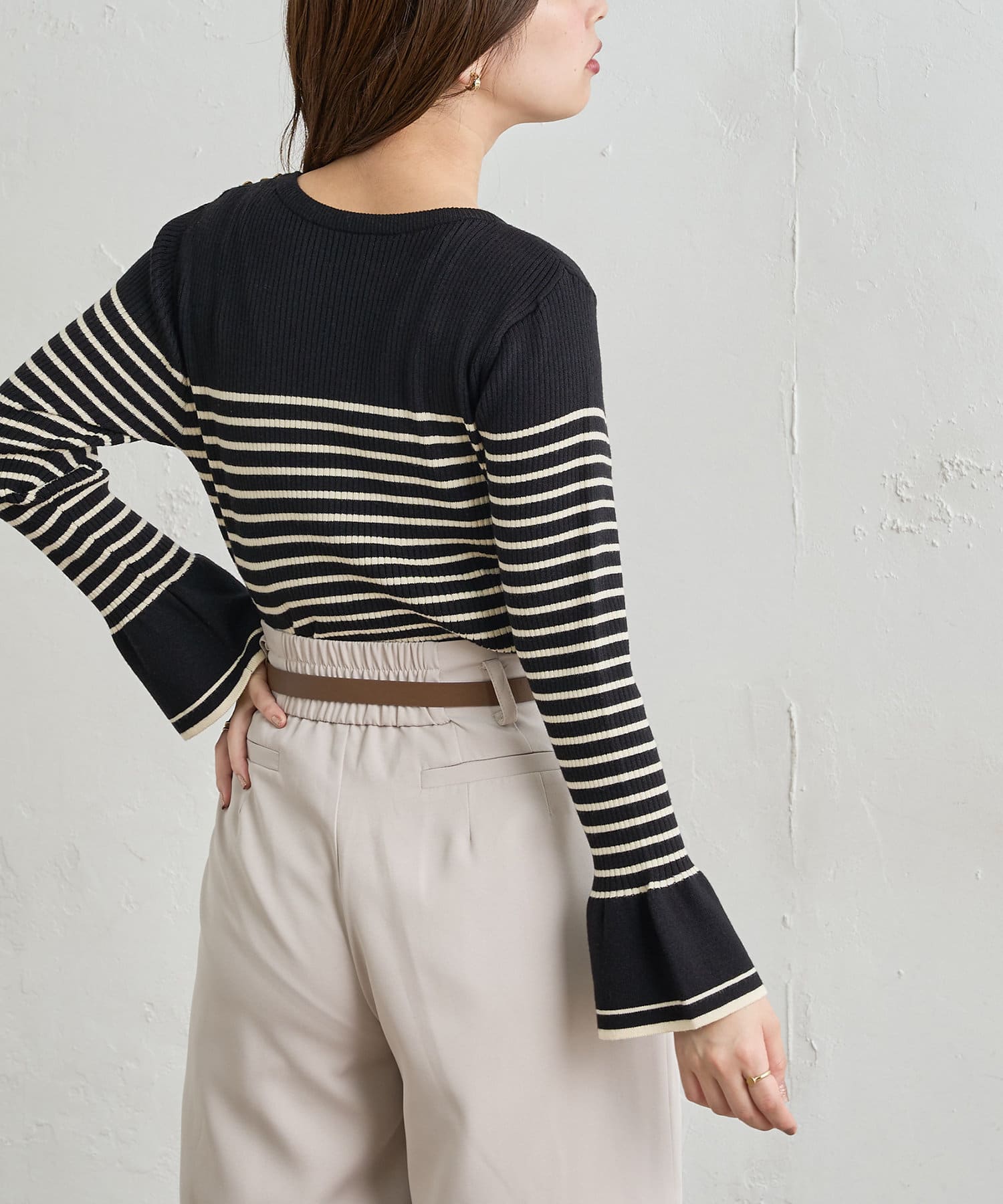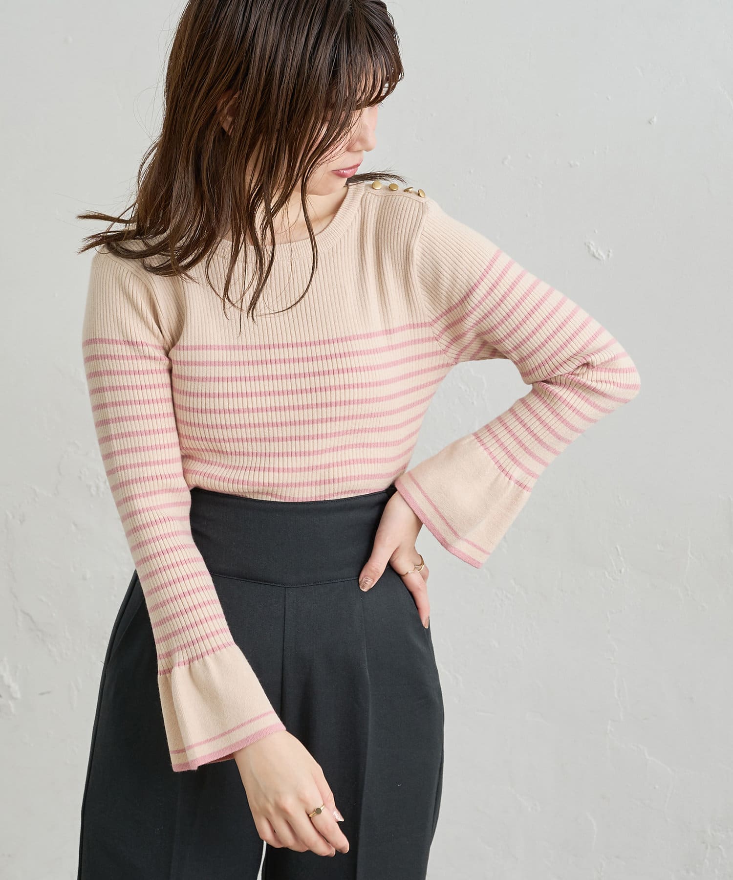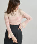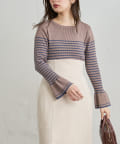 フレア袖が大人レディな雰囲気に◎配色リブニット