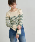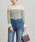 • natural couture(ナチュラルクチュール) 【WEB限定カラー有り】袖口フレア配色リブニット