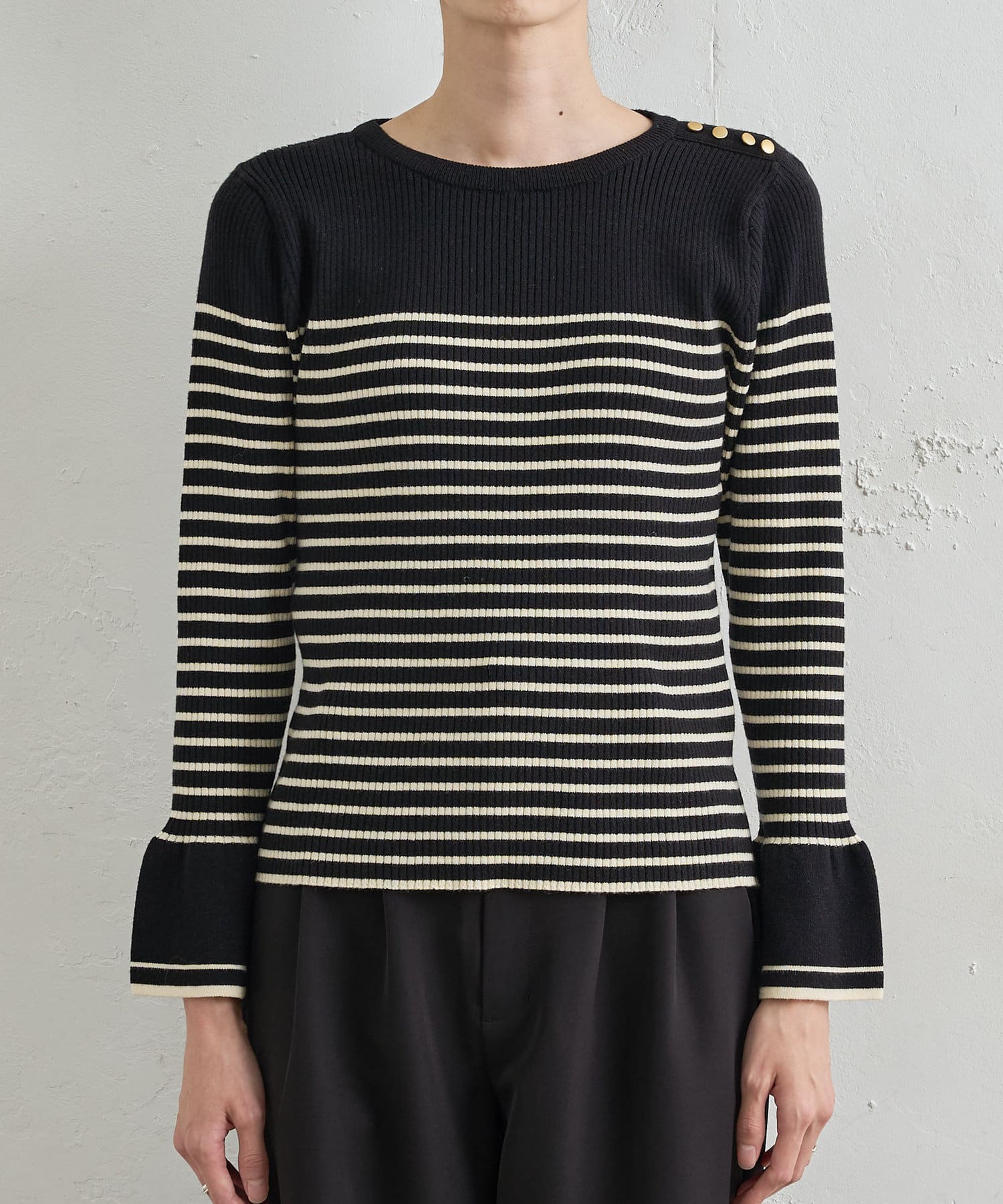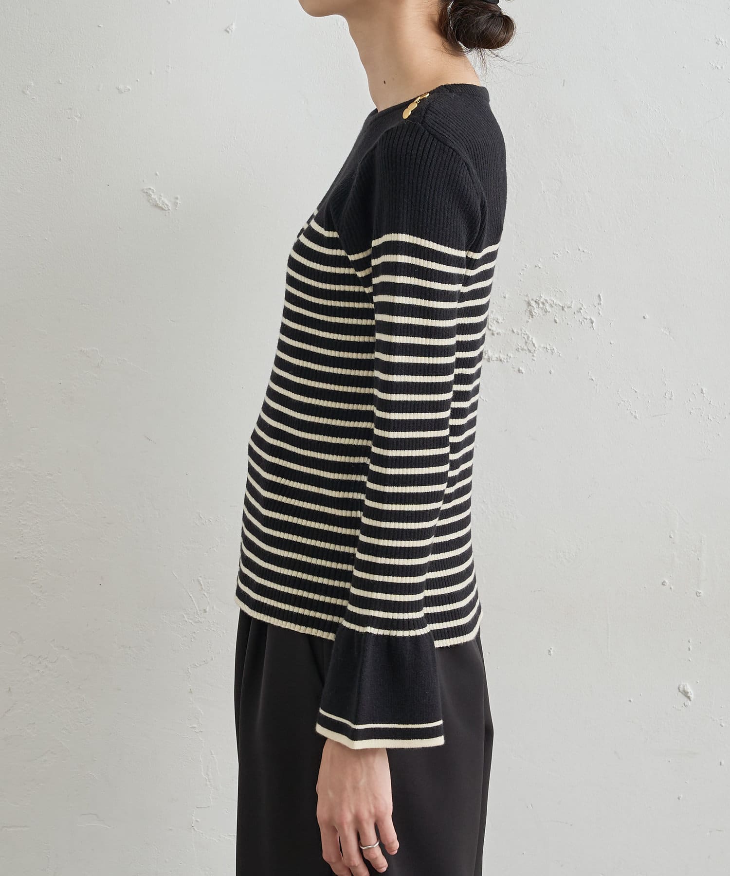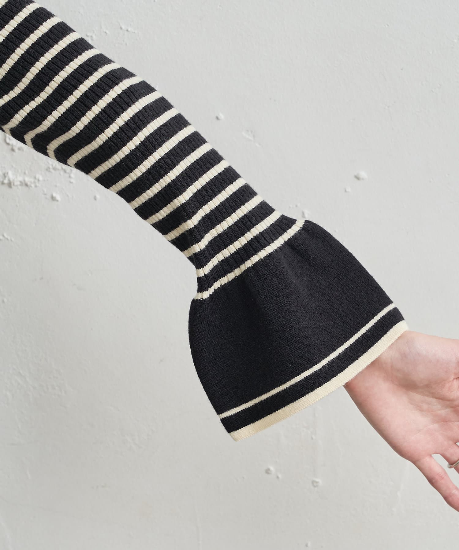 【WEB限定カラー有り】袖口フレア配色リブニット