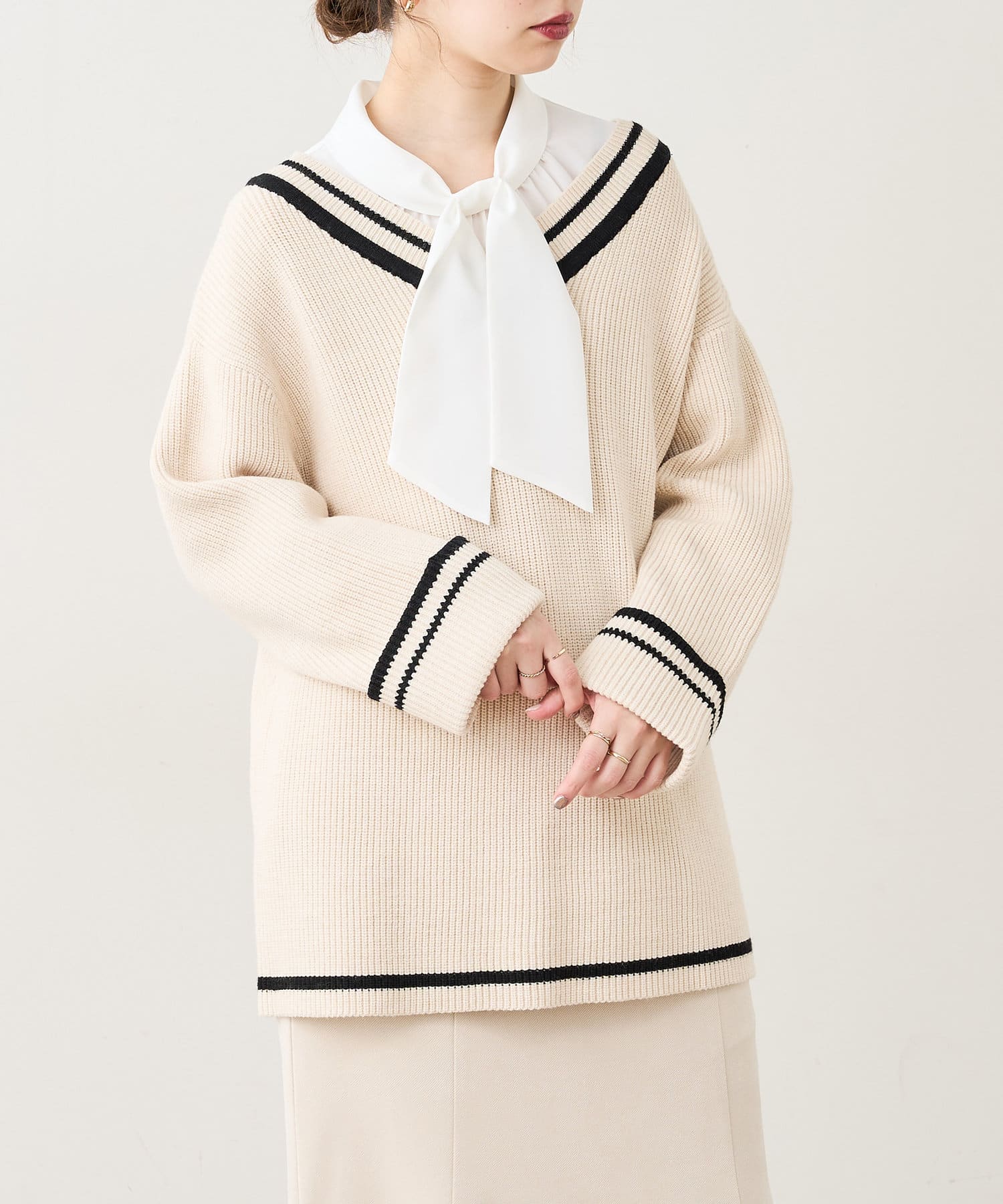 袖口ロールアップチルデンニット