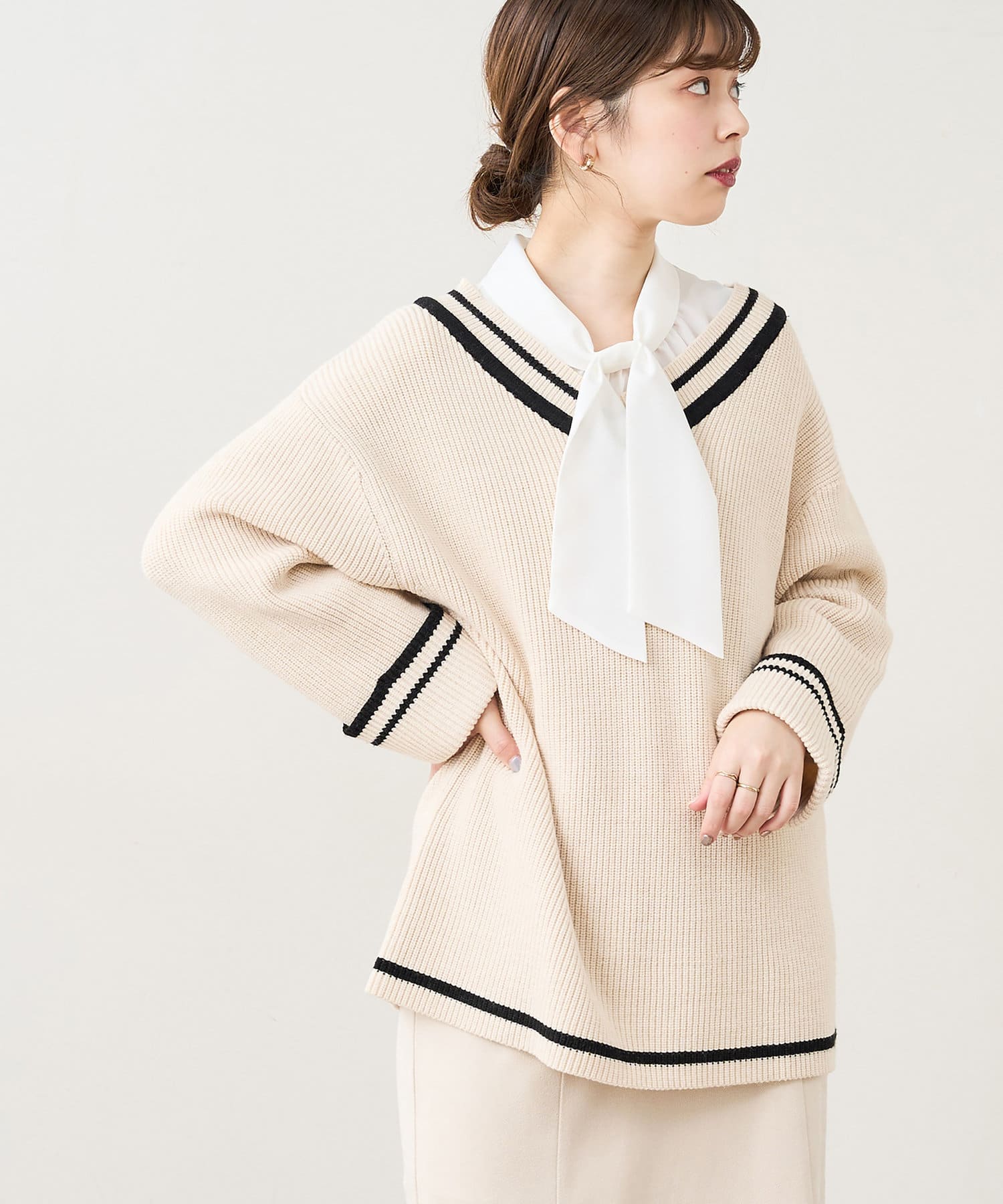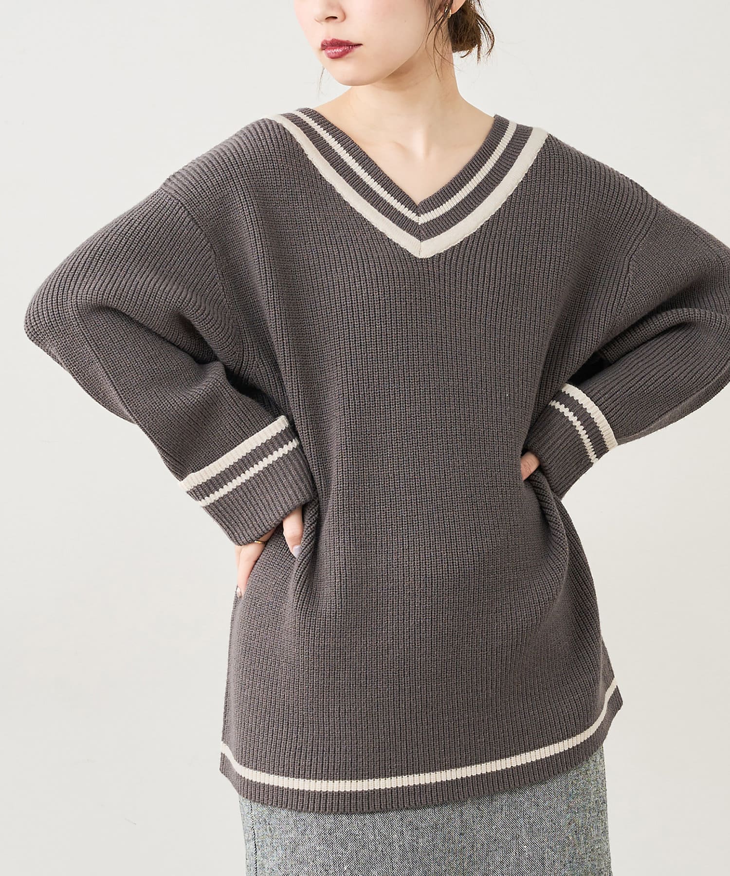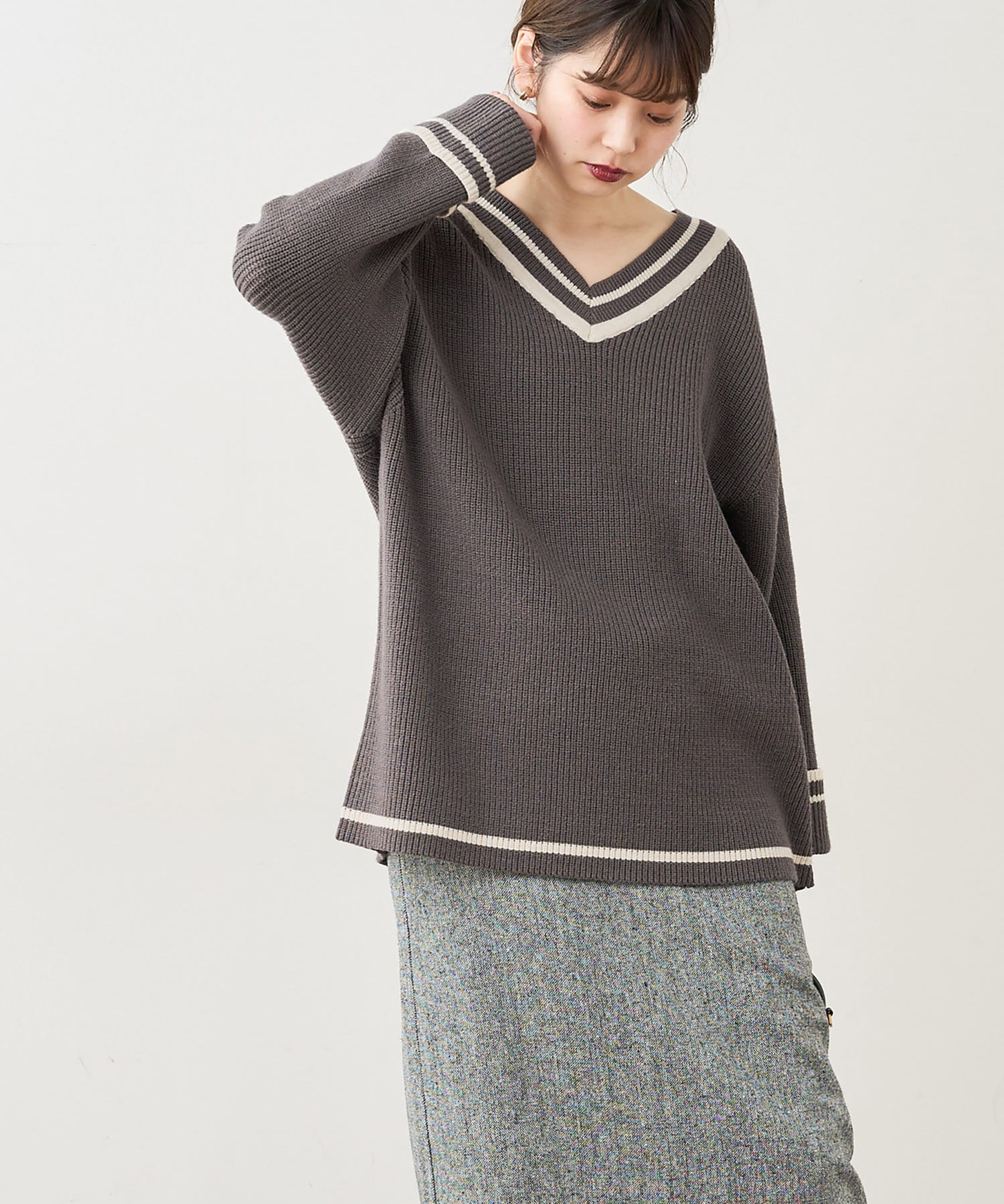 トレンドライクなチルデンニットを敢えてゆるっとした落ち感のあるシルエットに仕立てることで、