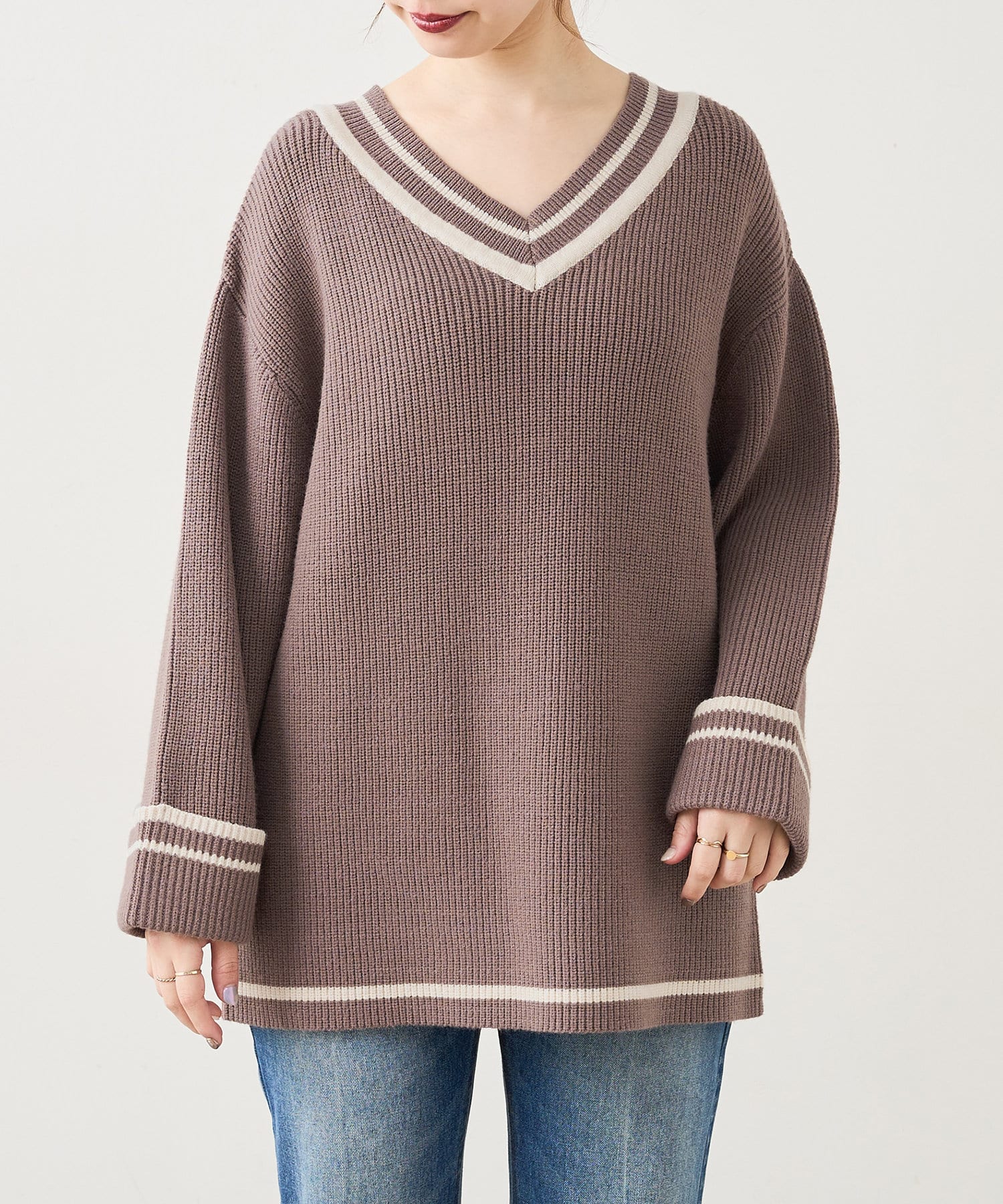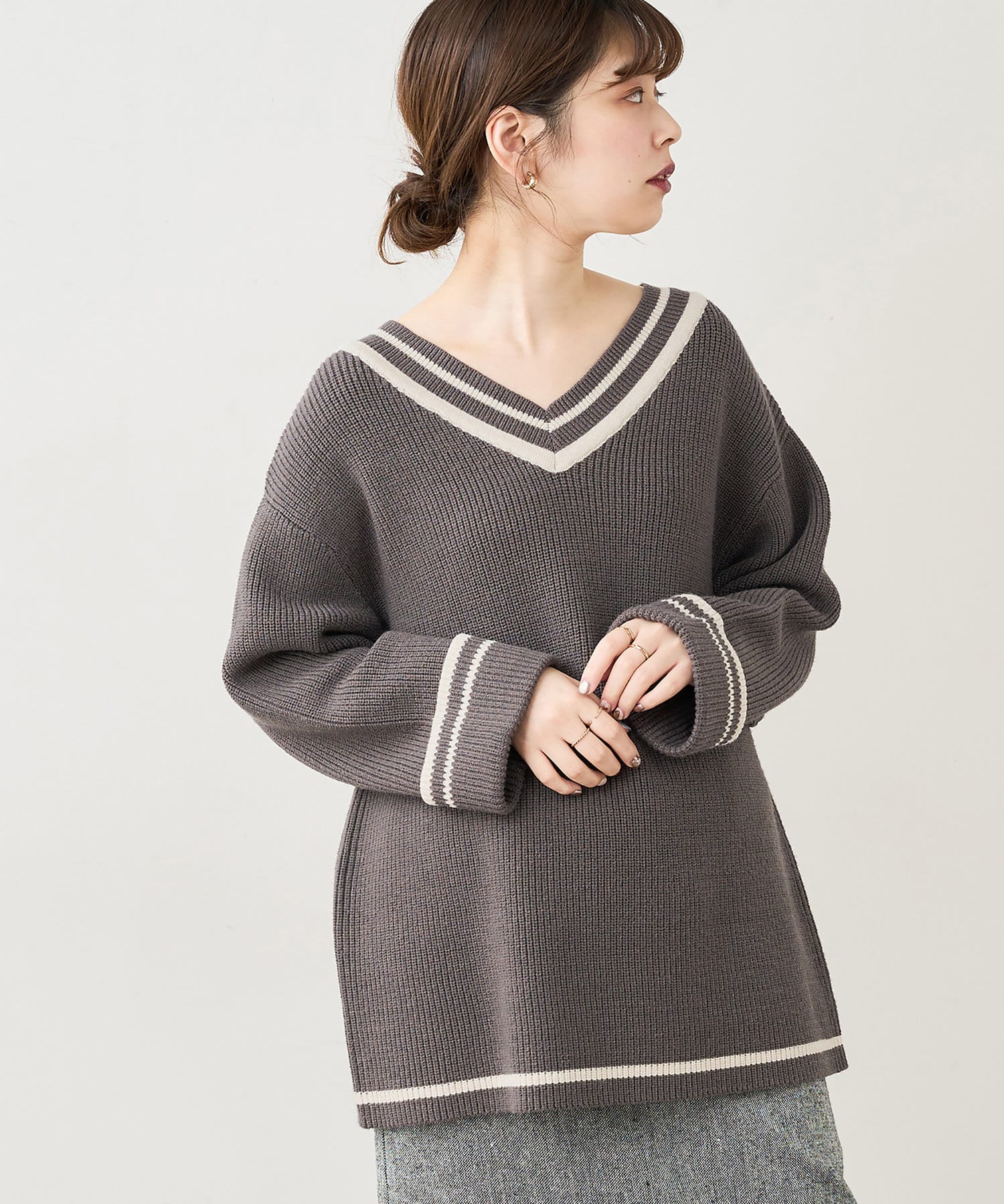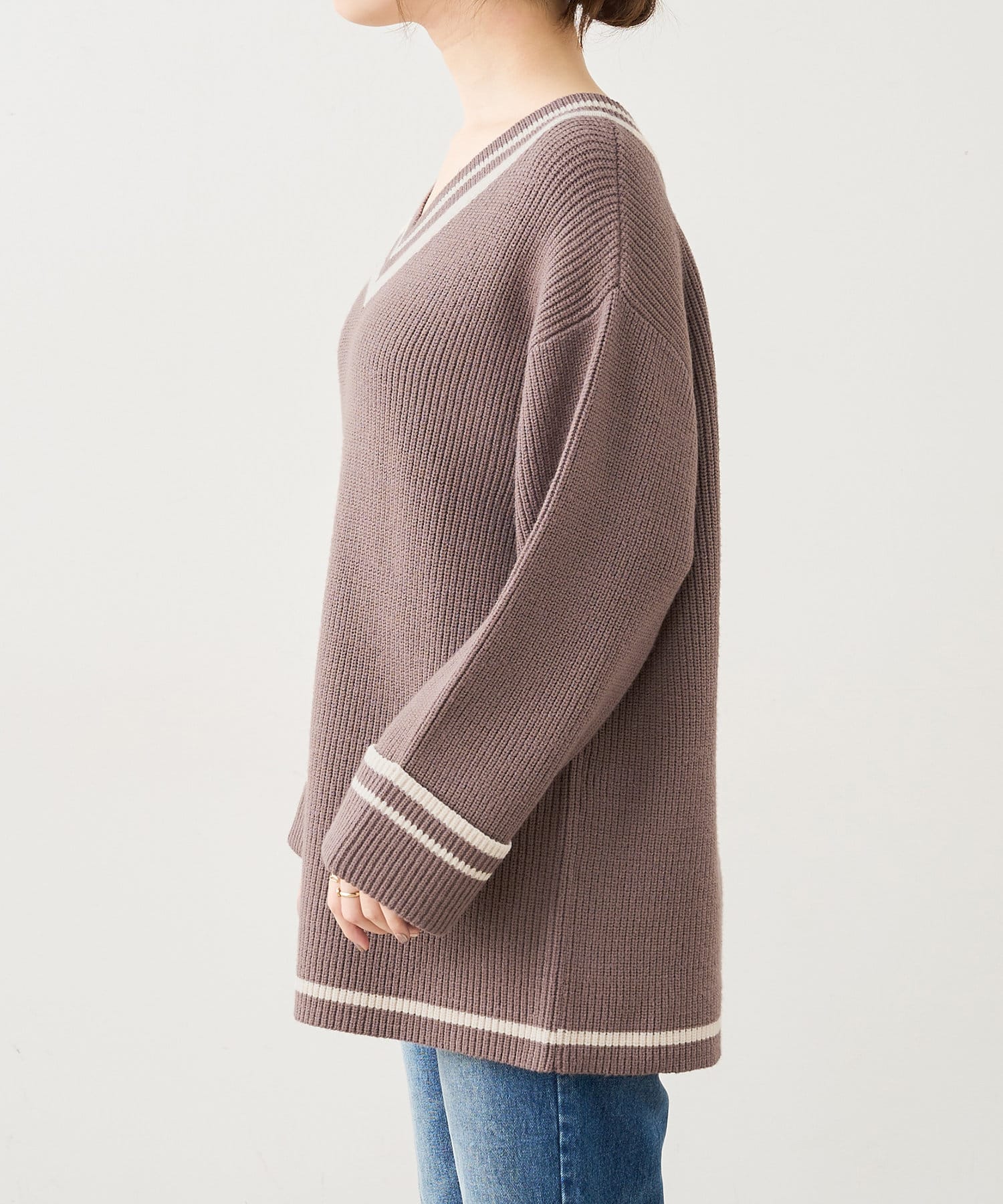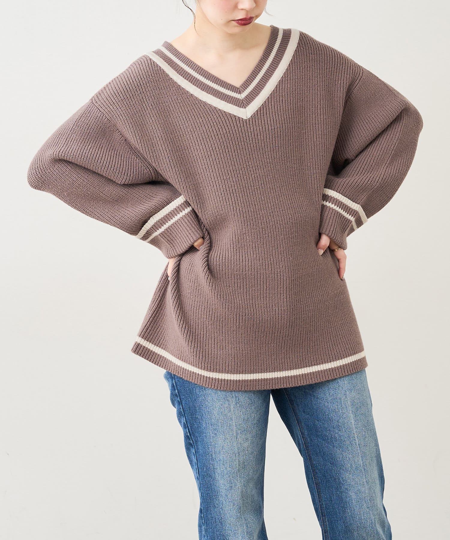 トレンドライクなチルデンニットを敢えてゆるっとした落ち感のあるシルエットに仕立てることで、
