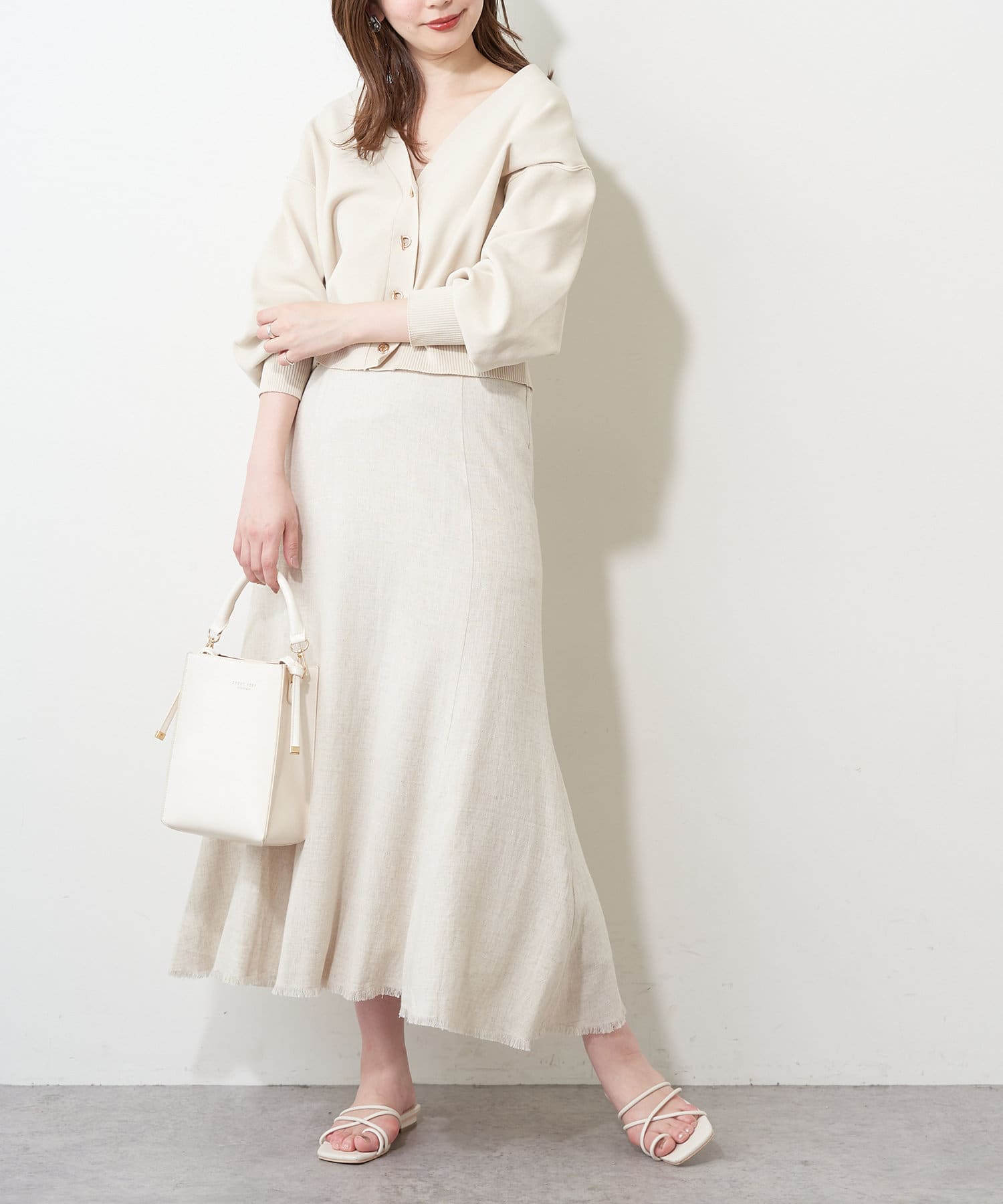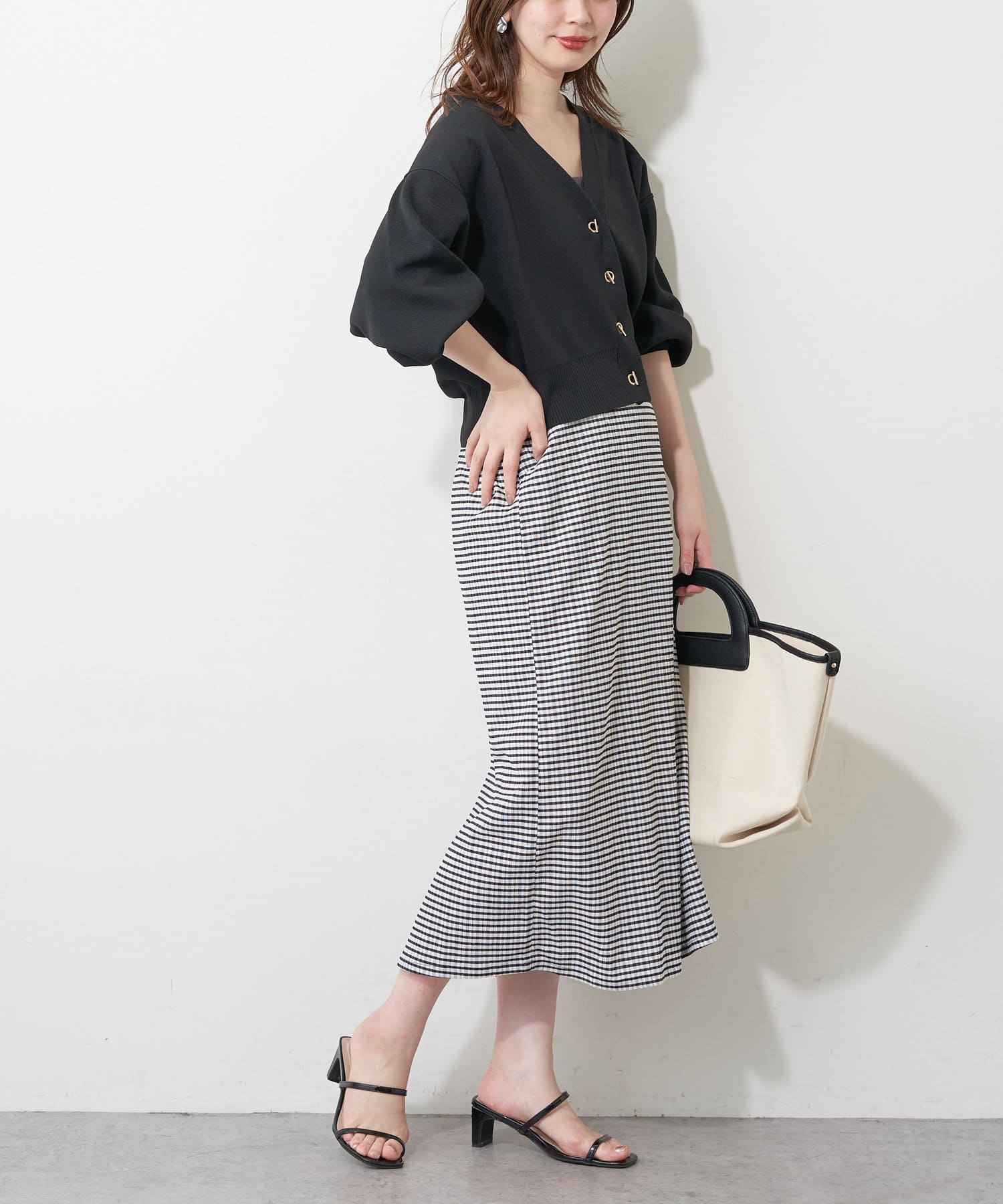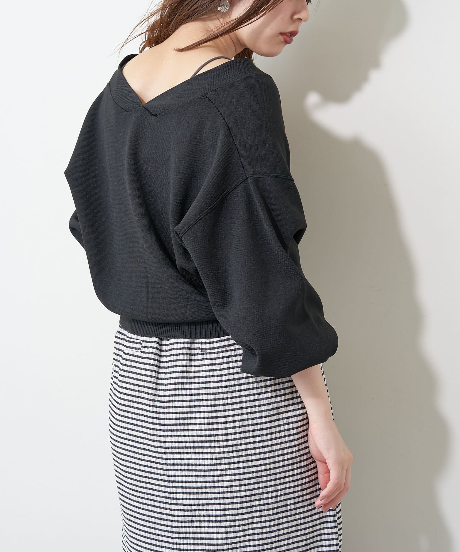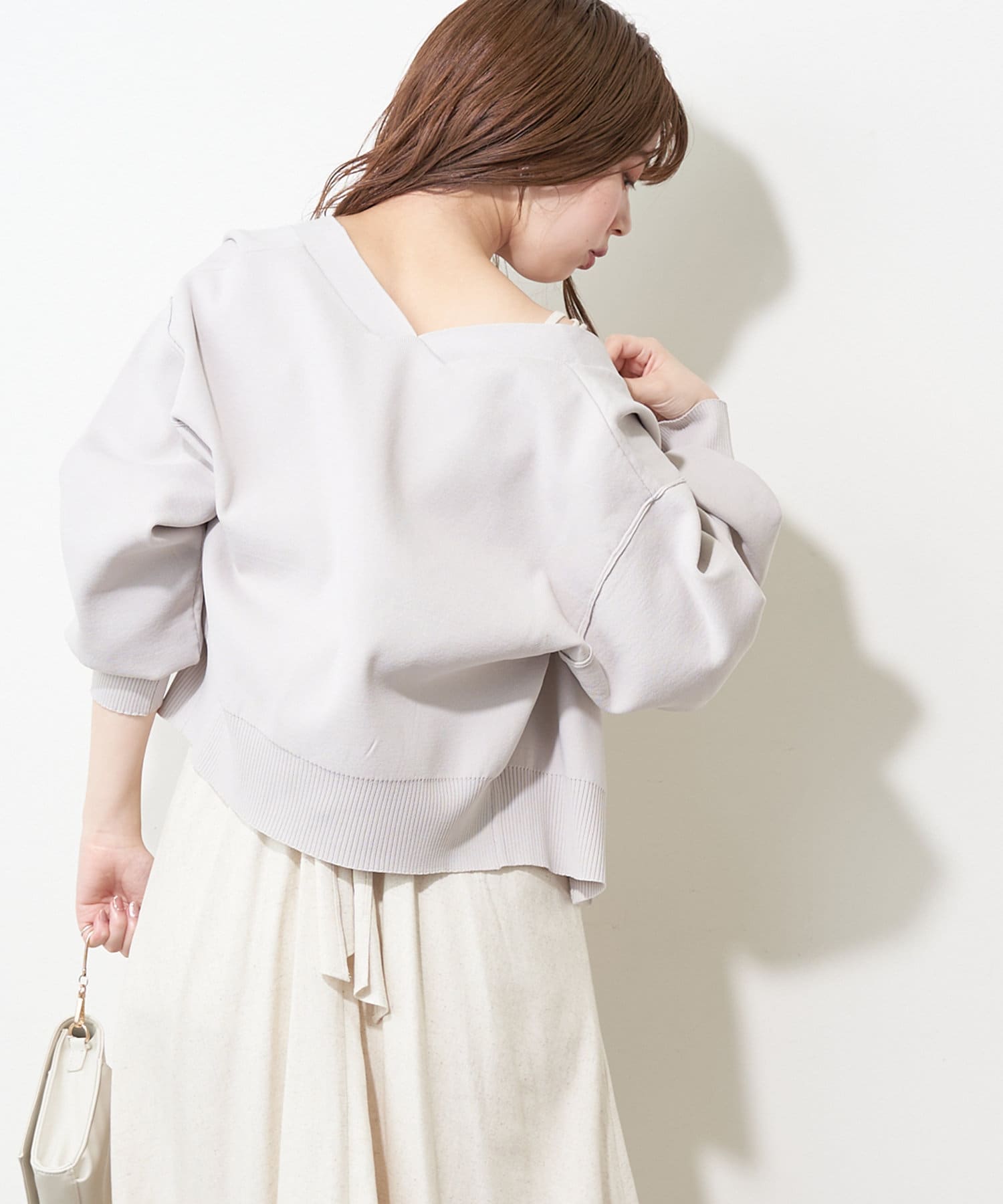 スッキリとしたキレイ見えするニットなので、オフィスからタウンまで幅広いシーンでお召頂けます。