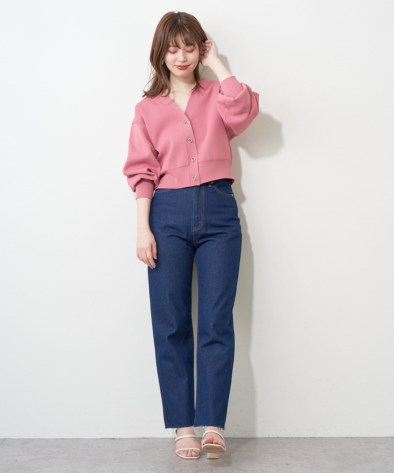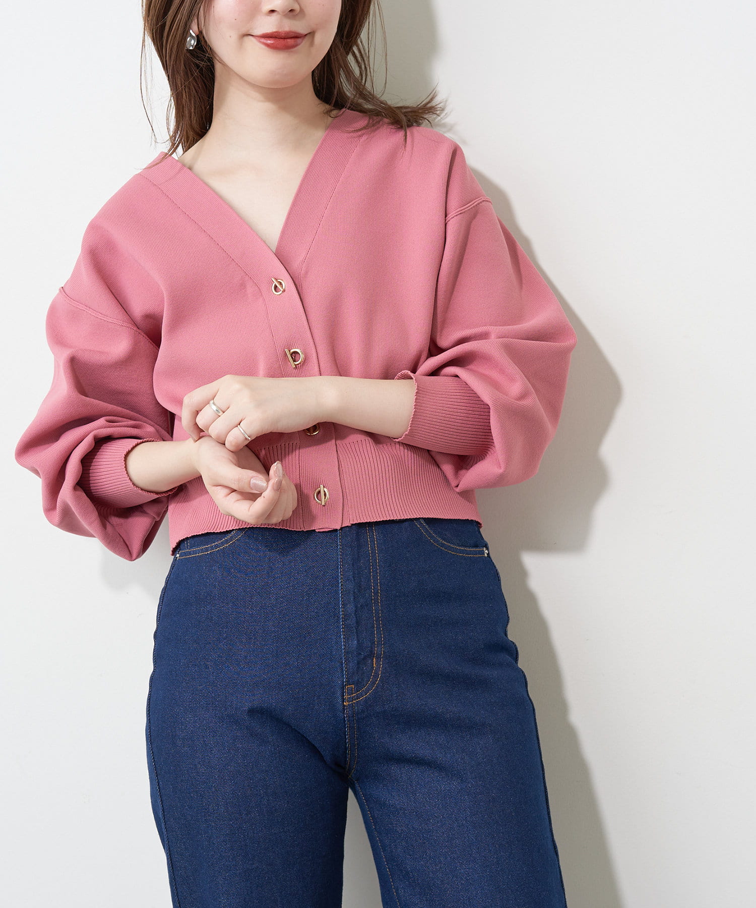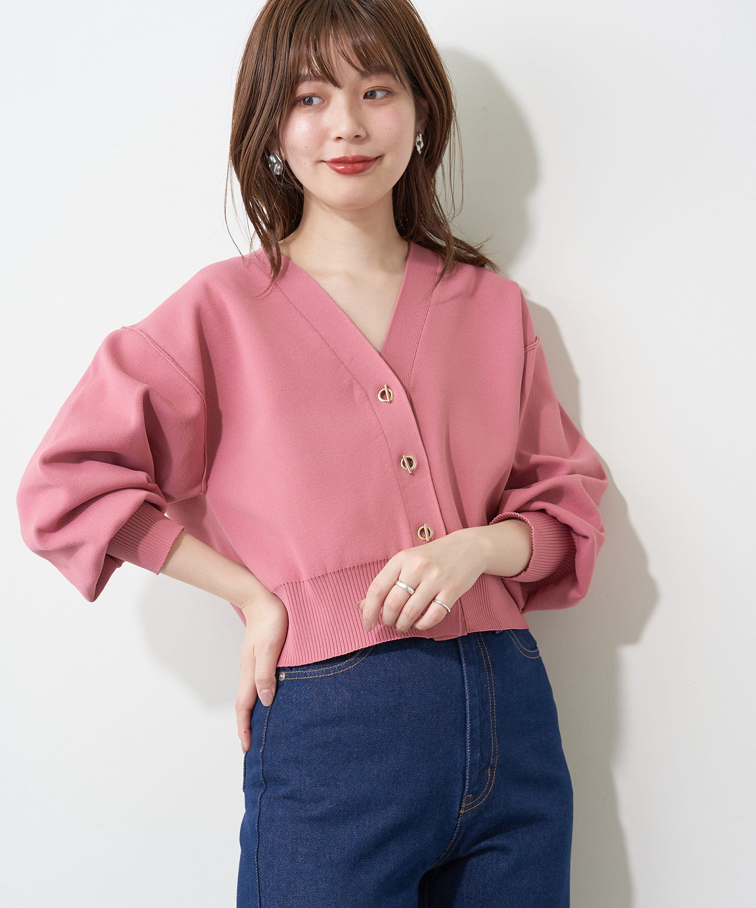 348830040【WEB限定】プチプラハトメバー釦おしゃれカーデ