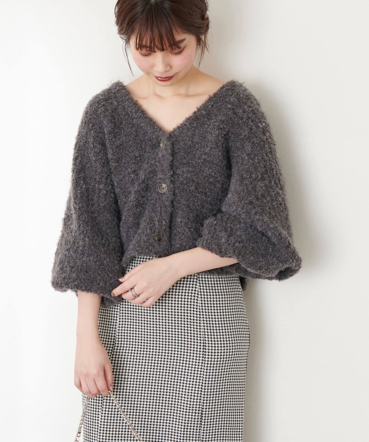 ふんわりMIXニットショートカーデ