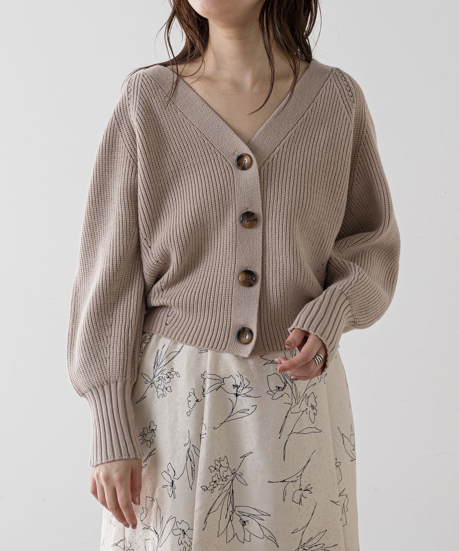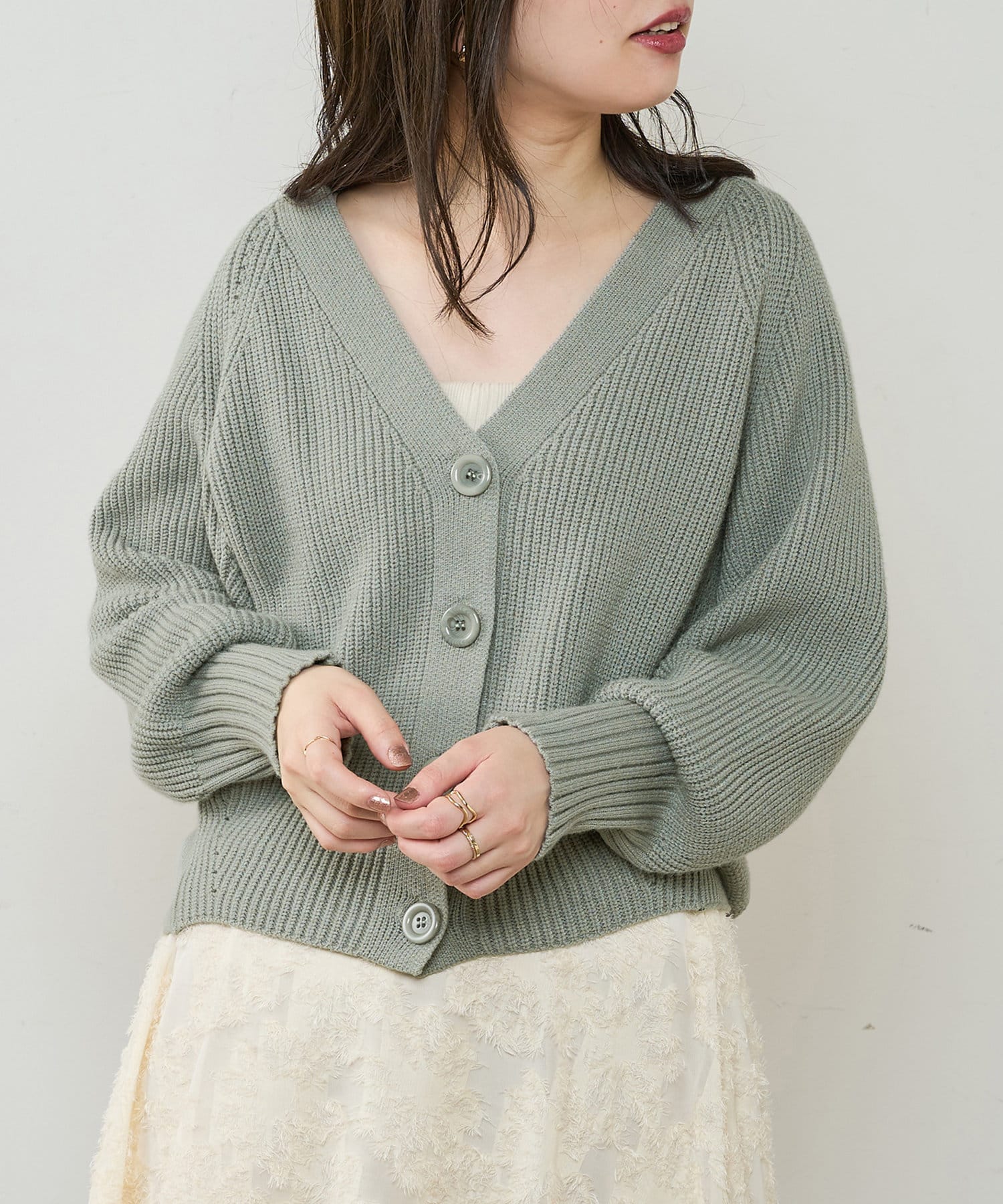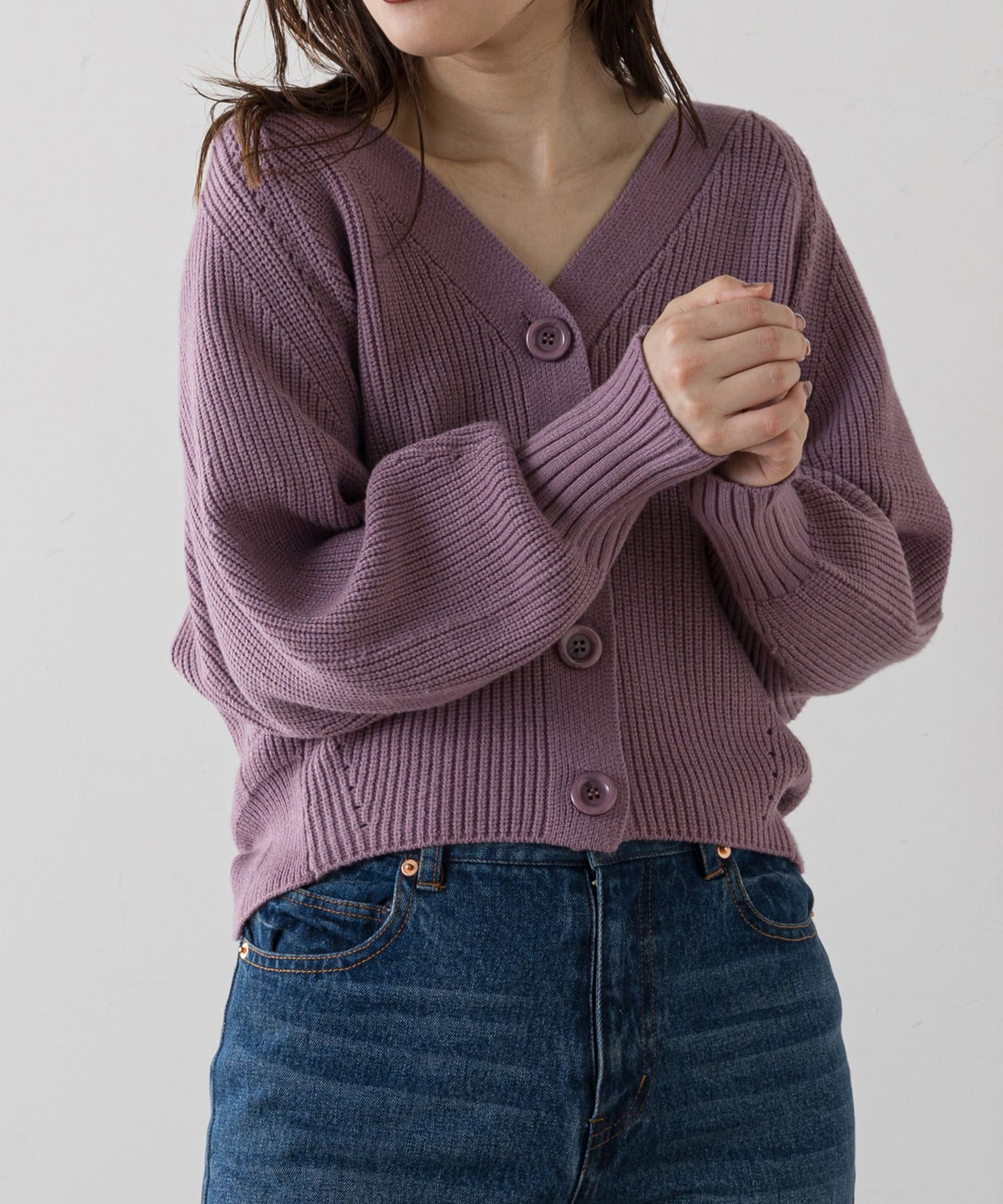 分厚すぎず、薄過ぎず。長め丈のカーディガン好みですが、これくらい少し短め丈もスッキリ着れて可愛いなと思いました。カーディガン合わせはもちろん、ハイウエストのボトムとも相性良くて、たくさん着まわせそうです。